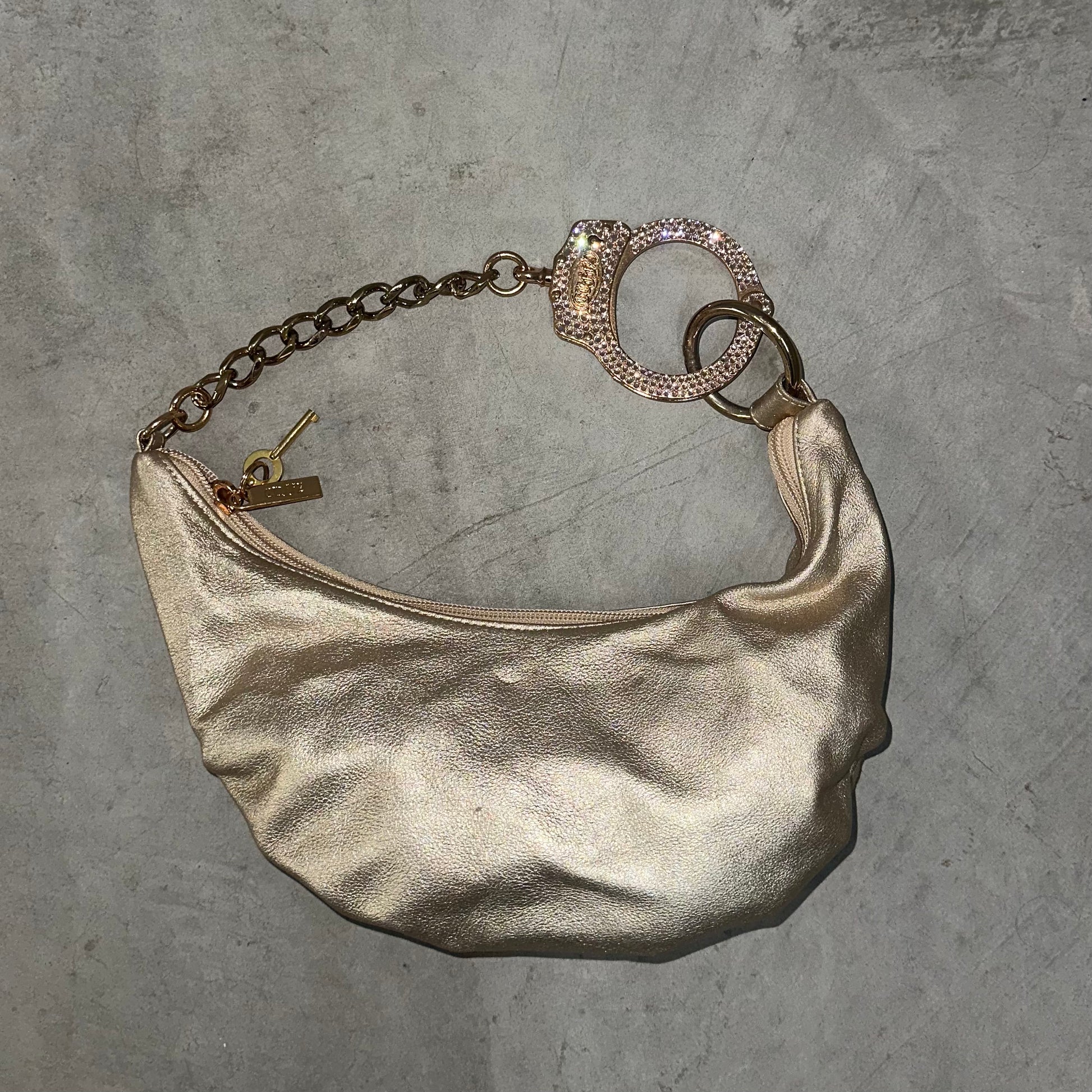 Cuffz Gold Barfly Bag with Gold Hardware and Pink Swarovski