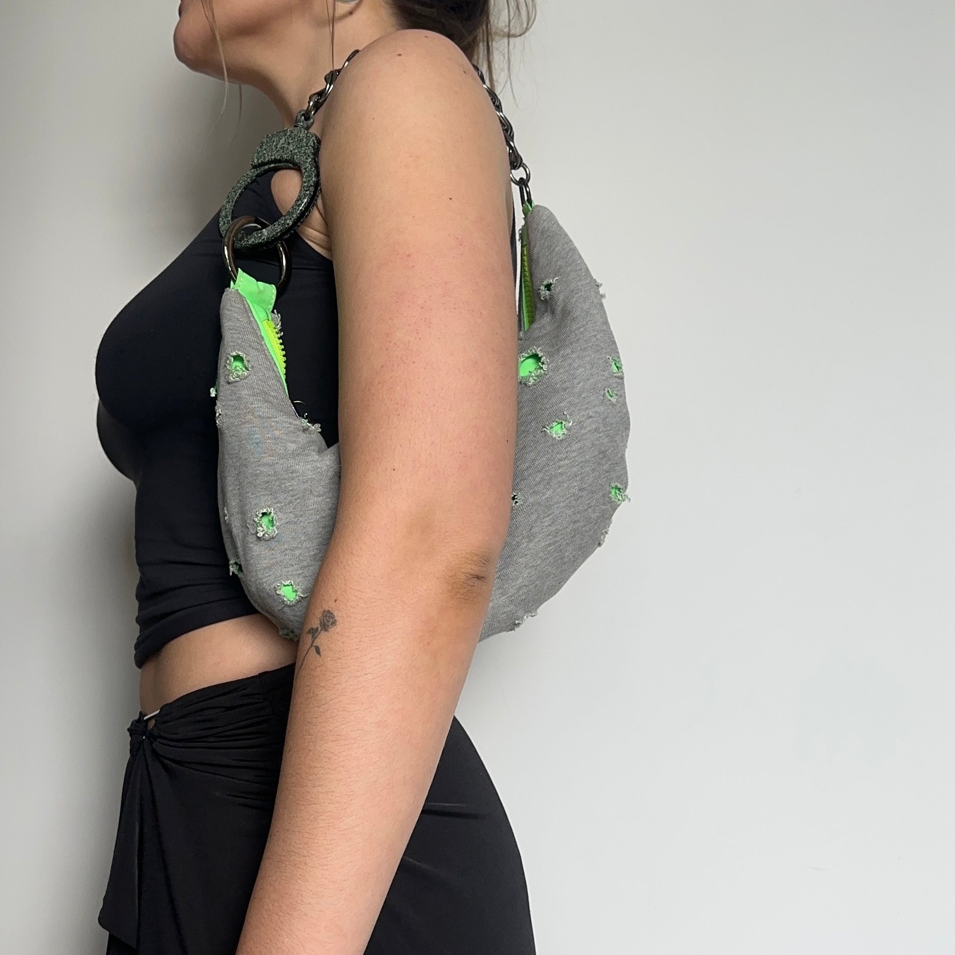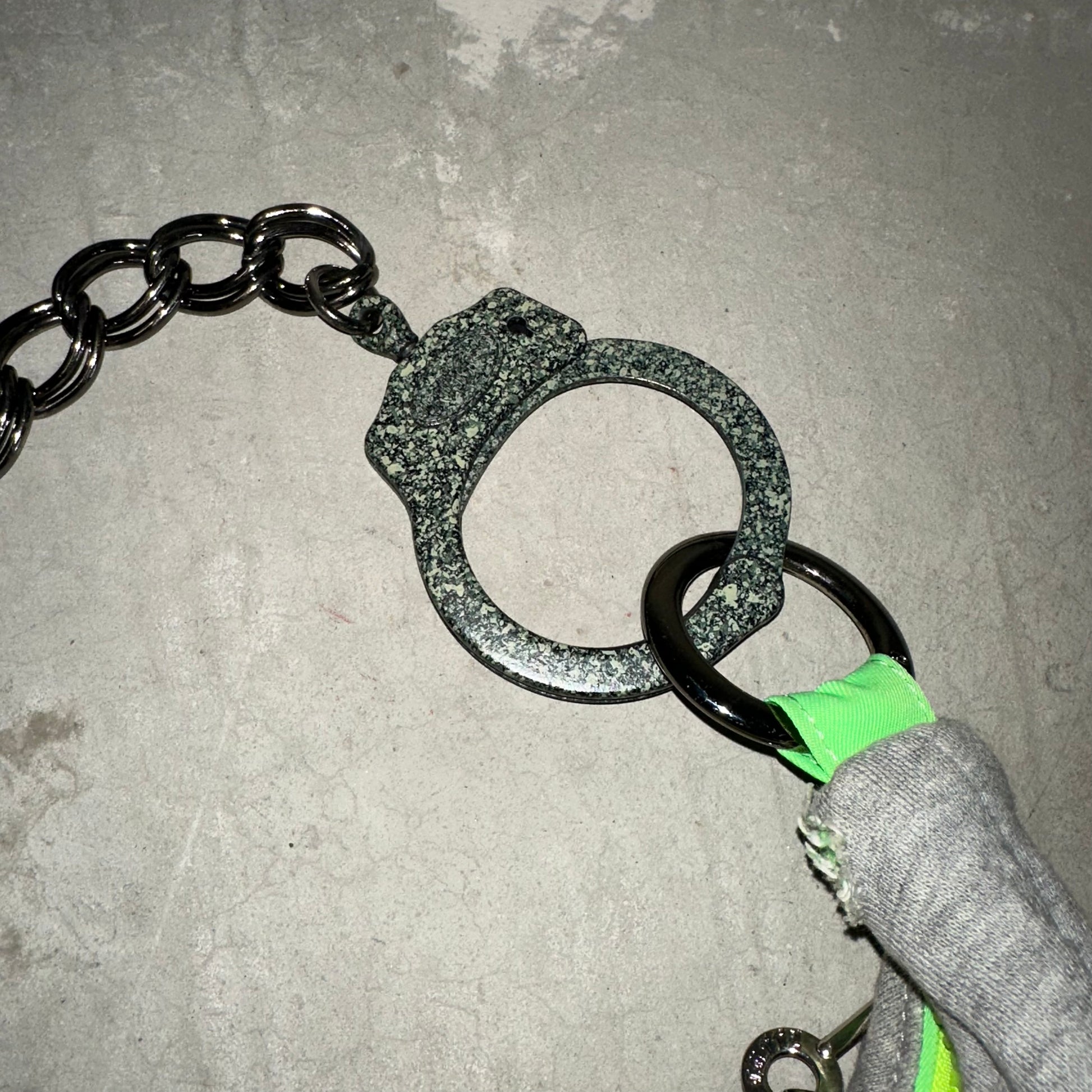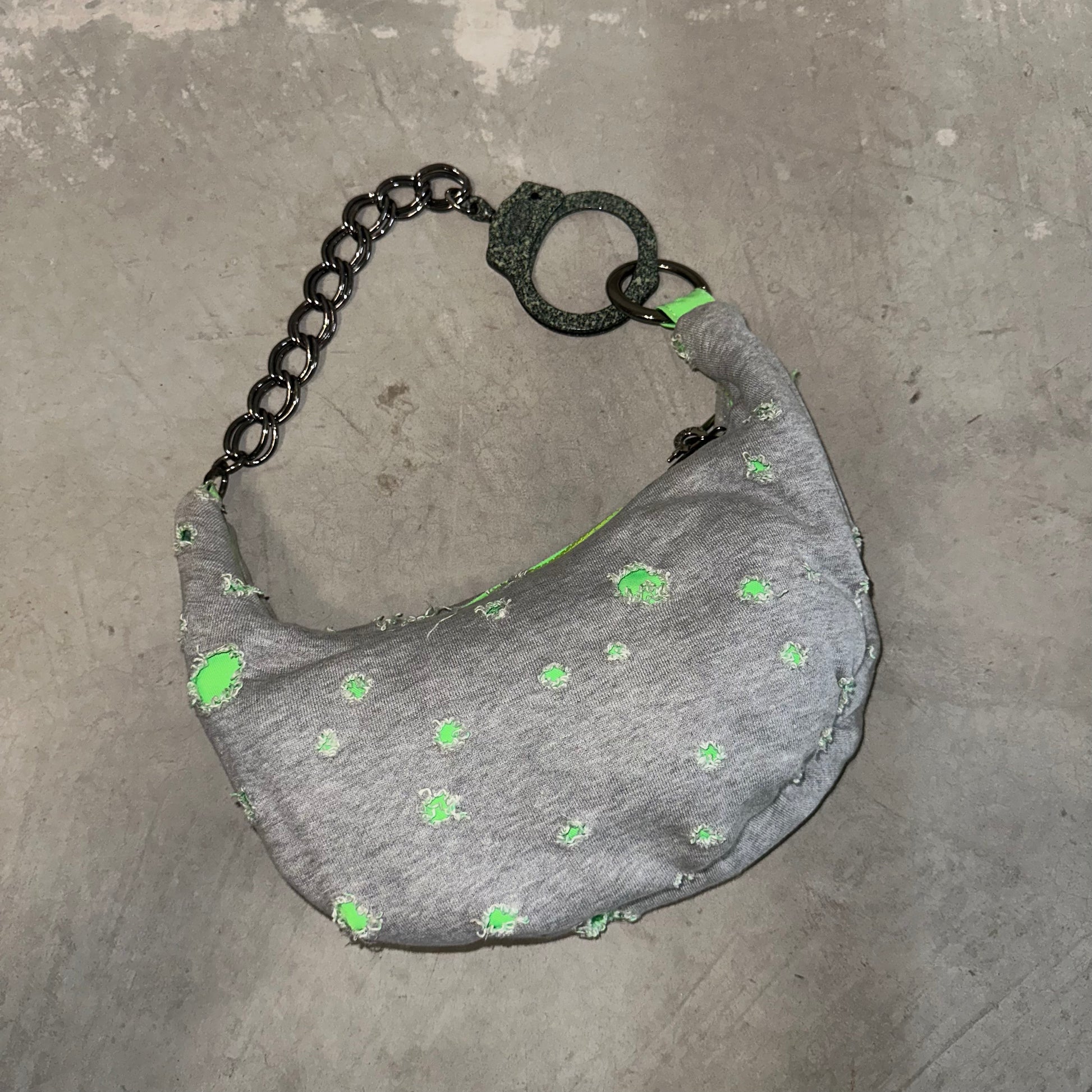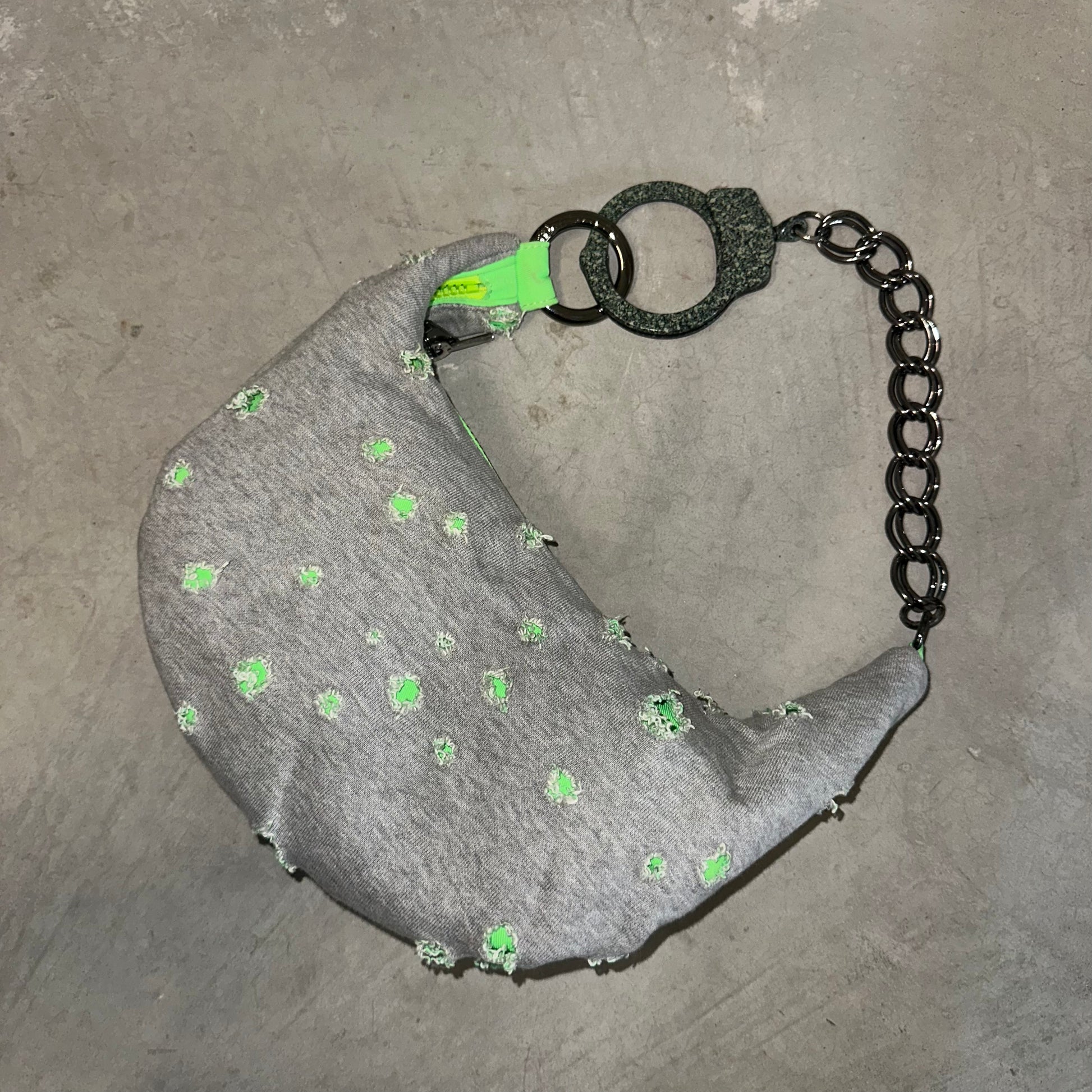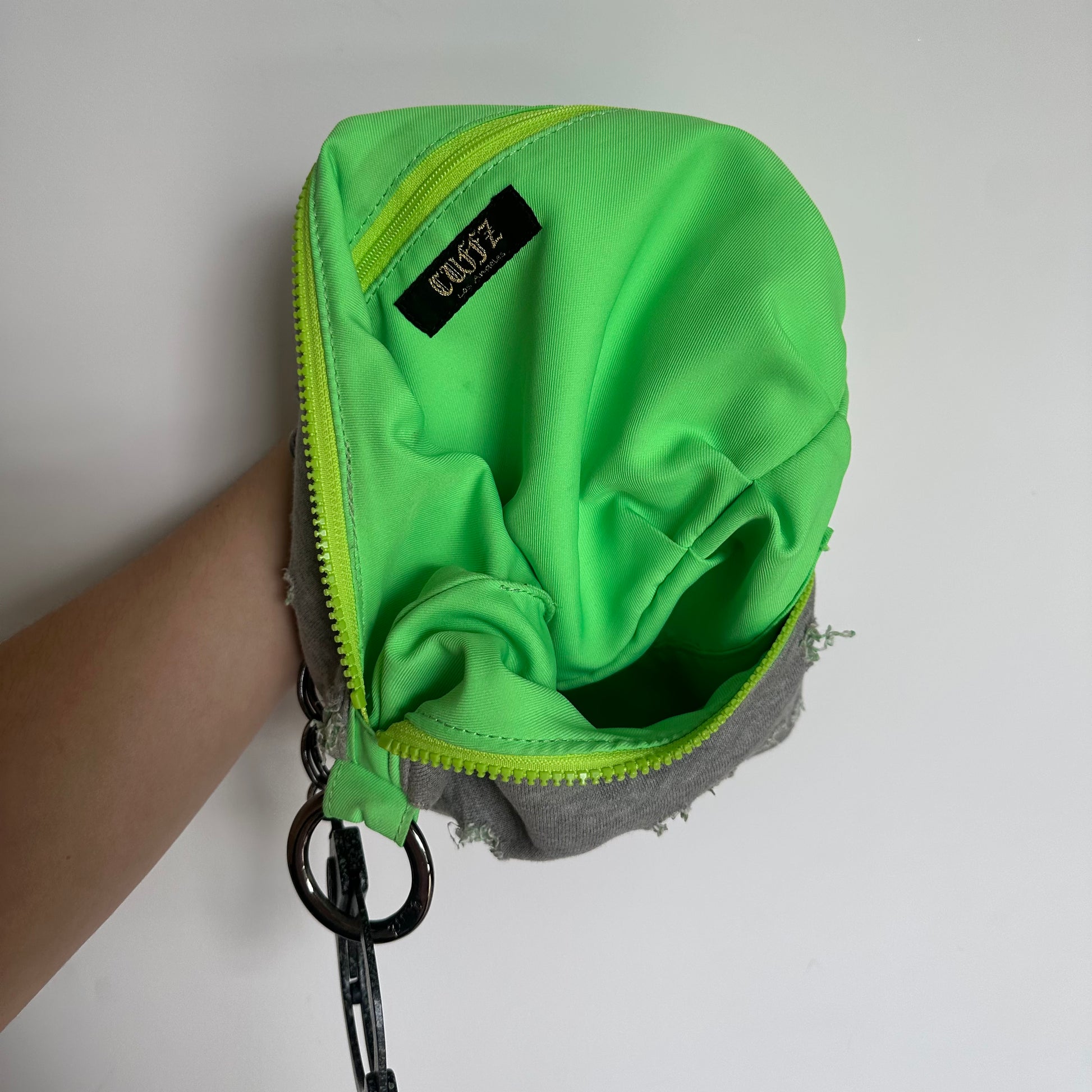 The coolest grey cotton Cuffz by Linz bag with 'holes' revealing a neon green under layer! One of the most interesting handcuff colours I've seen on these bags.