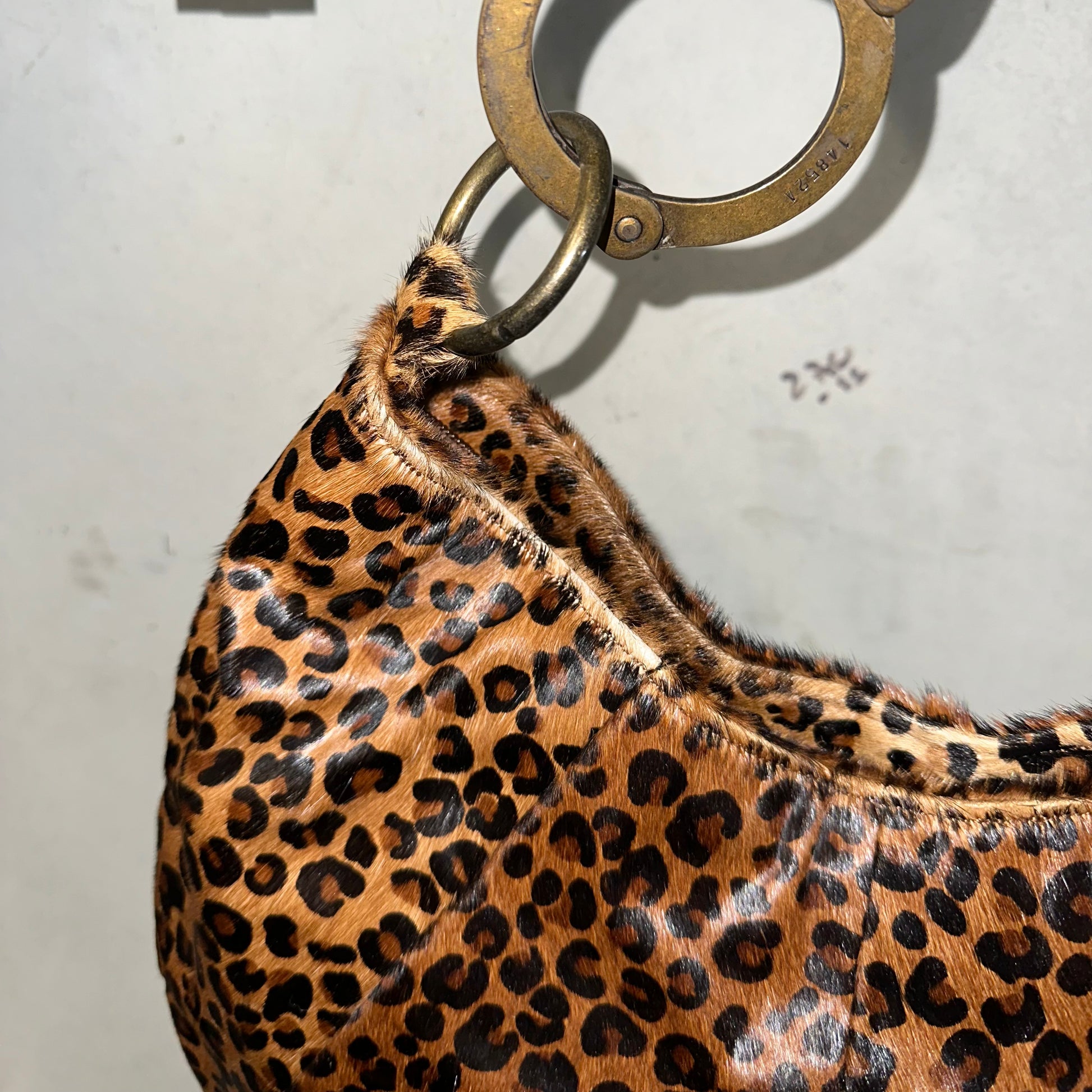 Cuffz Rare Leopard Print Pony Hair Double Cuff Bag