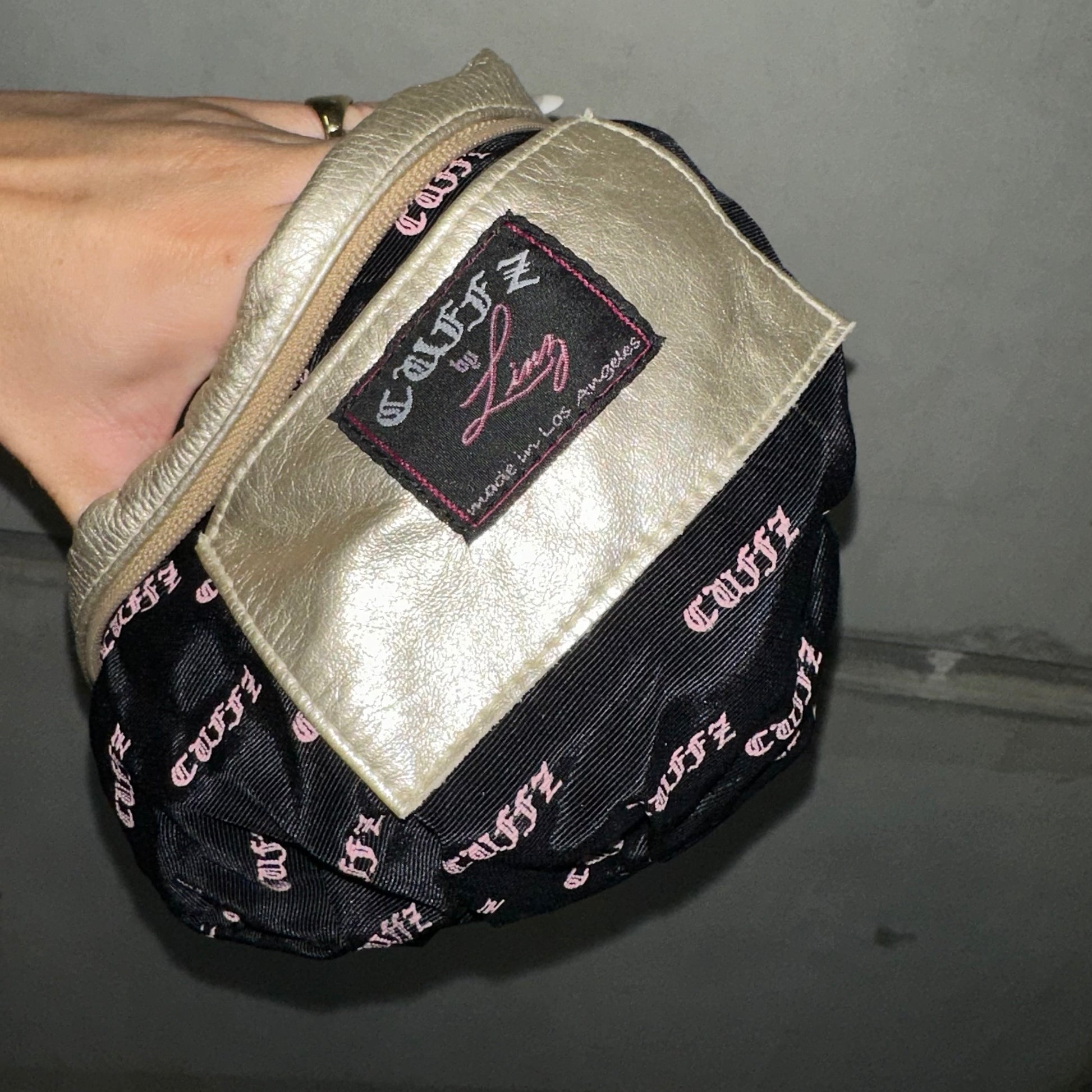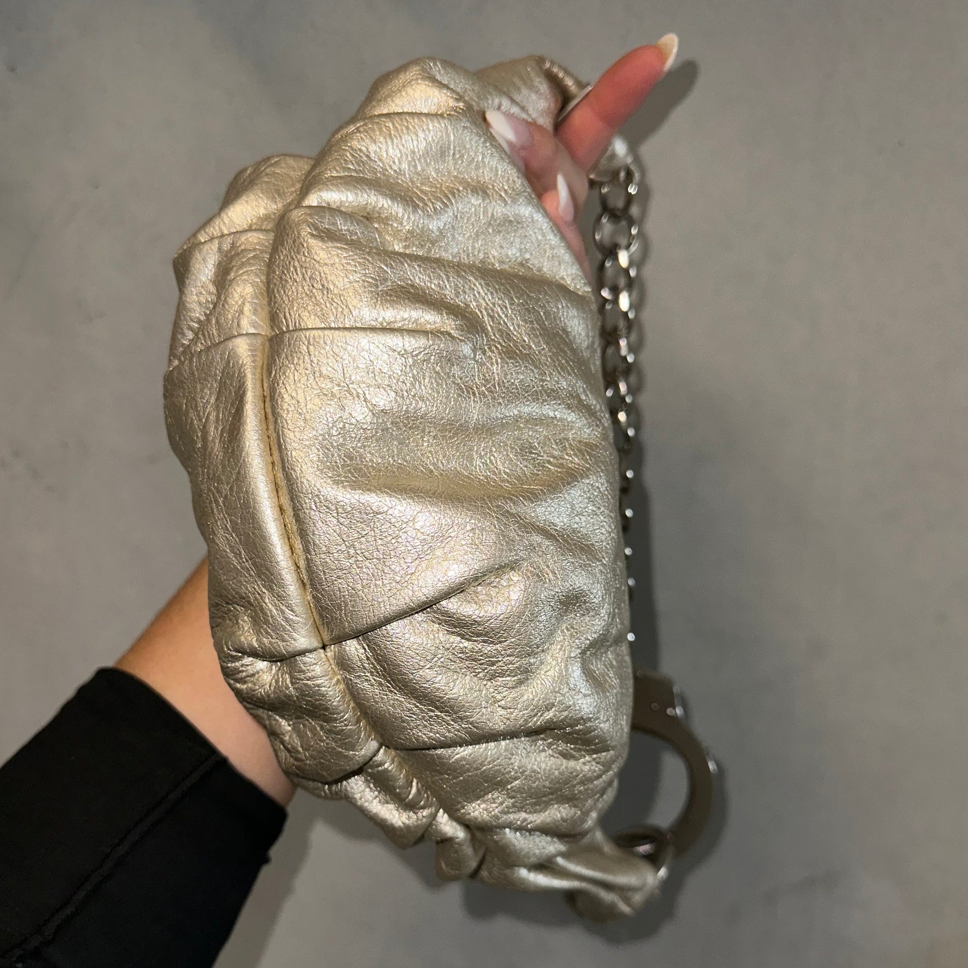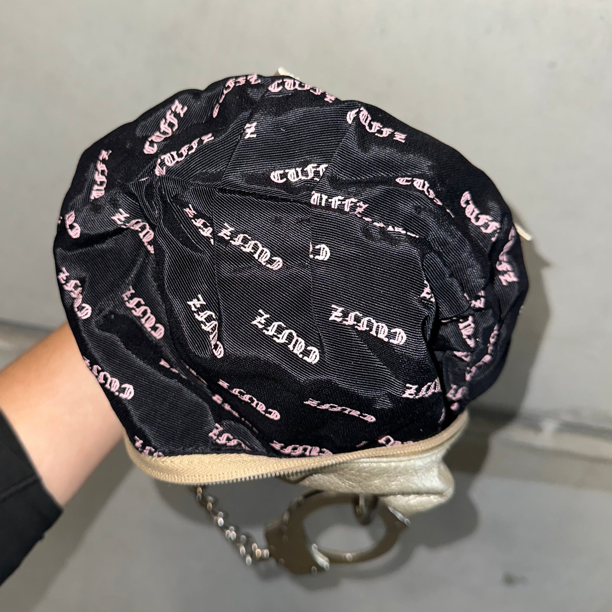 Amazing pale gold mini Cuffz bag with a Swarovski embellished handcuff detail.