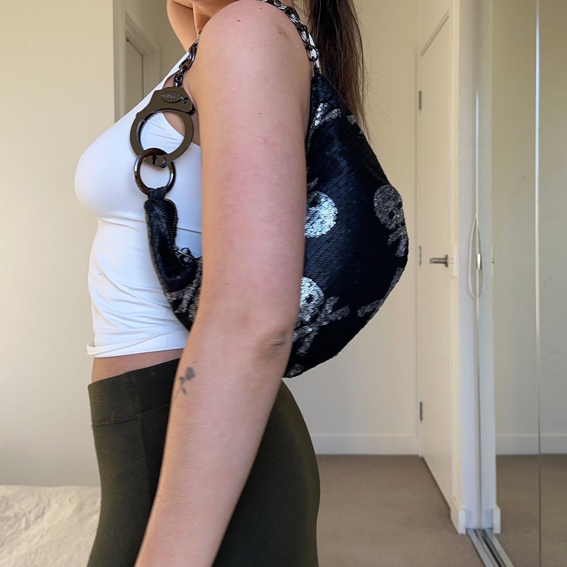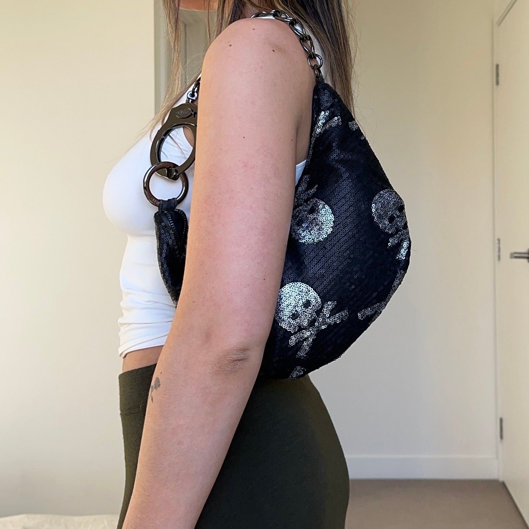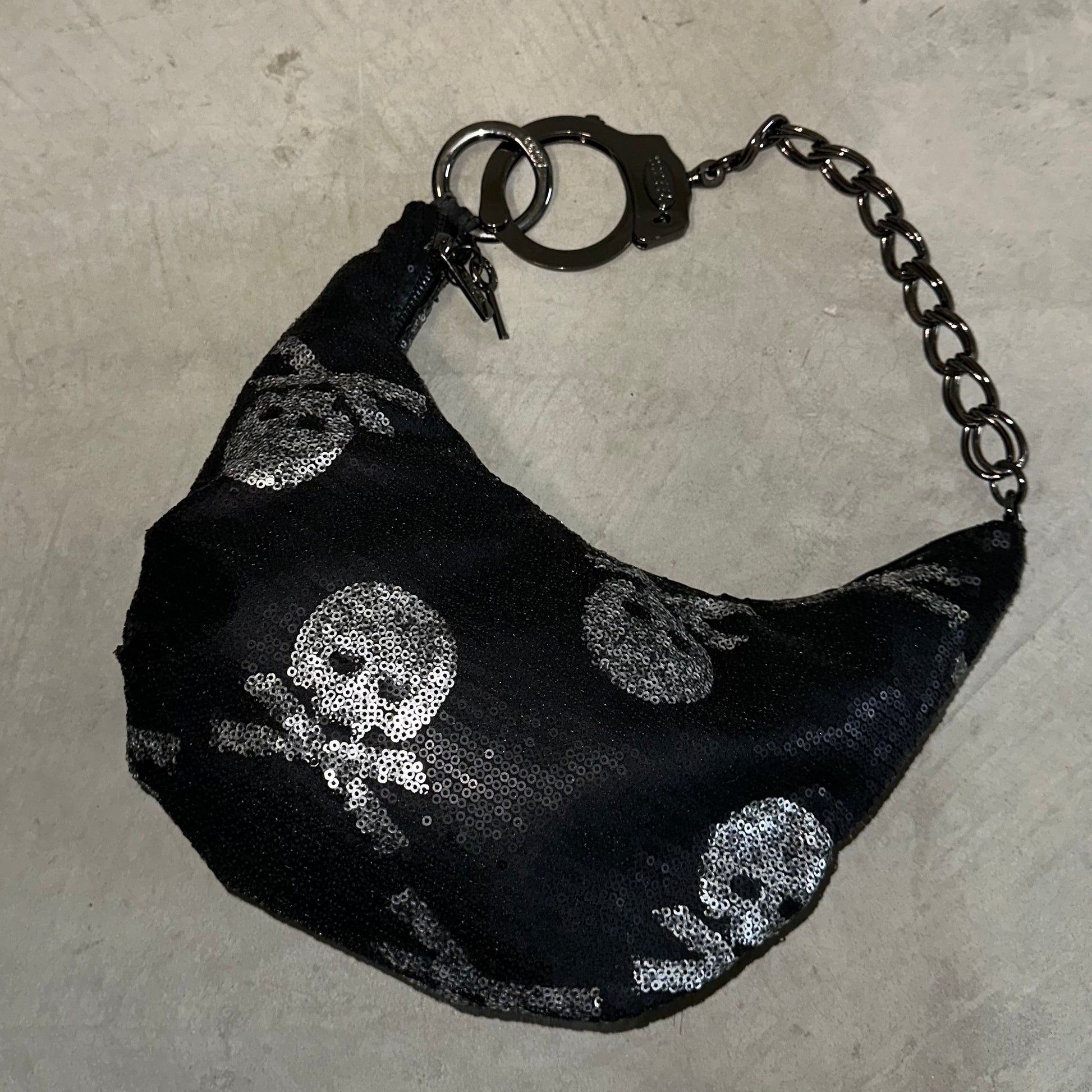 Another rare Cuffz bag covered in sequins with a skull print.