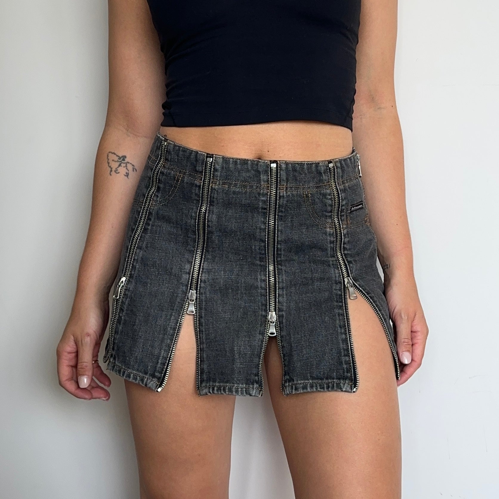 Incredible rare multi zip detail skirt by D&G from 2004. Weighty and expensive feeling. Such a beautiful piece. Can be worn a multitude of ways!