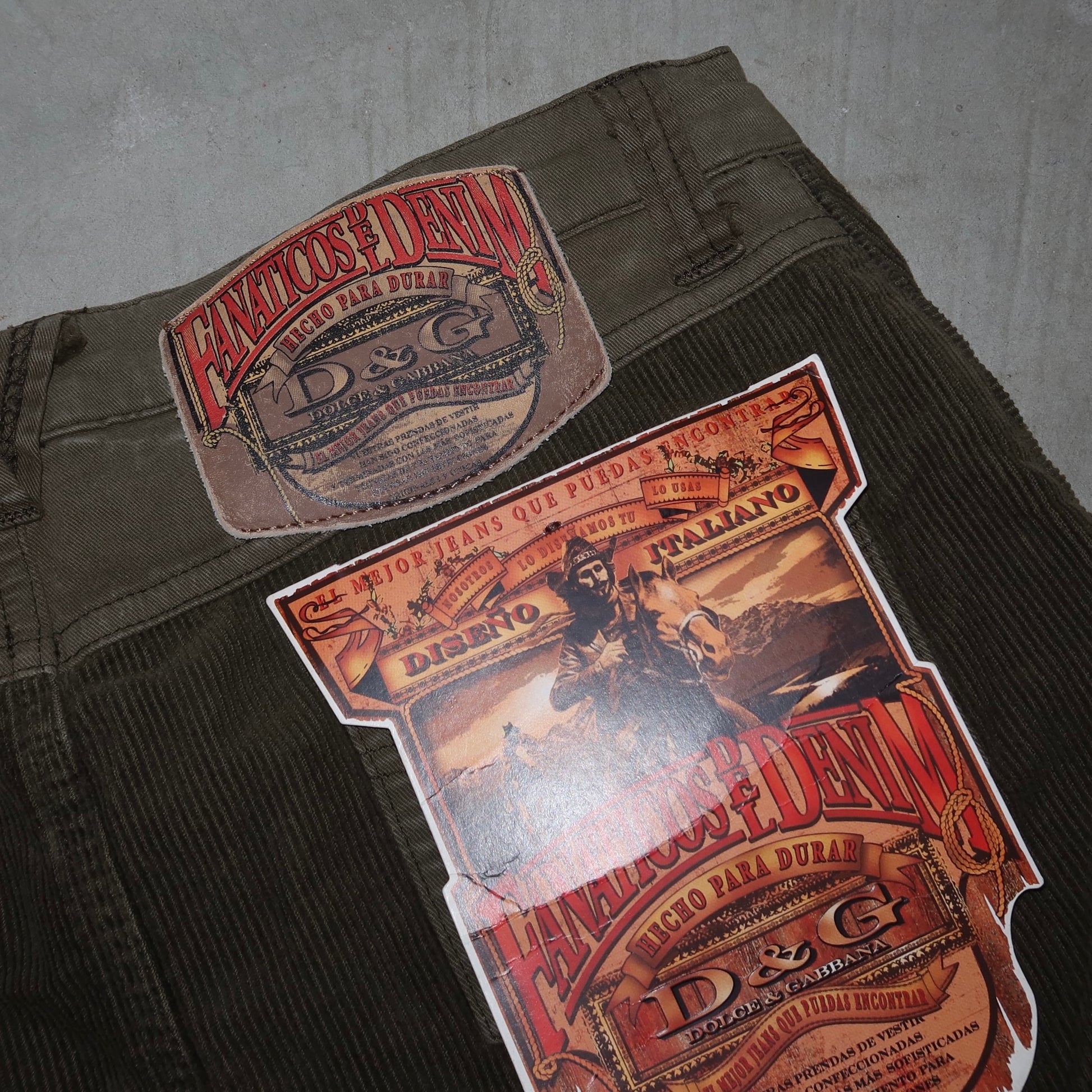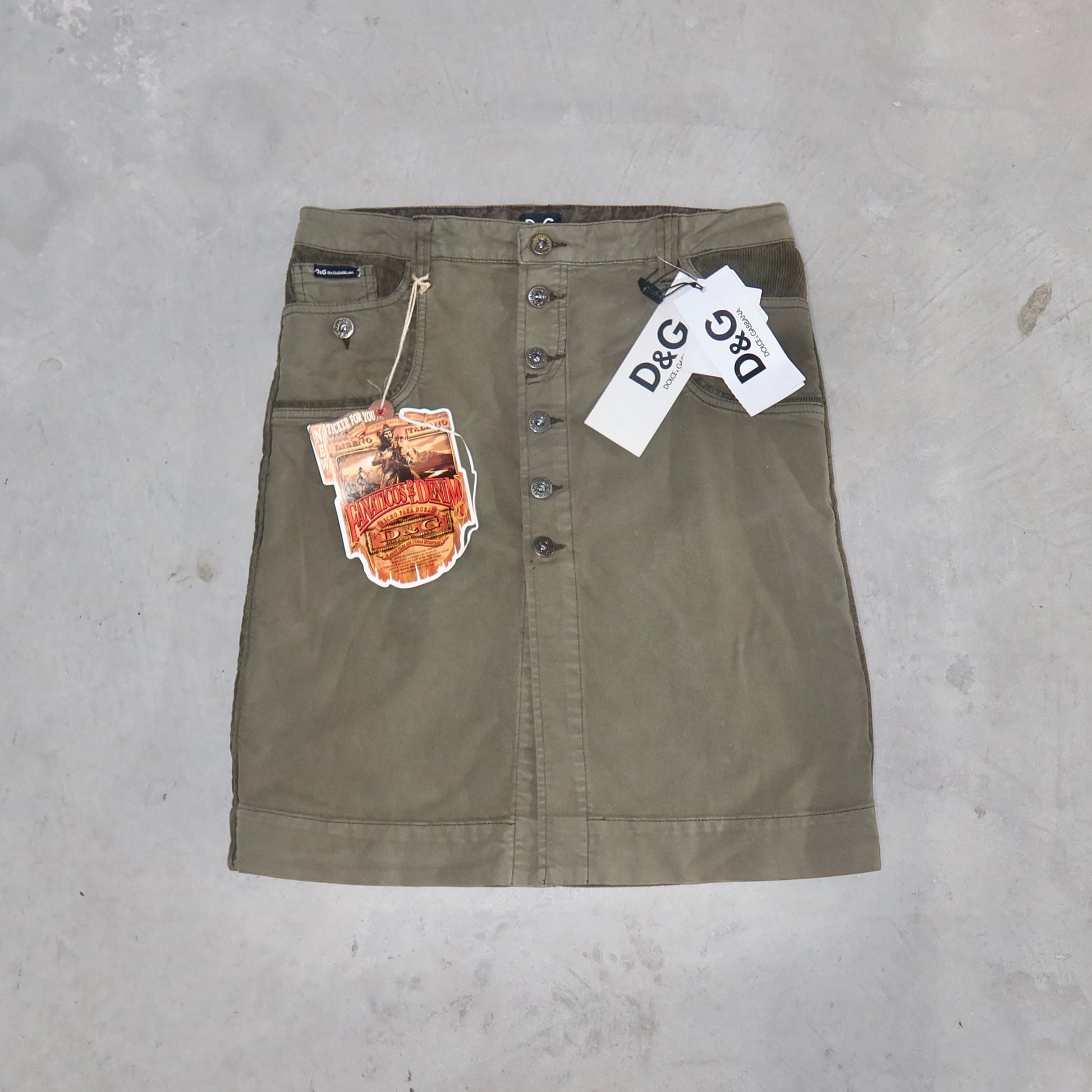 Amazing D&G khaki skirt with button up front and corduroy back! Incredible back patch.