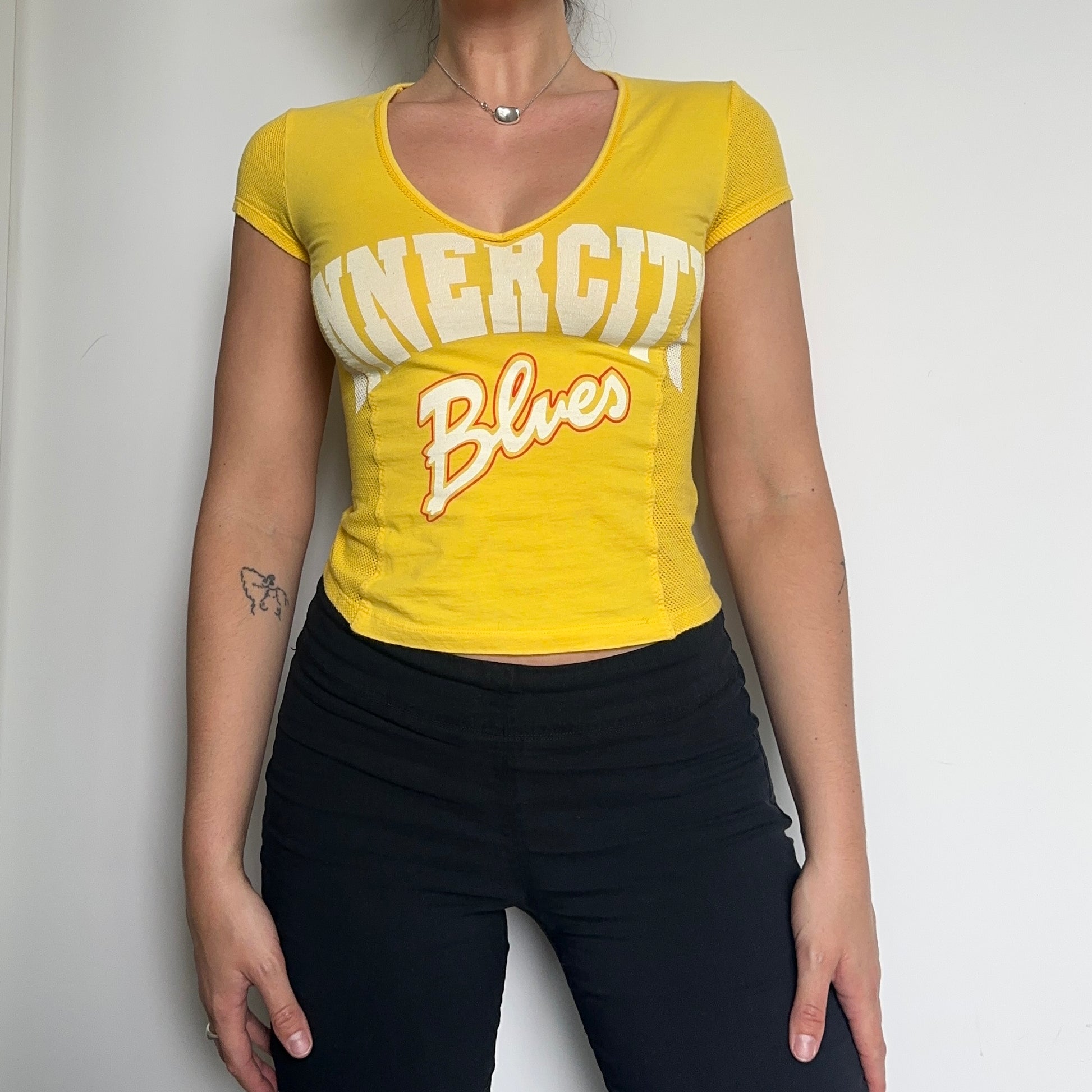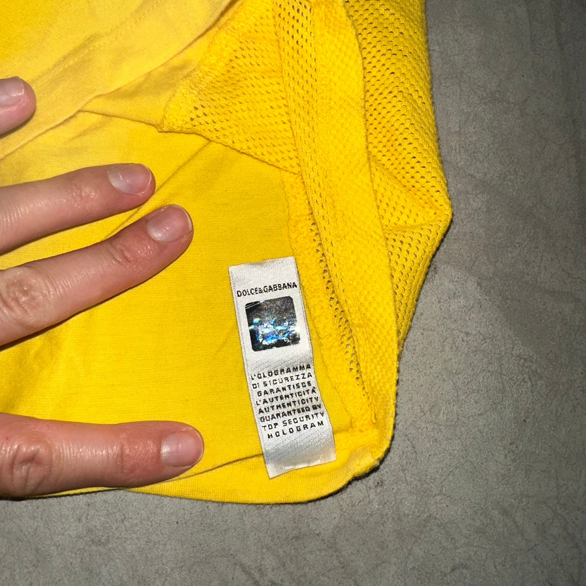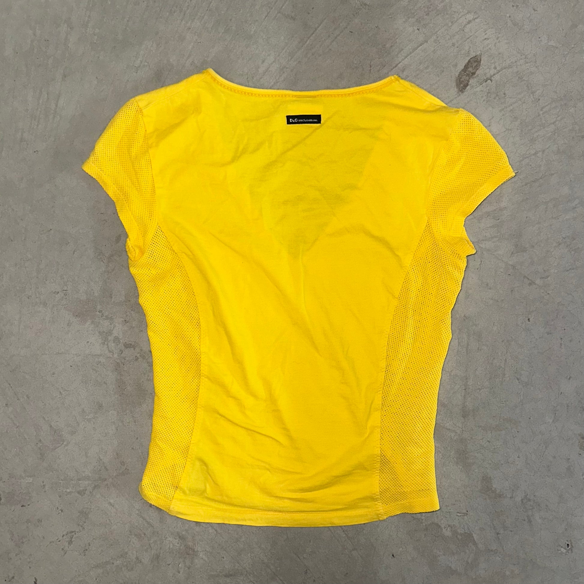 Cute yellow v-neck by D&G. Fishnet panels at the sides. Slight stretch.
