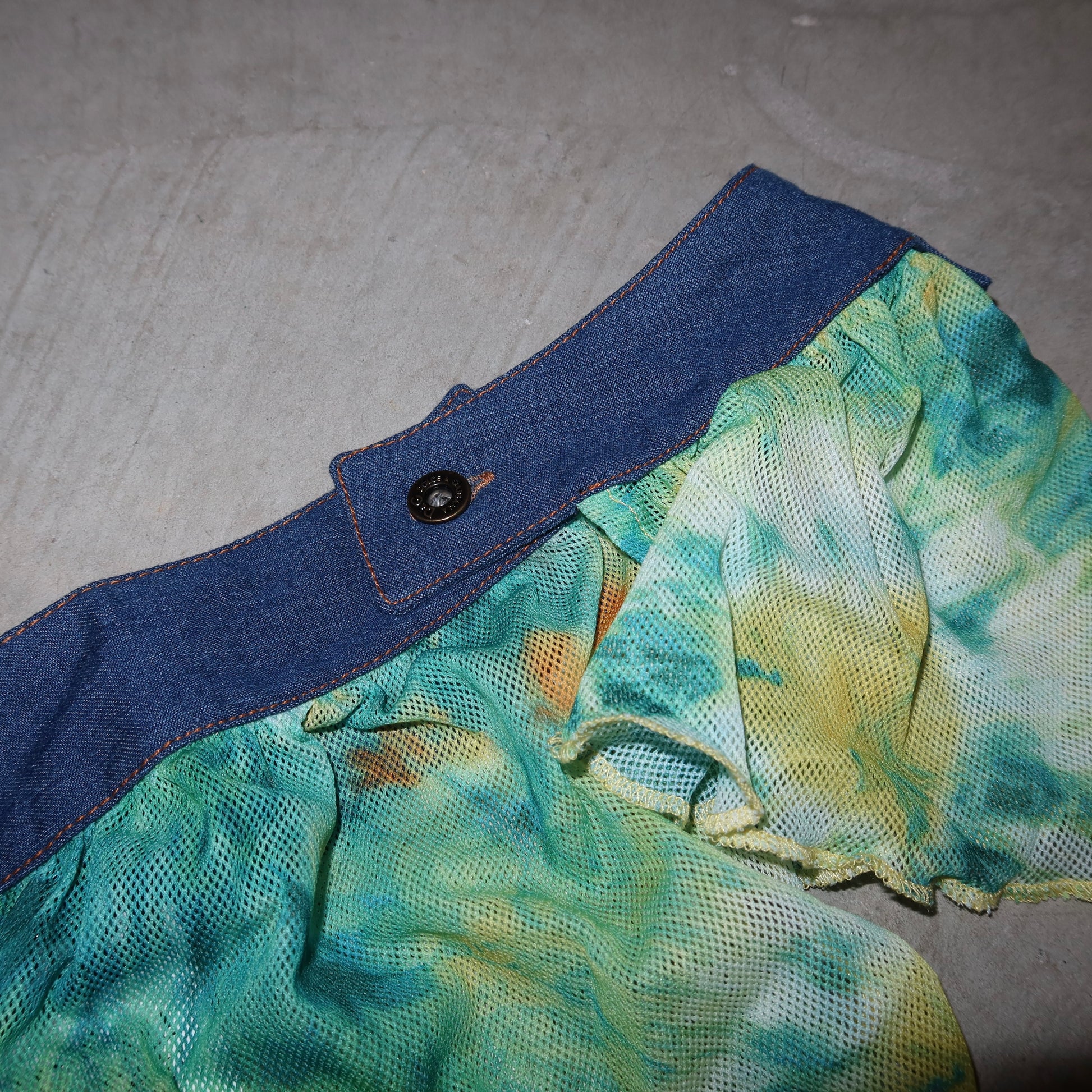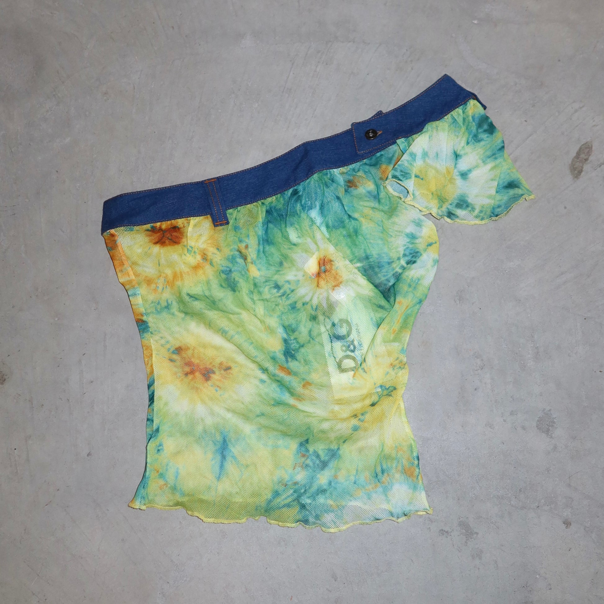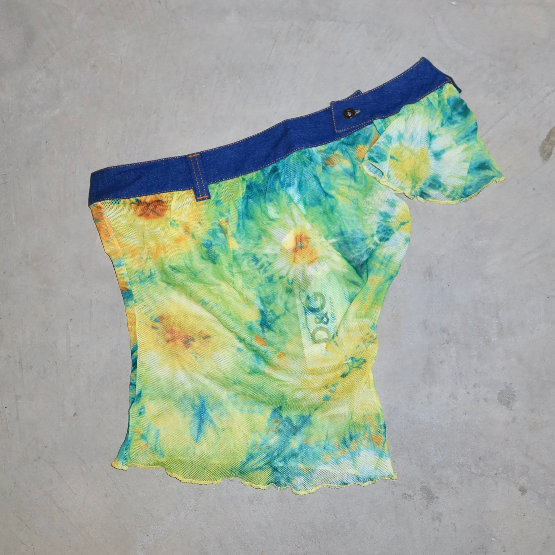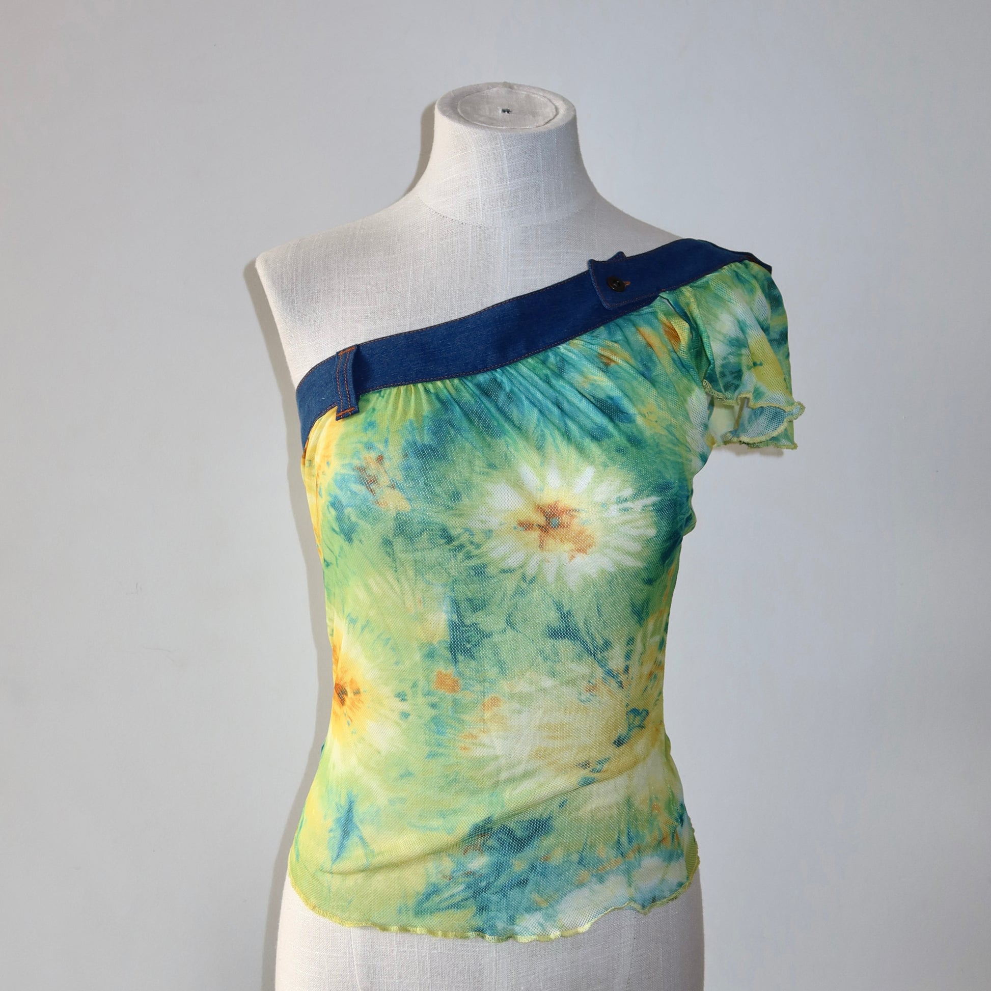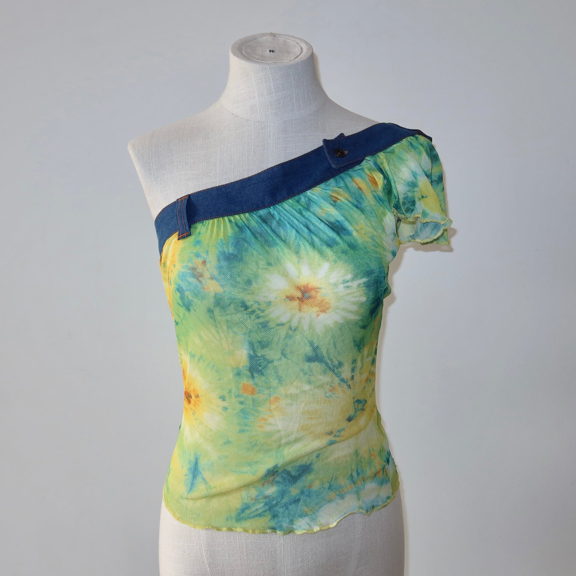 Gorgeous rare D&G floral mesh top with denim jean style detail. One shoulder. Super flattering and slightly sheer!