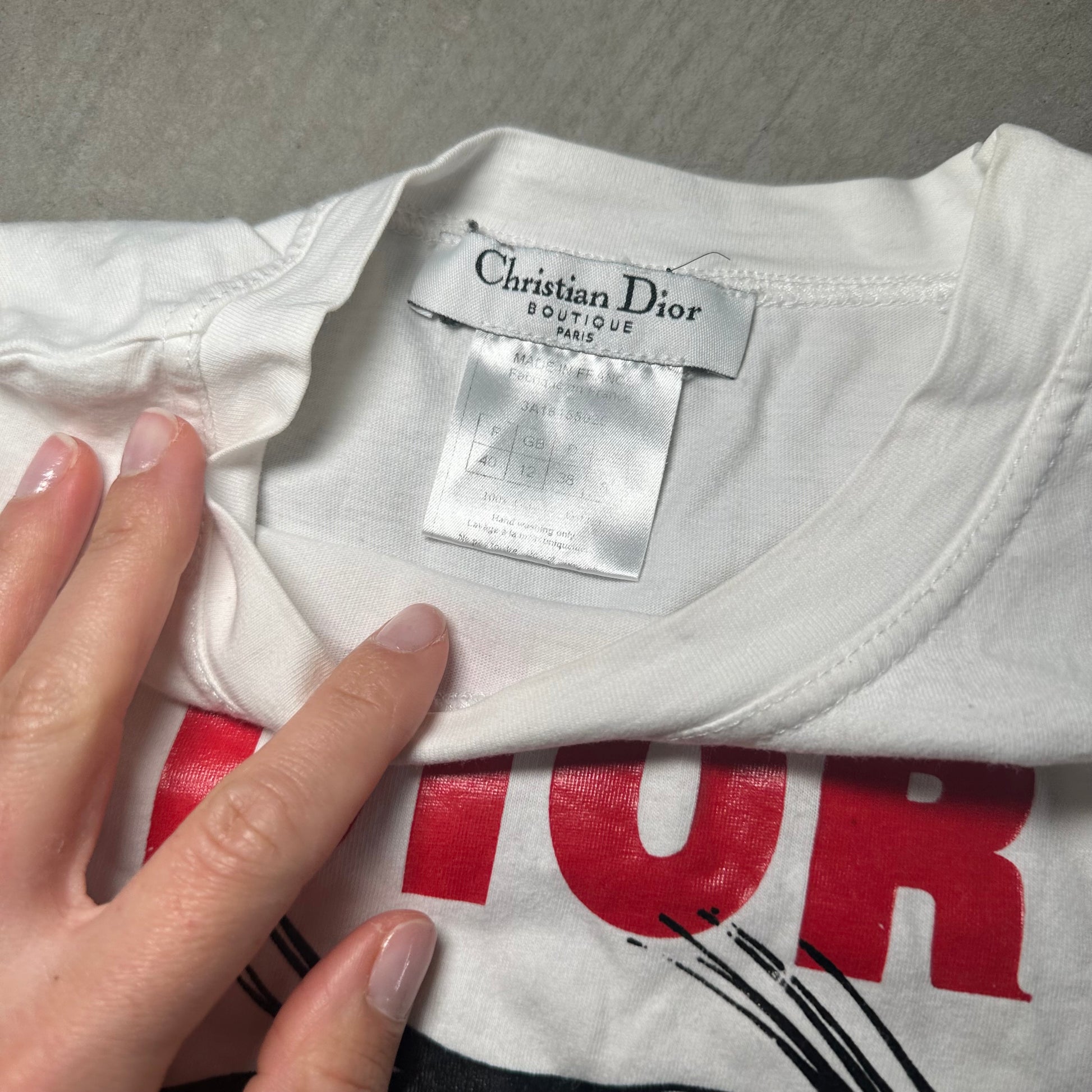 Marked size UK12/AU12/US8 but Dior tees are notorious for running small and this fits like an AU8/US4.