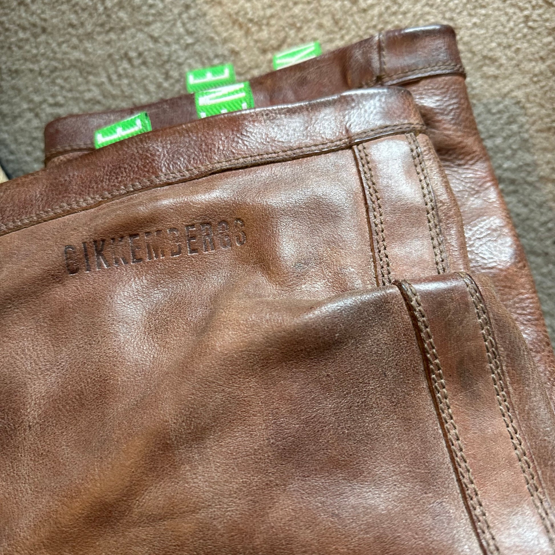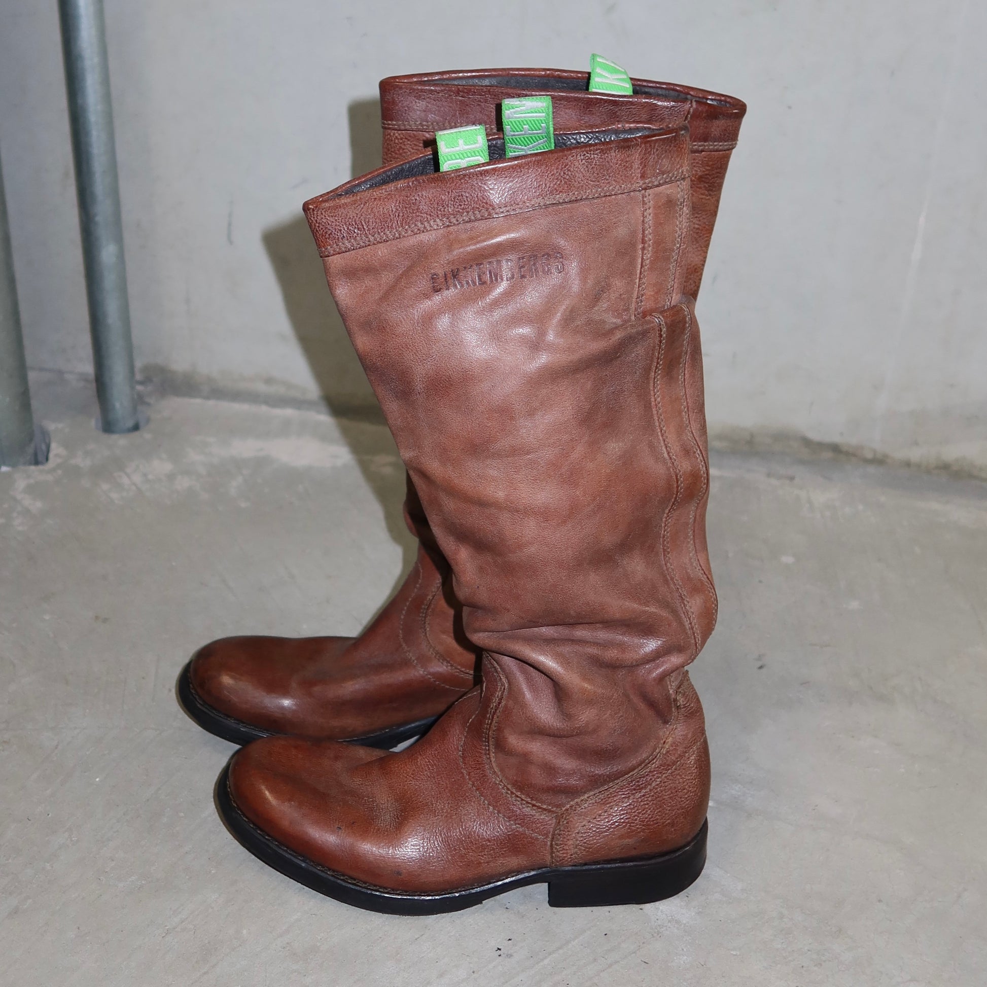 Gorgeous rare brown leather boots by Dirk Bikkembergs. A lesser seen model with BIKKEMBERGS embossing on the side and contrasting green tabs.