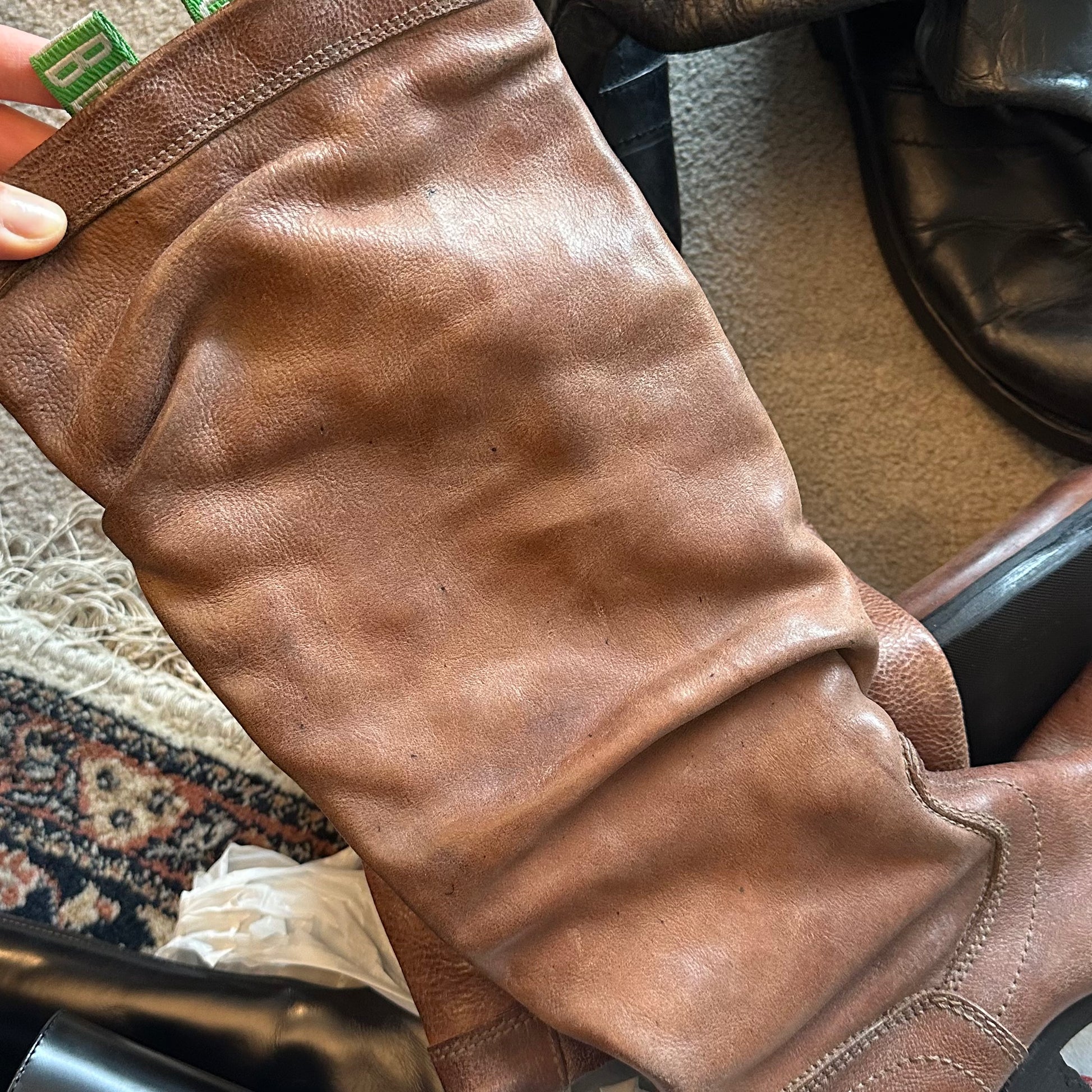 Good vintage condition. These boots have been built for LIFE. They have been well loved and feature marks and scuffs, as pictured, but that gives them so much character which I love! Note the black spots on inside of left boot (final pic), and the varying textures on the leather of each boot. Nothing that affects the wear of the boots. I have had the heel tips replaced, soles reinforced, and the leather conditioned, ready for their new owner.