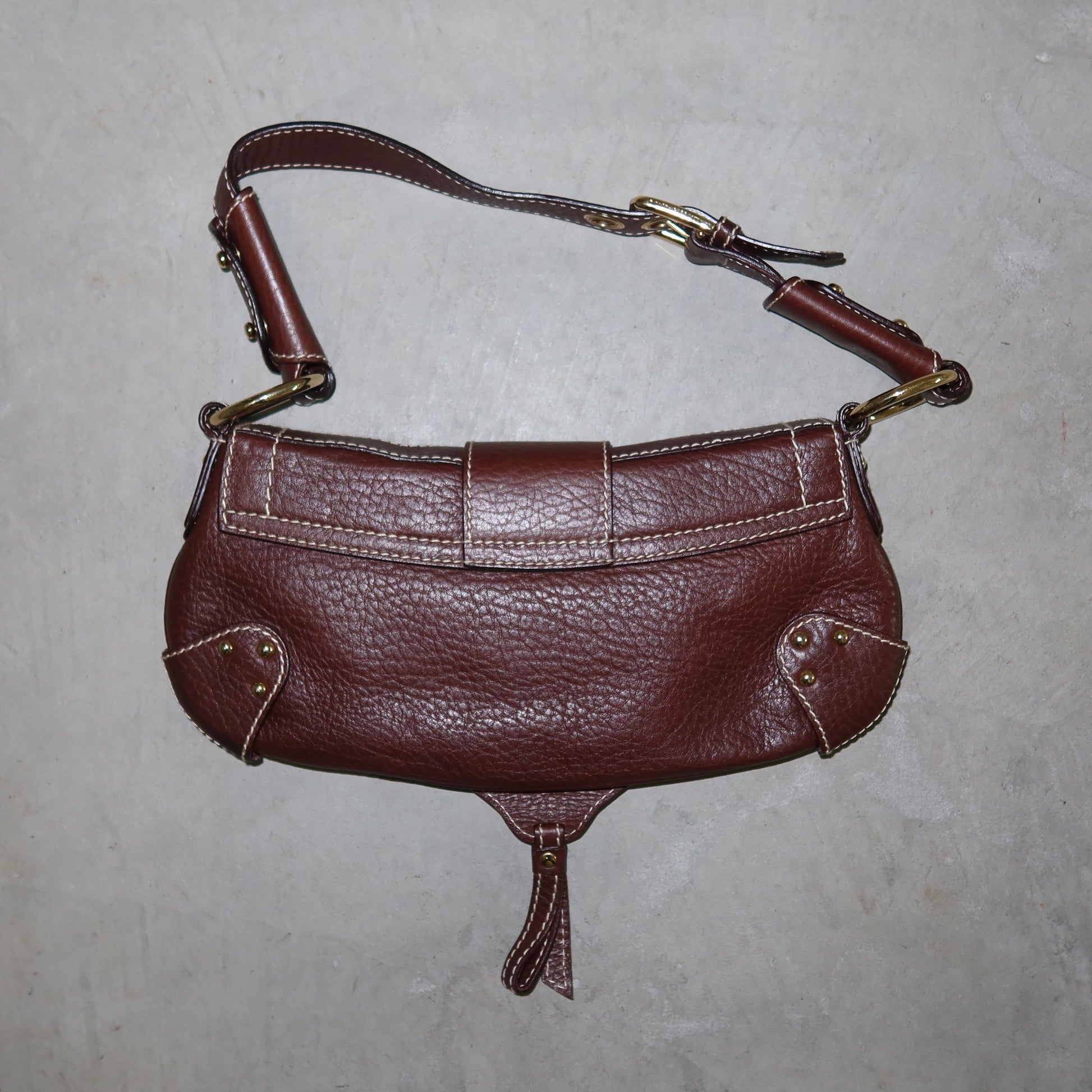 Beautiful brown leather Dolce & Gabbana classic flap front shoulder bag with gold hardware. Lots of variations of this bag were seen on Dolce & Gabbana's runways throughout the 2000's.