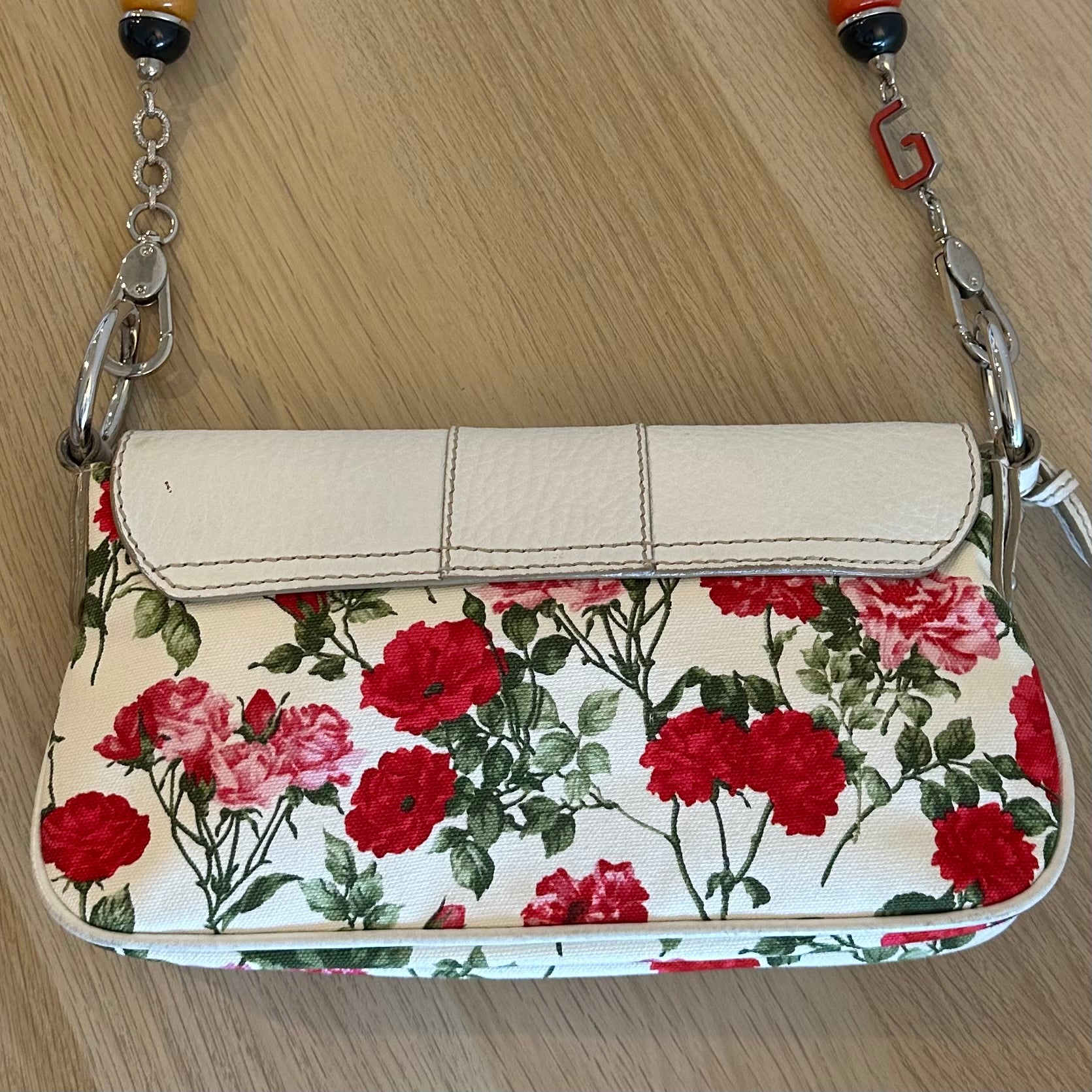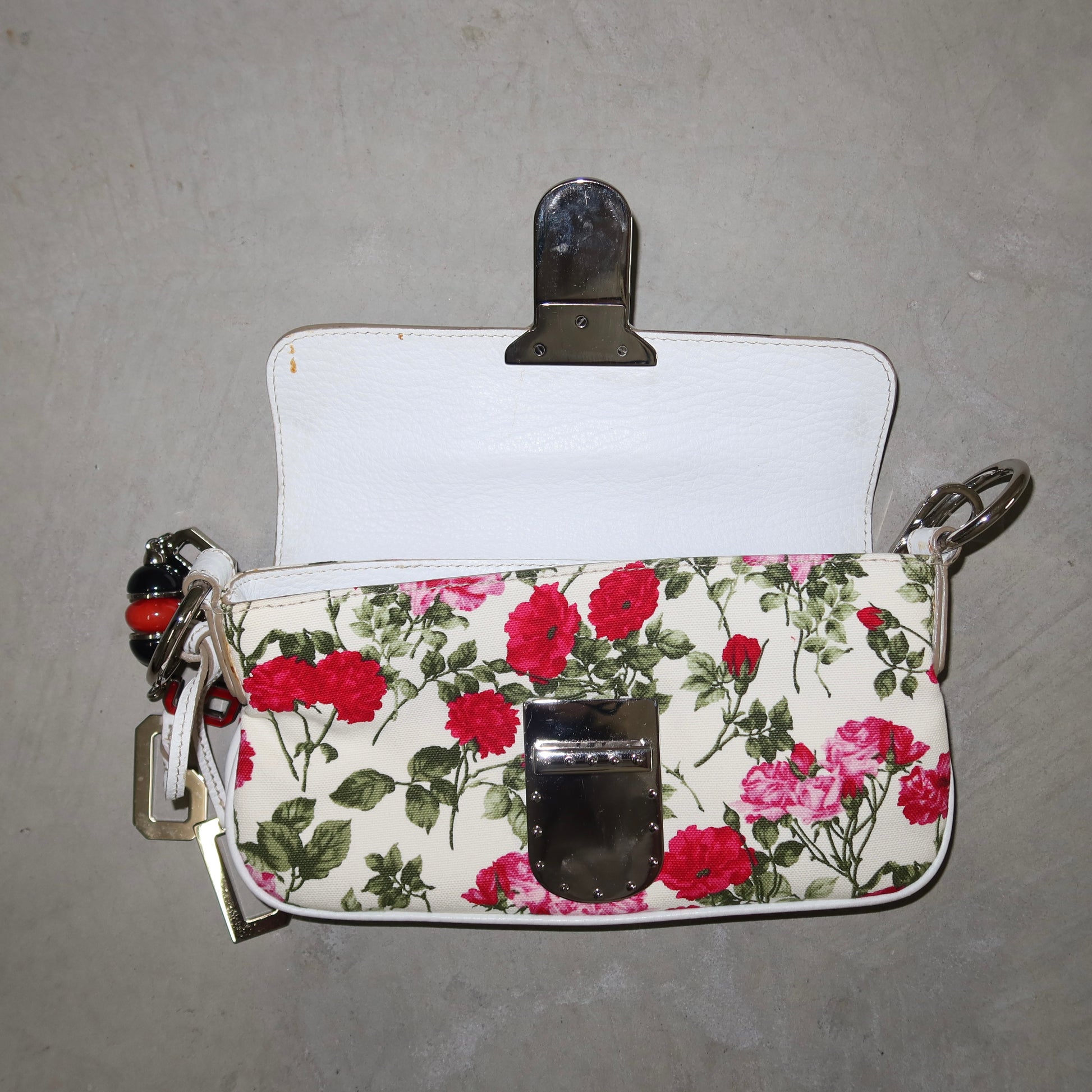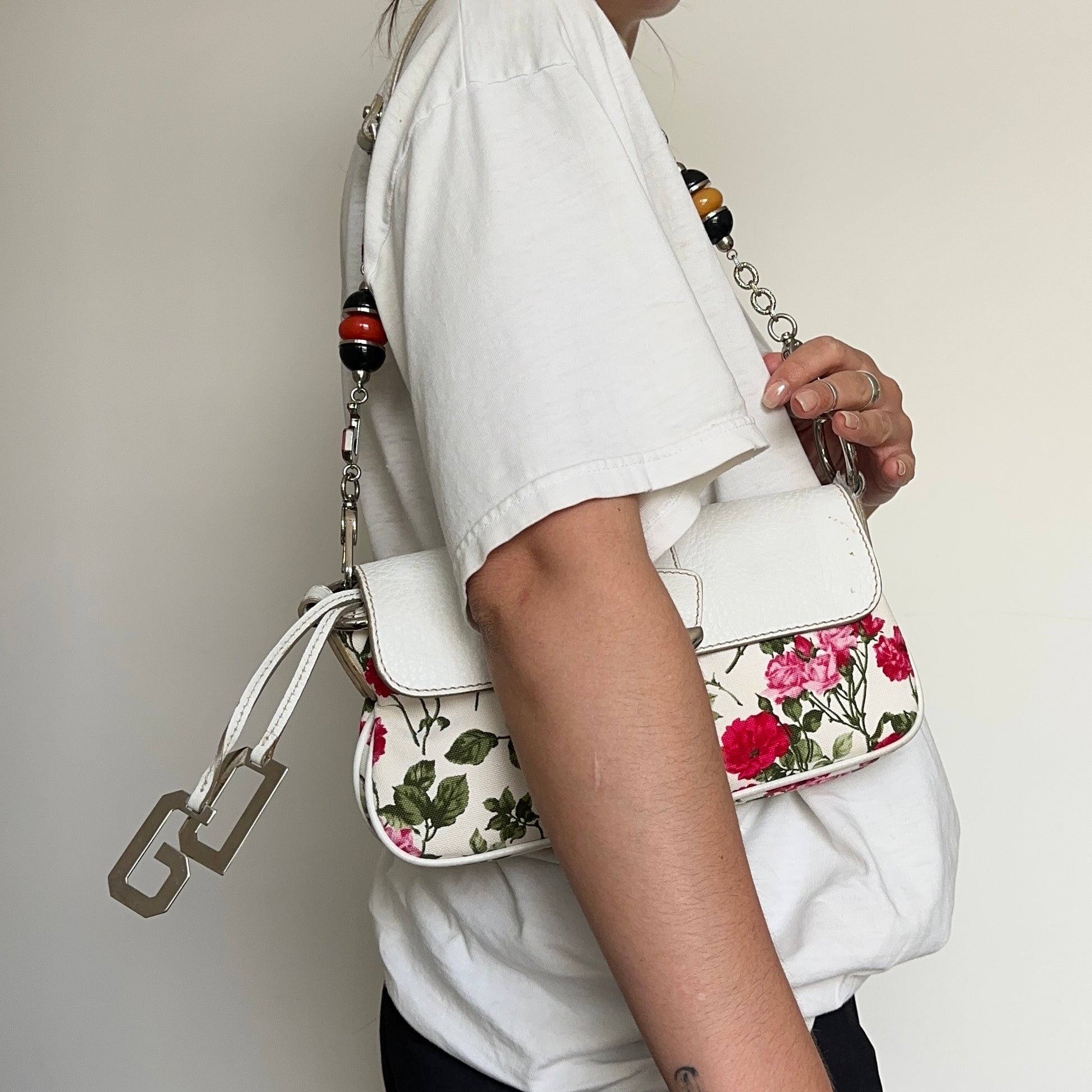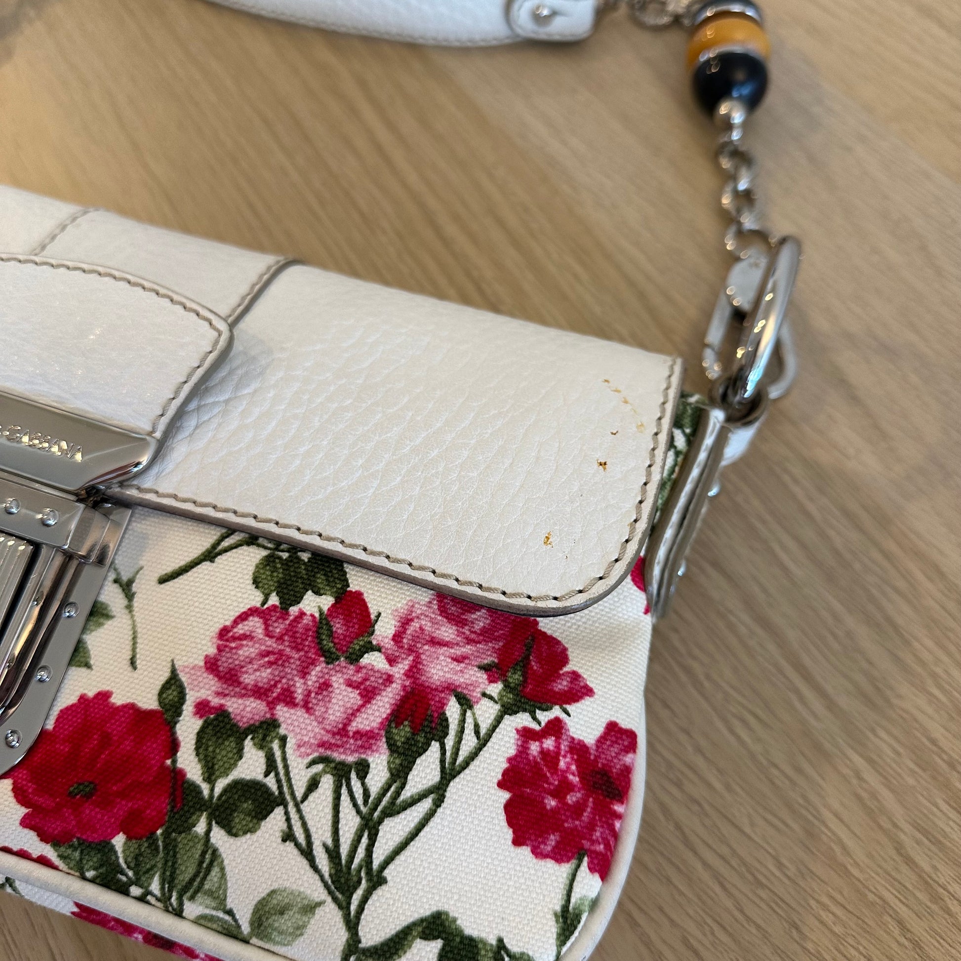 Beautiful with leather and canvas floral pattern Dolce & Gabbana flap front shoulder bag with incredible bead and chain handle details. 'D' and 'G' charms attached.