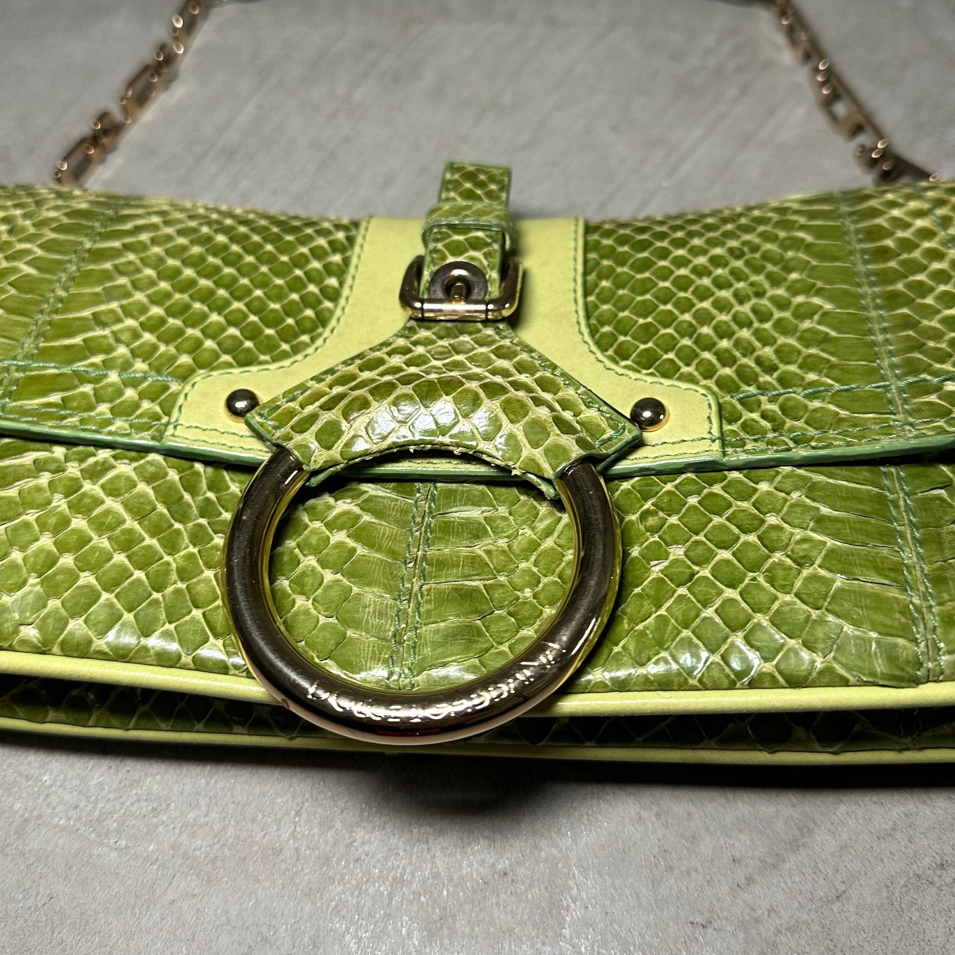 Gorgeous rare green python bag by Dolce & Gabbana, from their FW04 range. 'DG' chain strap. Suede lining.