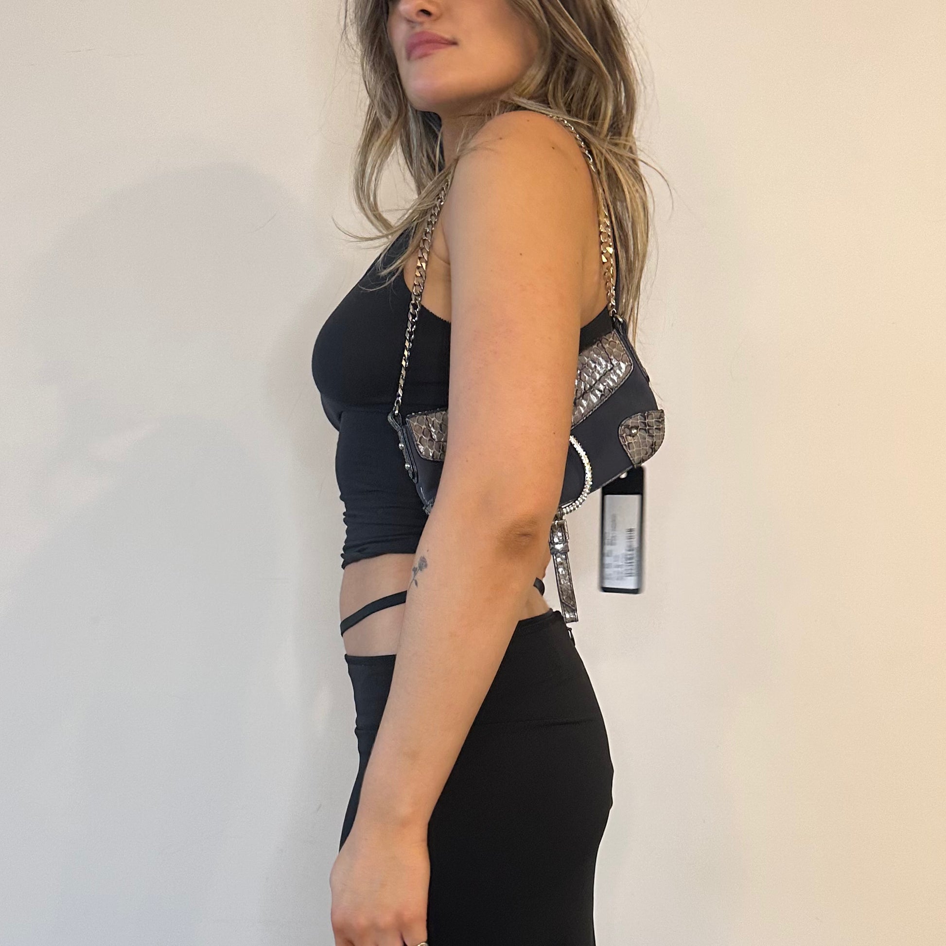 One of the most gorgeous Dolce & Gabbana bags I ever laid eyes on! Beautiful mini evening bag with snakeskin (effect, I think) details and a rhinestone studded hoop.