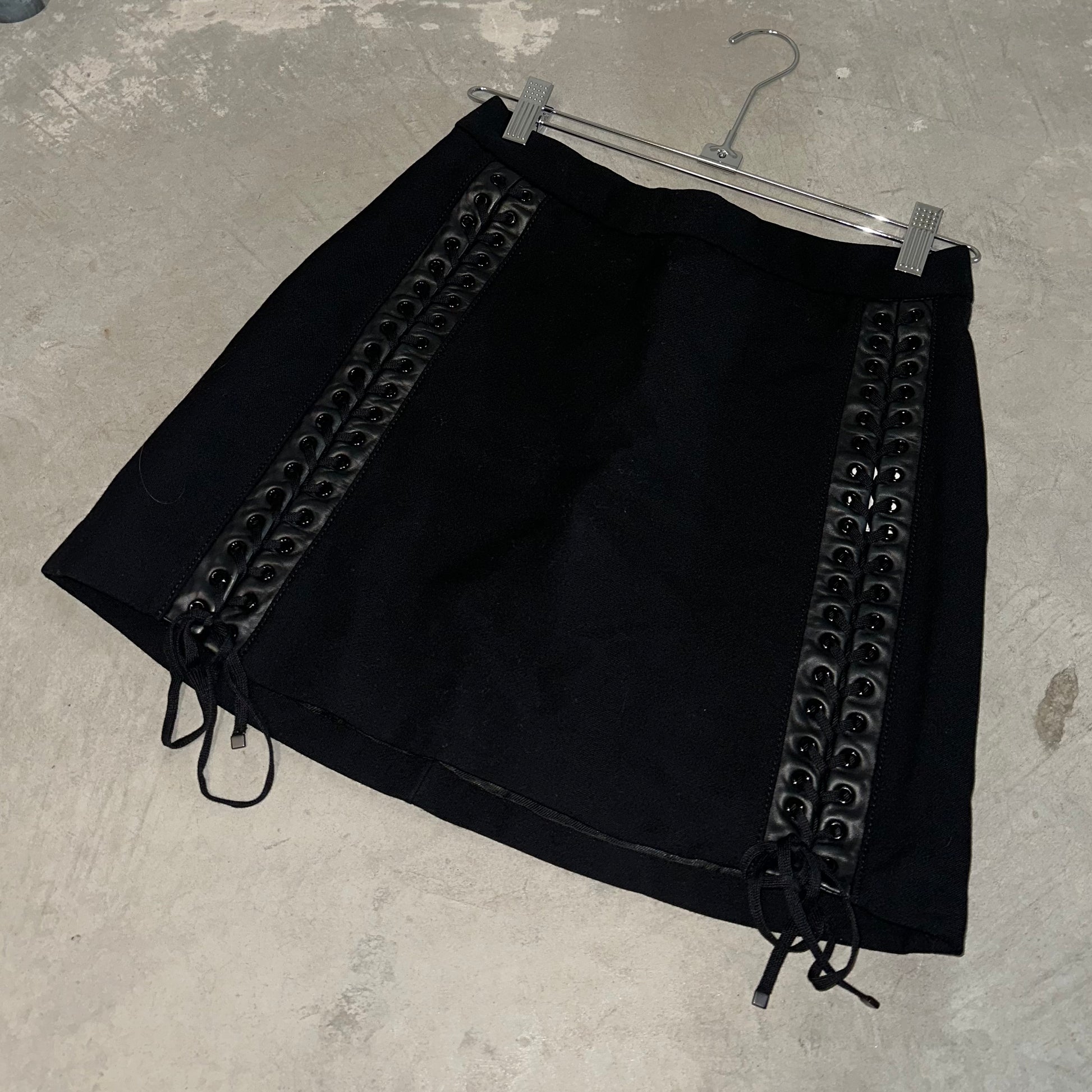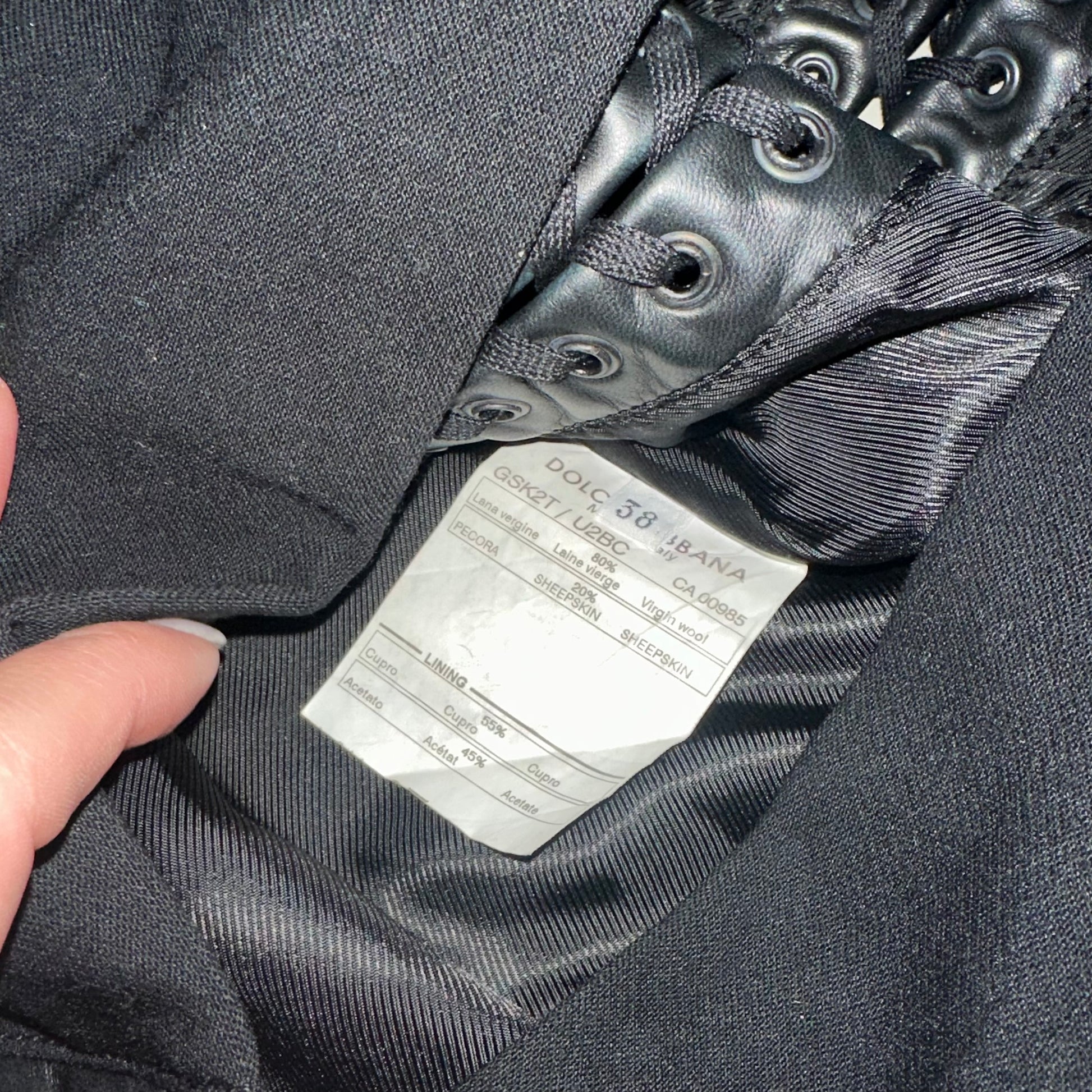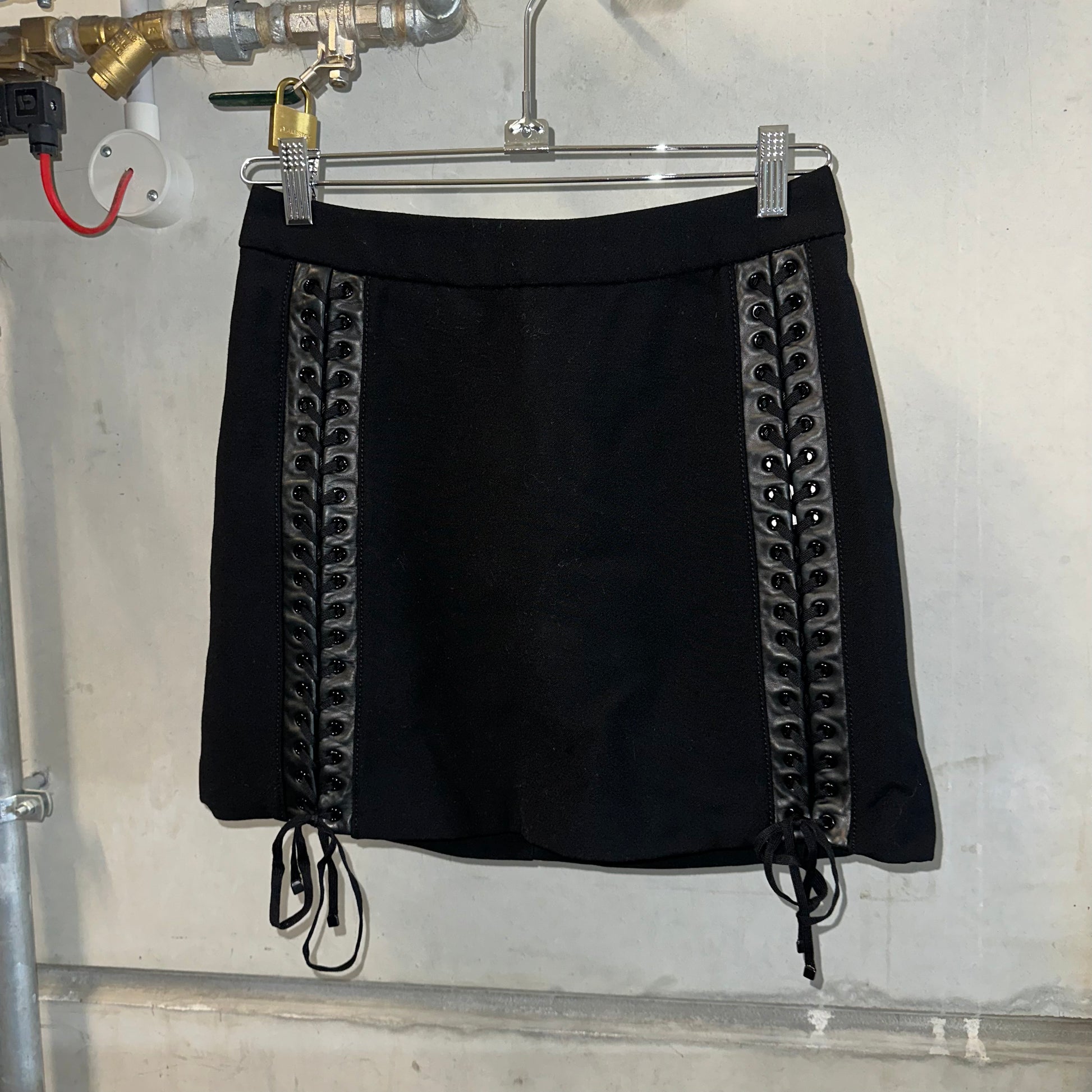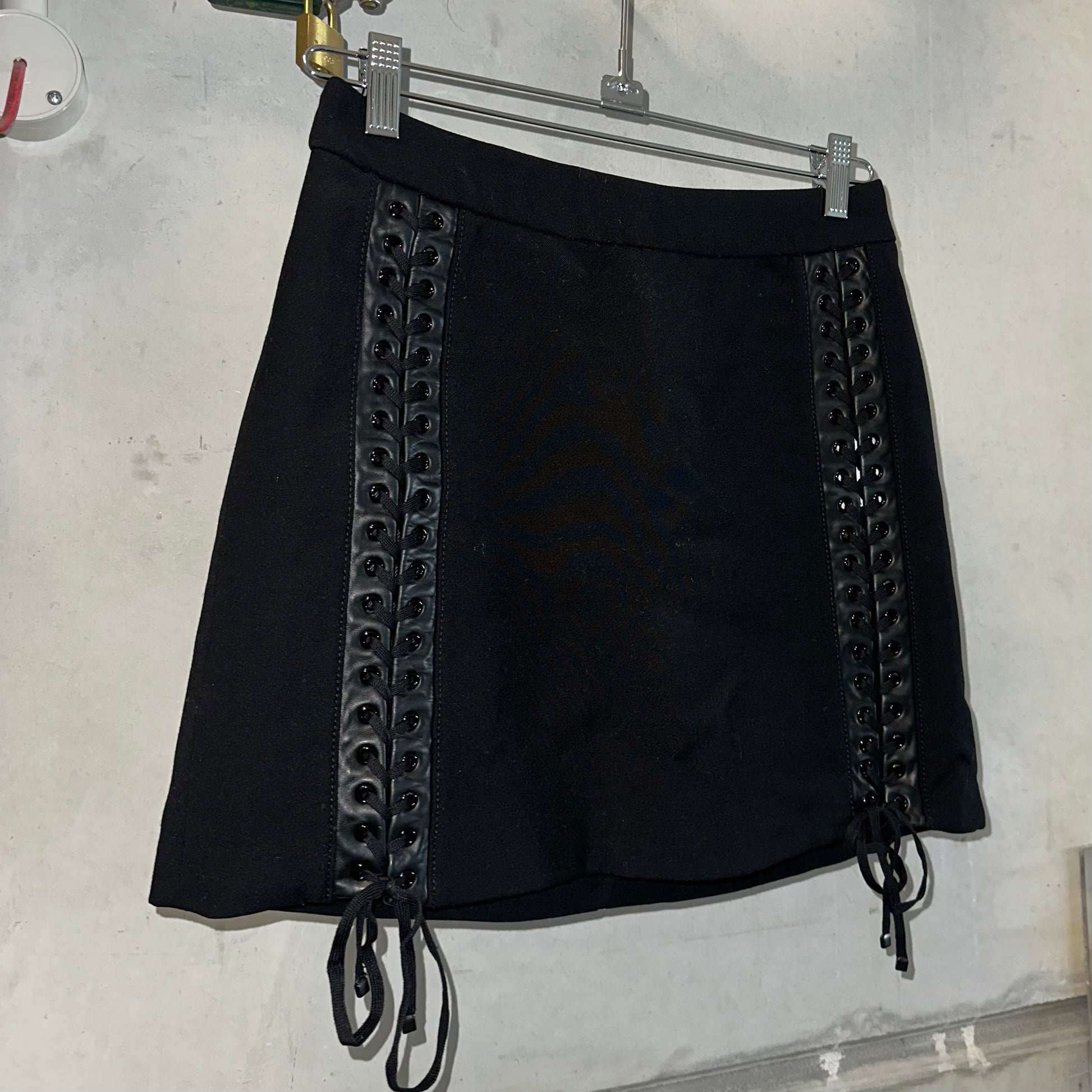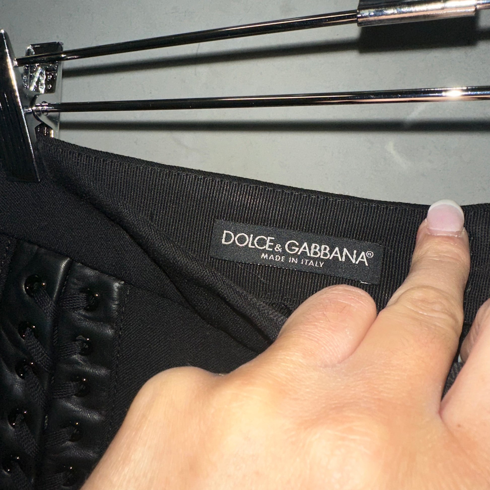 Gorgeous Dolce & Gabbana mainline mini skirt. Made of virgin wool and lambs leather. A little longer in length than your average mini skirt - could be good for a tall gal <3