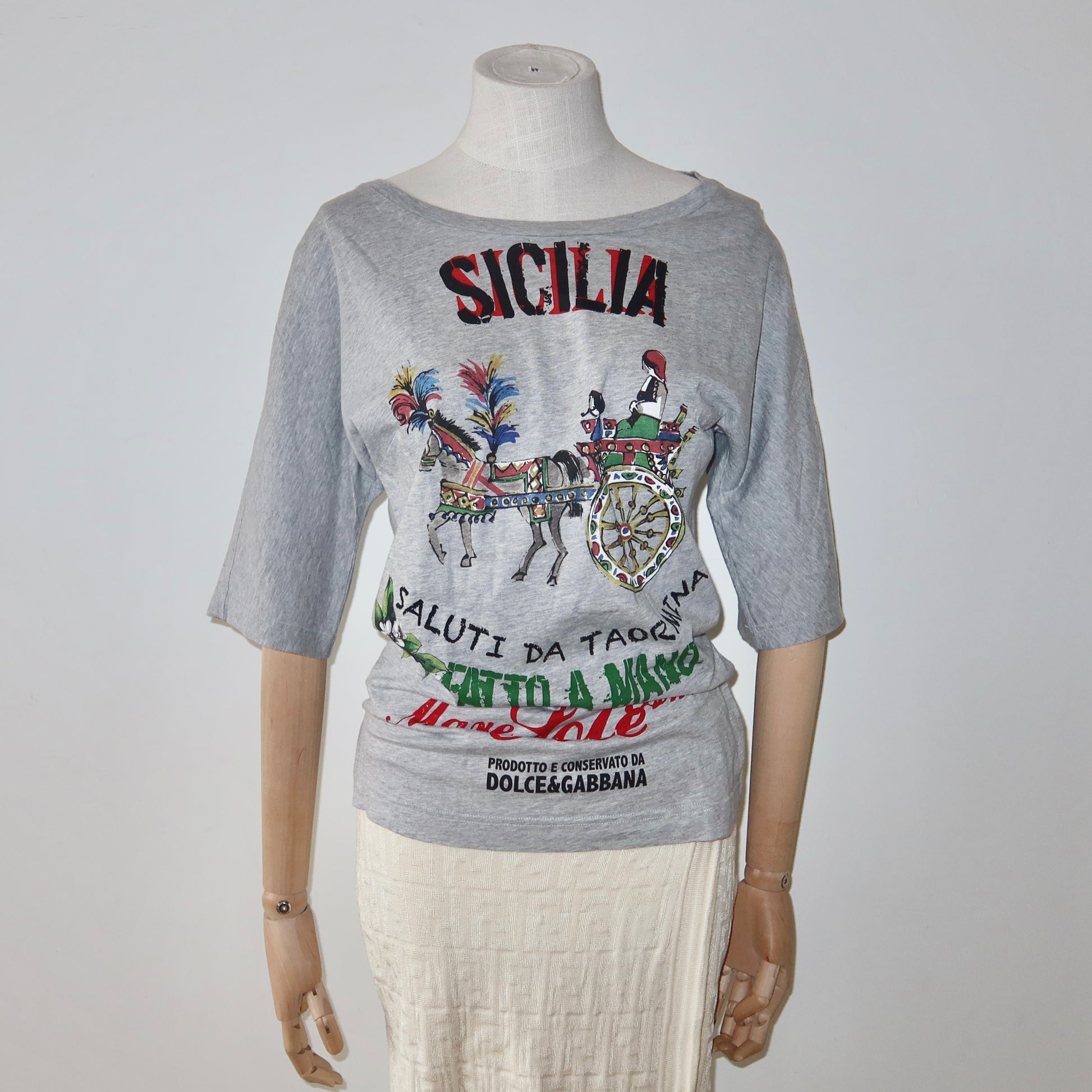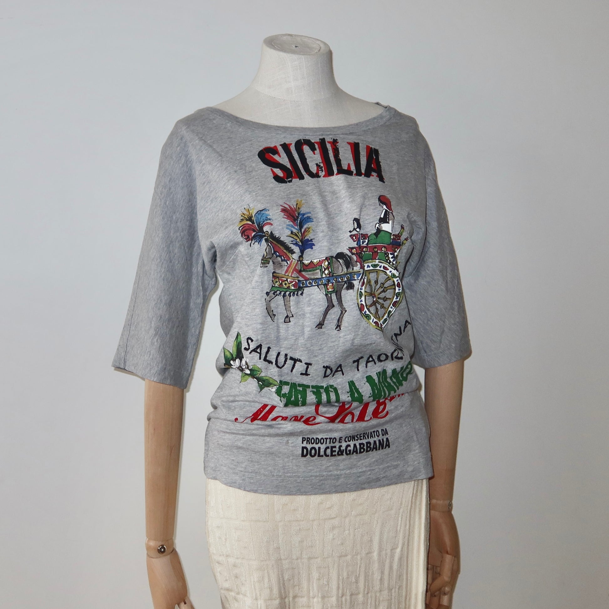 Gorgeous grey half length sleeve t-shirts with the Sicily print that features on the SS2013 runway.
