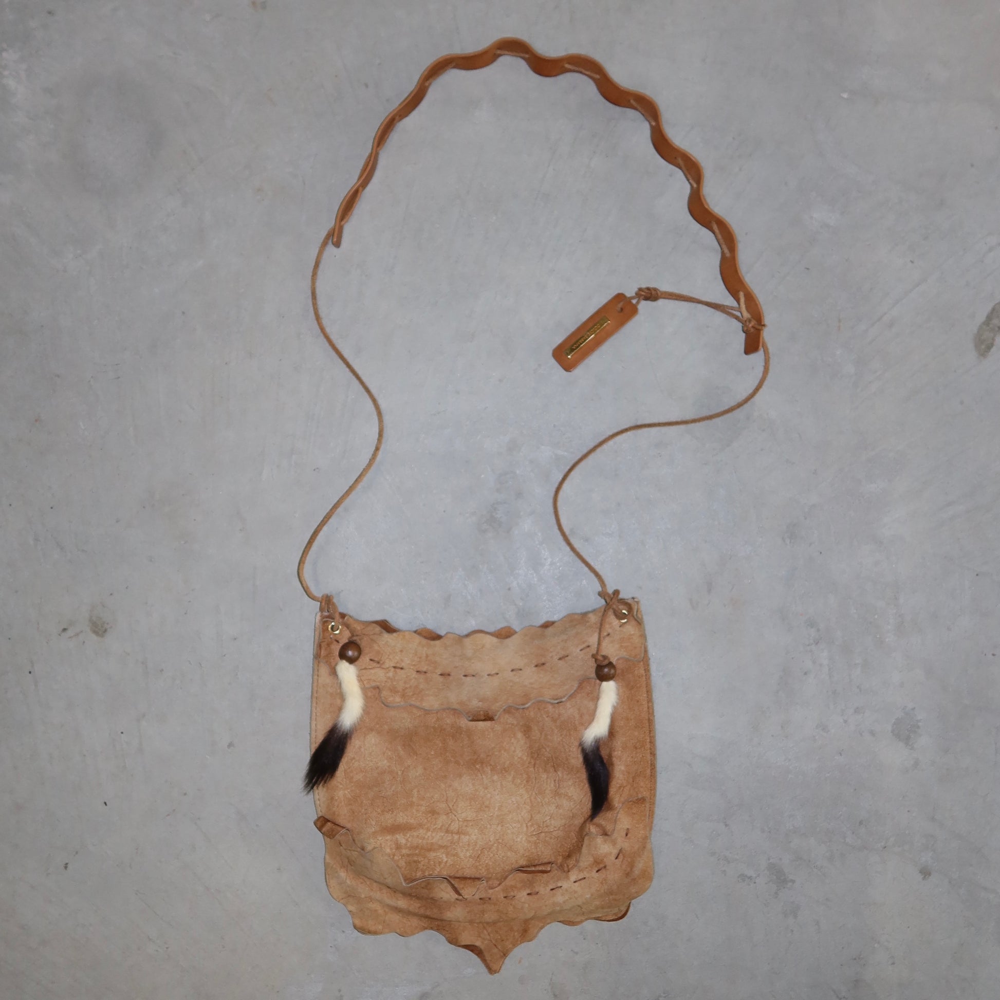 Beautiful tan suede Dolce & Gabbana crossbody bag with real fur tassels.