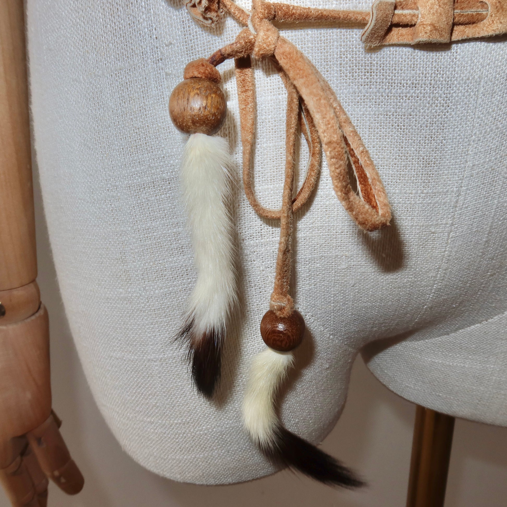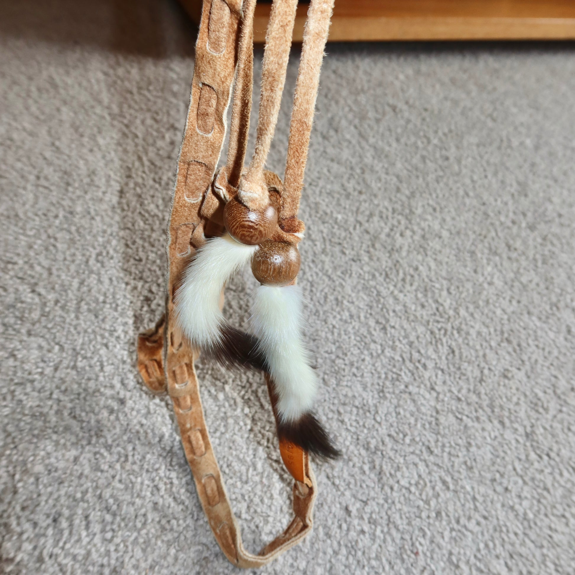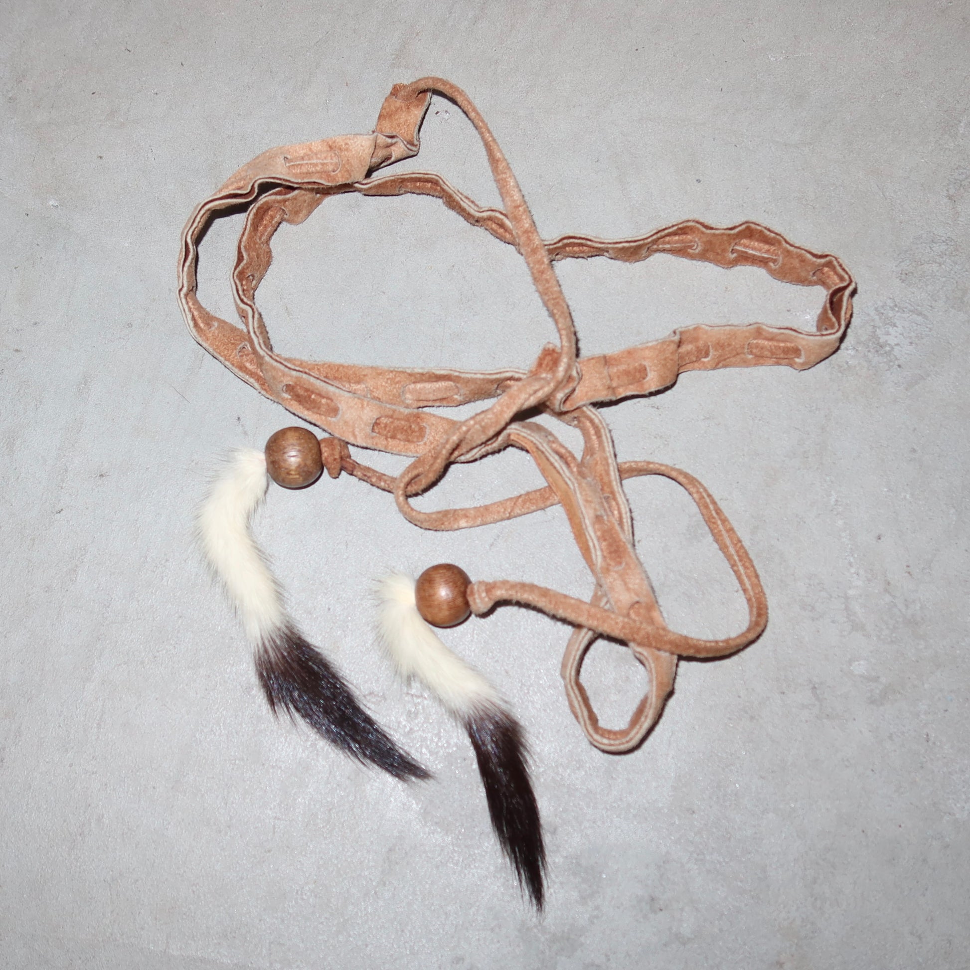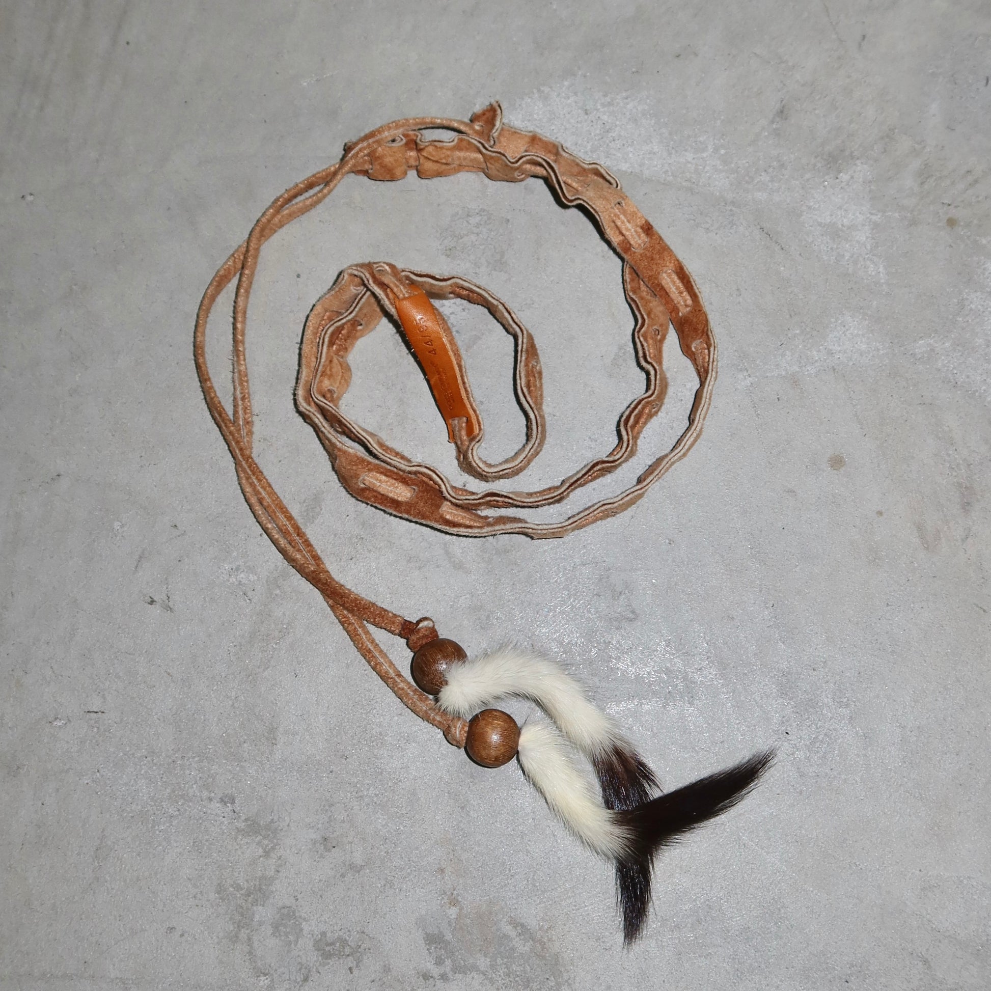 Beautiful suede skinny tie belt by Dolce & Gabbana with real mink fur tassles.