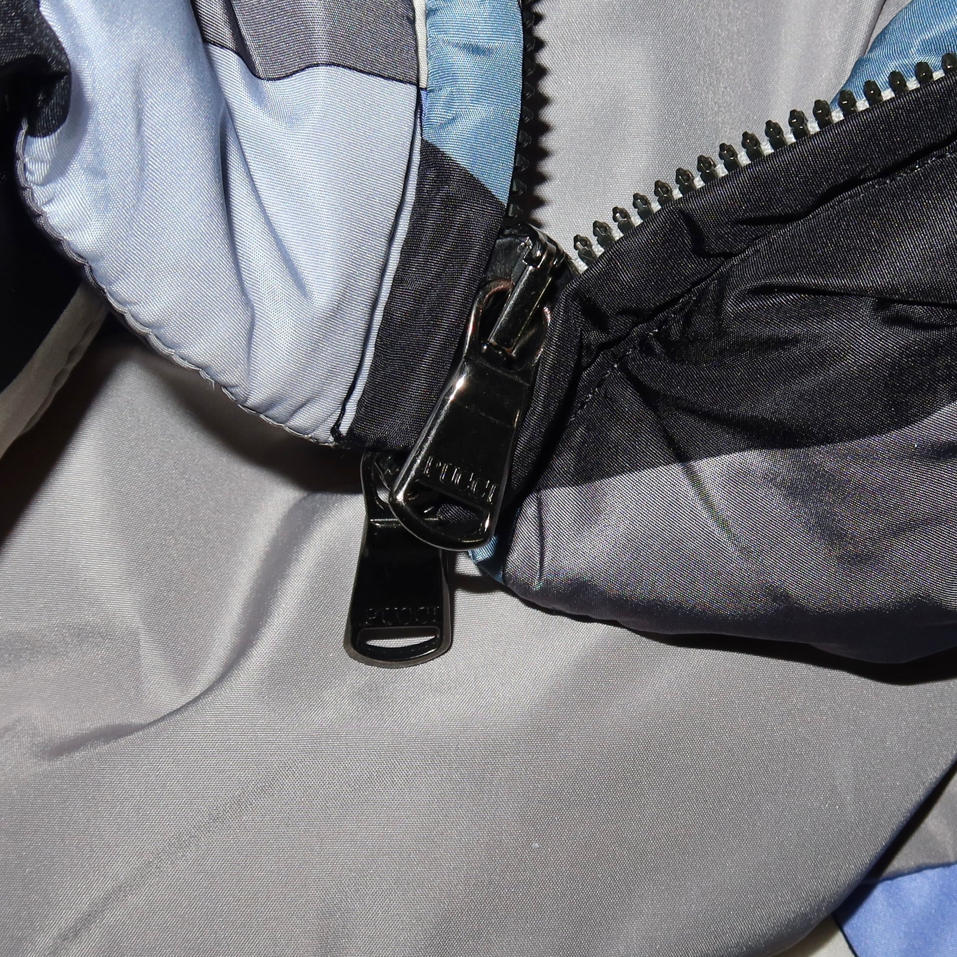 Stunning blue printed Emilio Pucci down jacket with real fox fur trim.