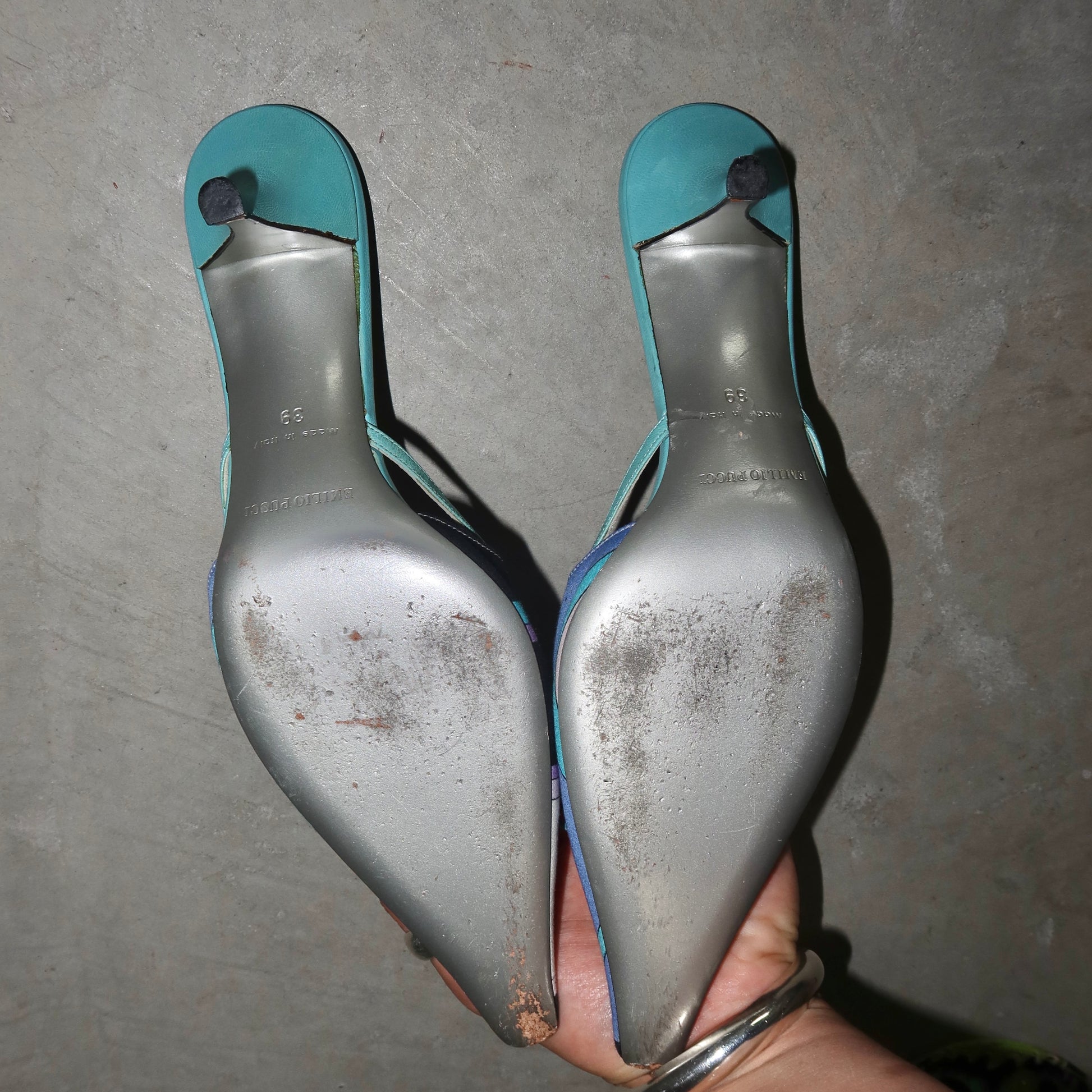 Emilio Pucci Blue Kitten Heel Mules (38.5)