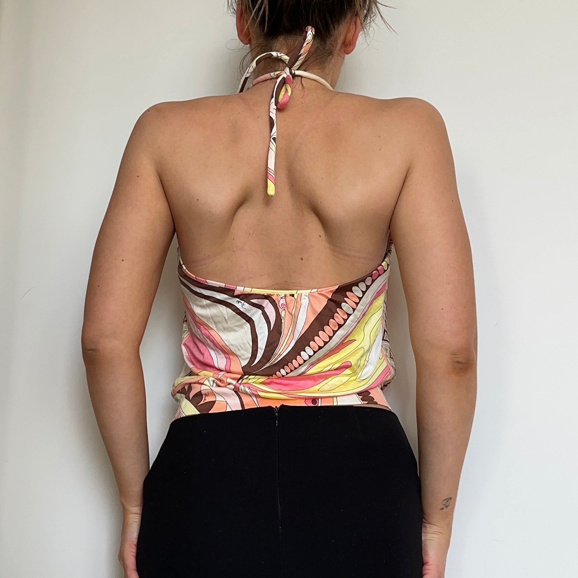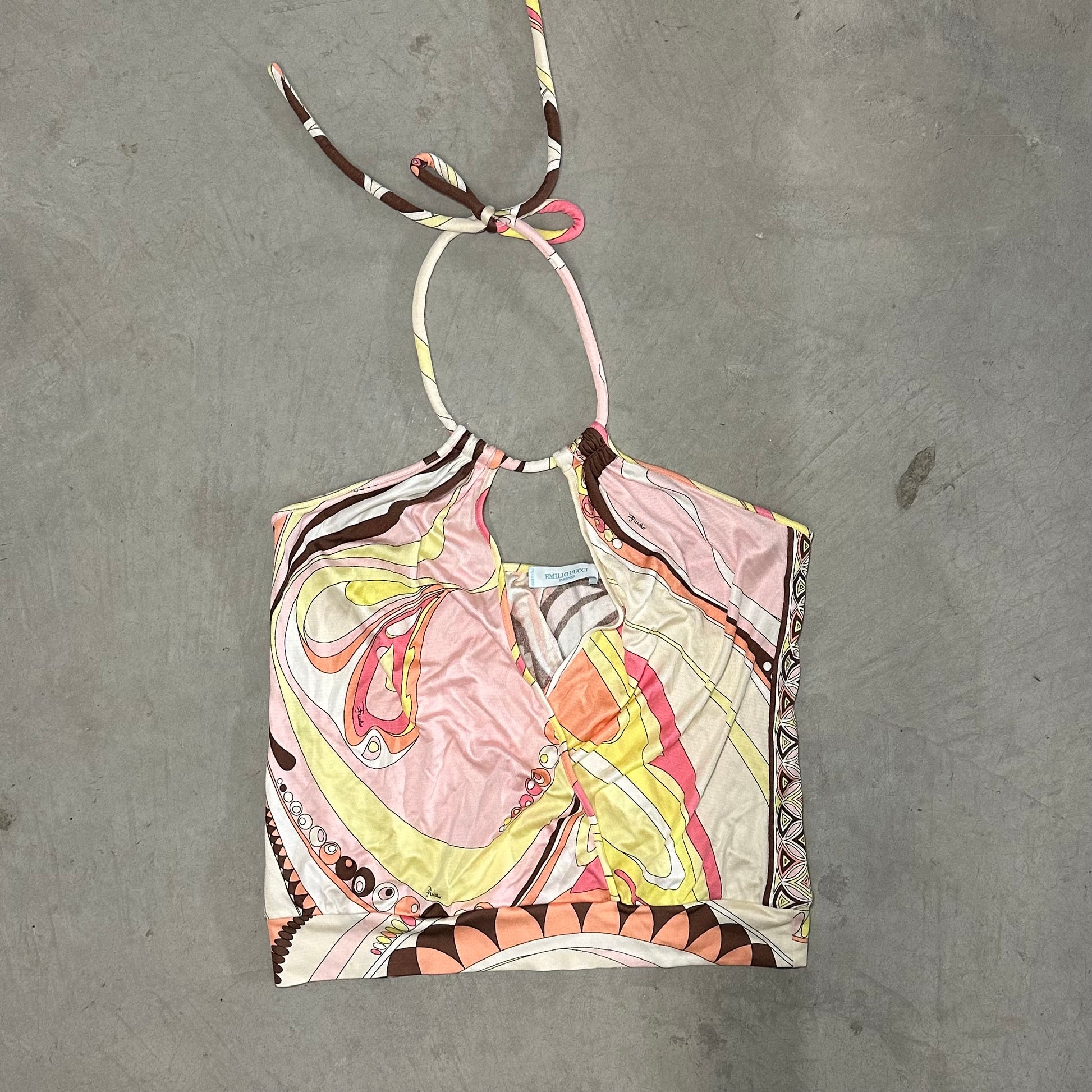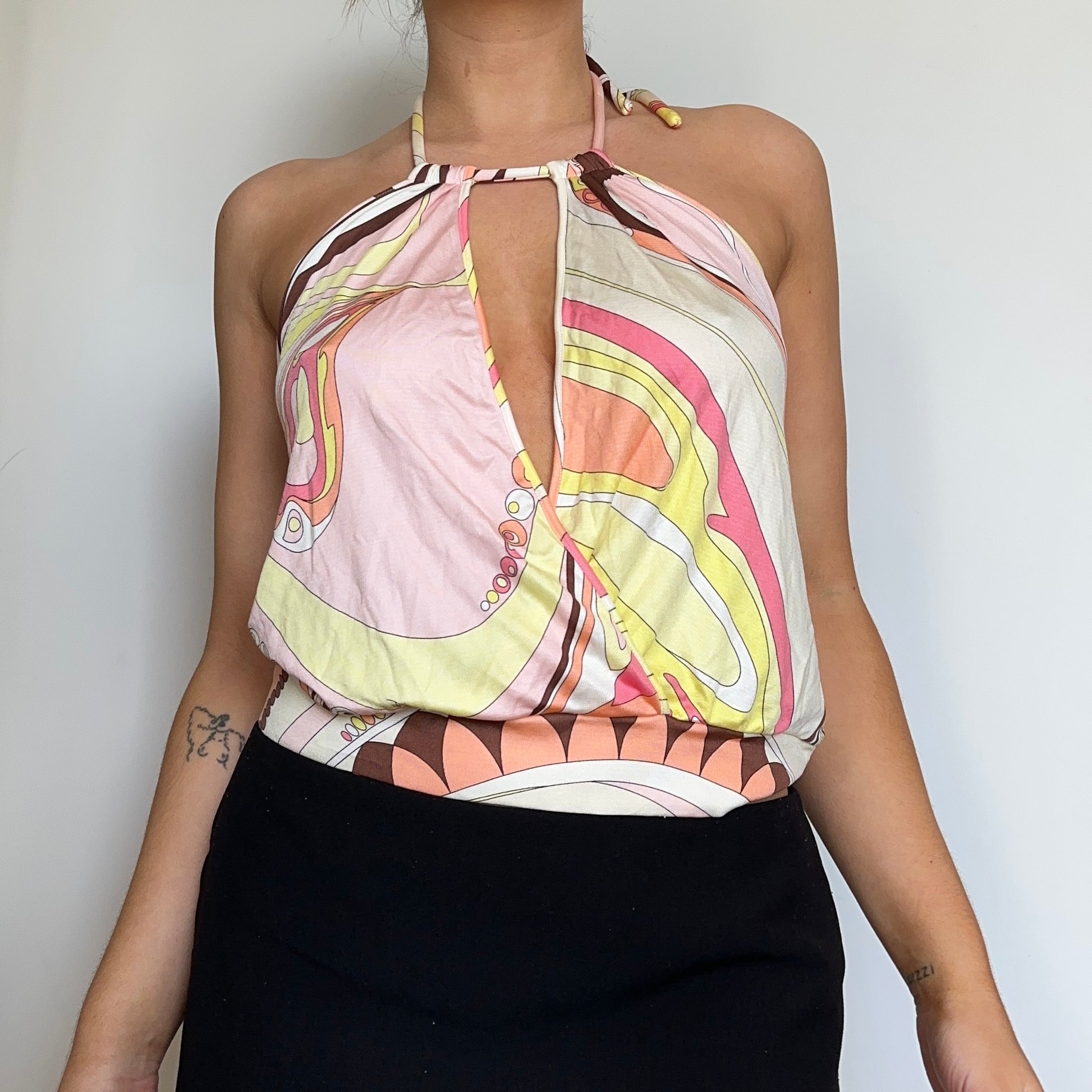 The cutest Emilio Pucci slinky halter top with keyhole detail.