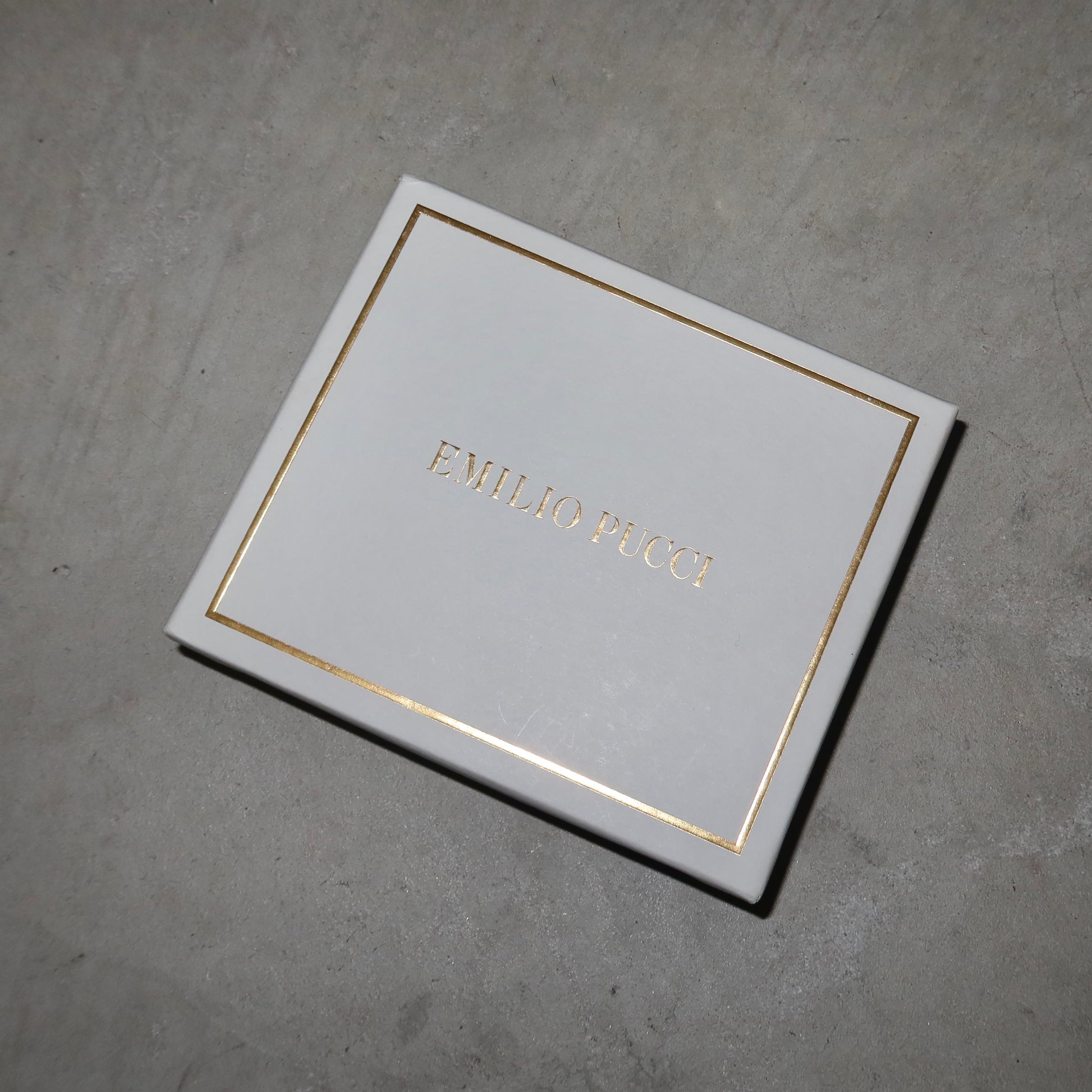 Beautiful lesser-seen Emilio Pucci leather tri-fold wallet in a classic Pucci print. Beautiful candy pink interior. Comes with original box and dustbag.