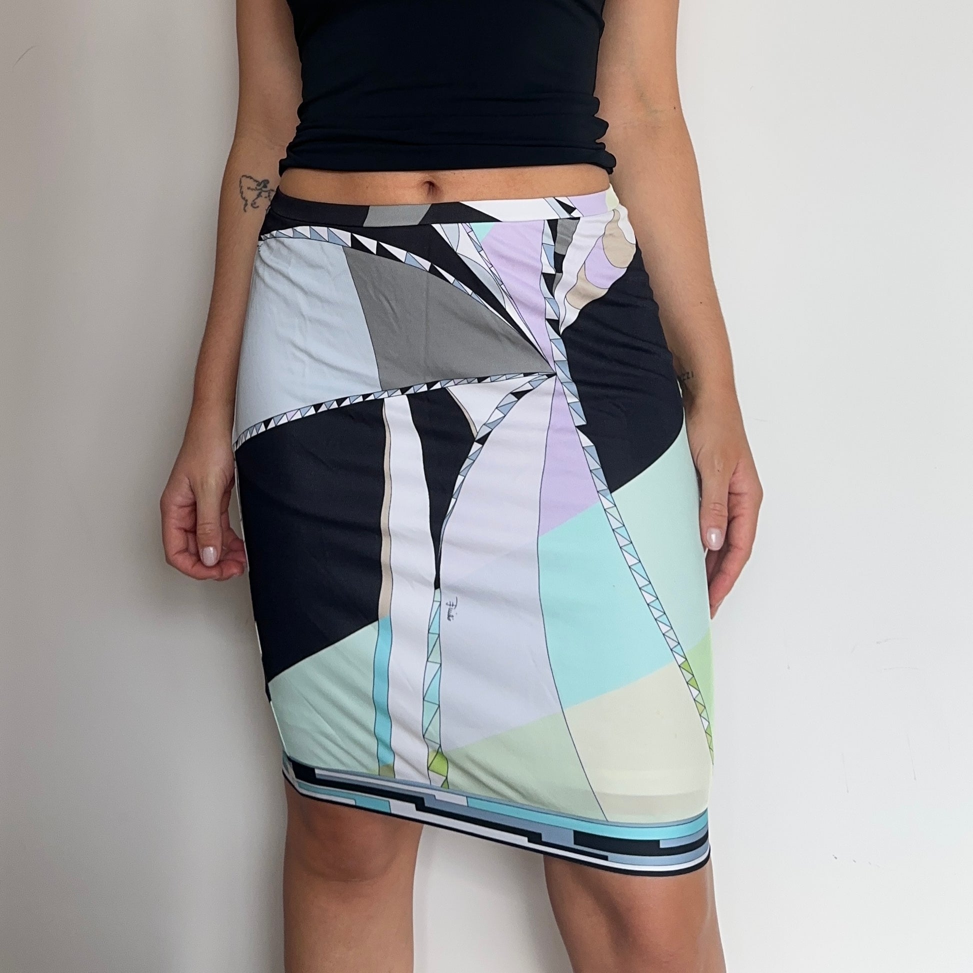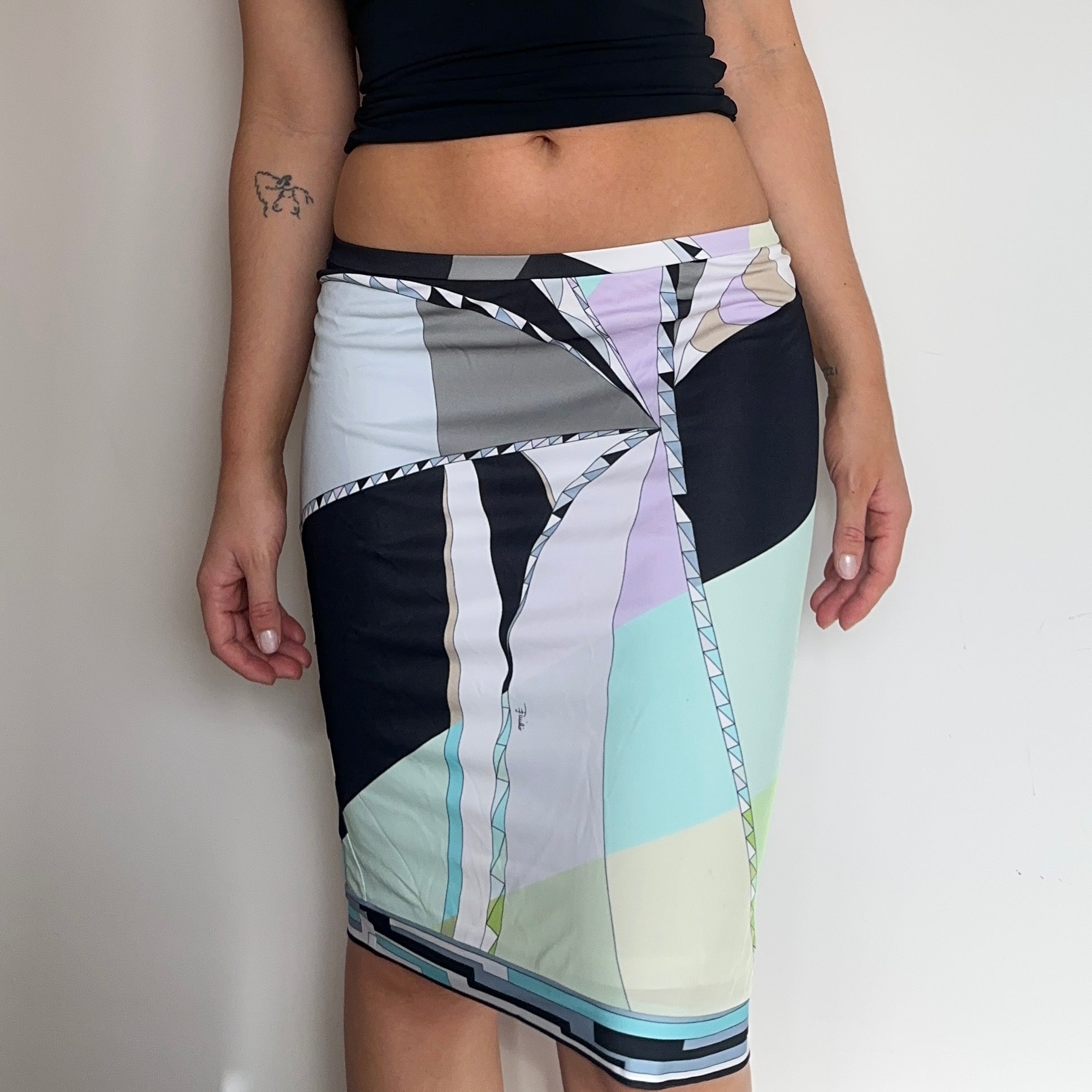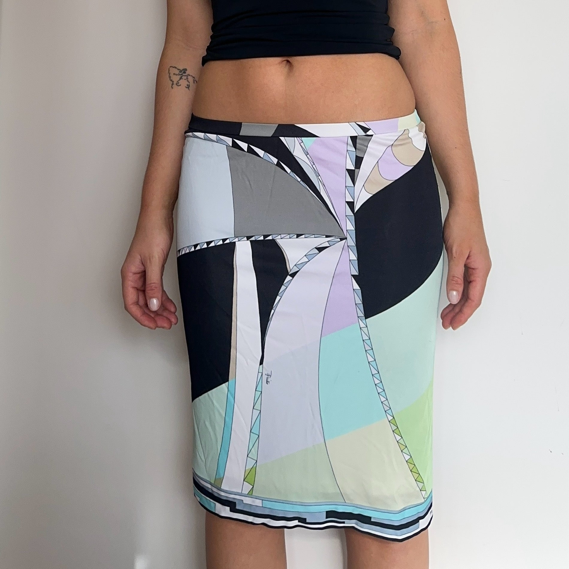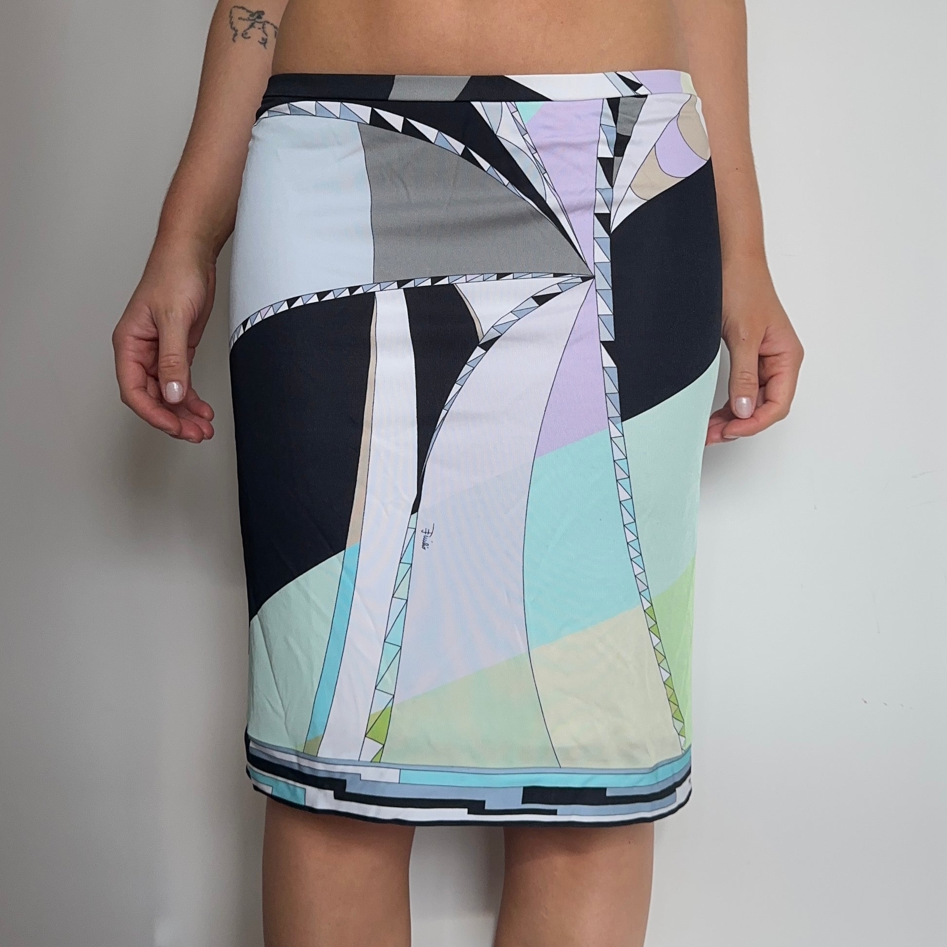 Gorgeous slinky Emilio Pucci midi skirt. Has stretch and can be worn high or low rise.