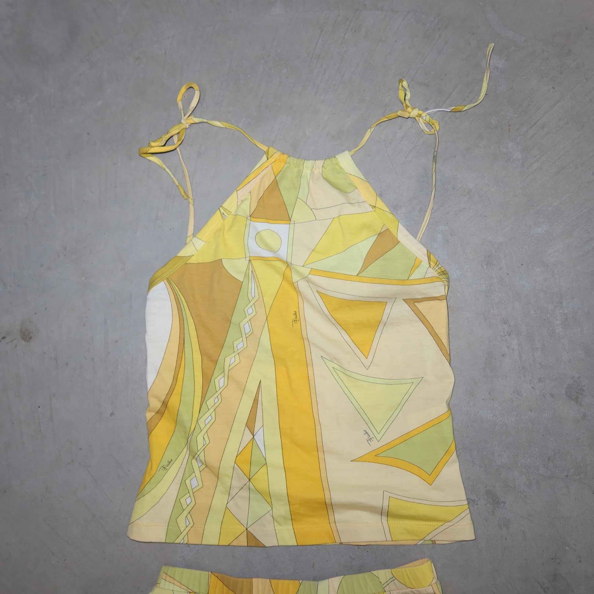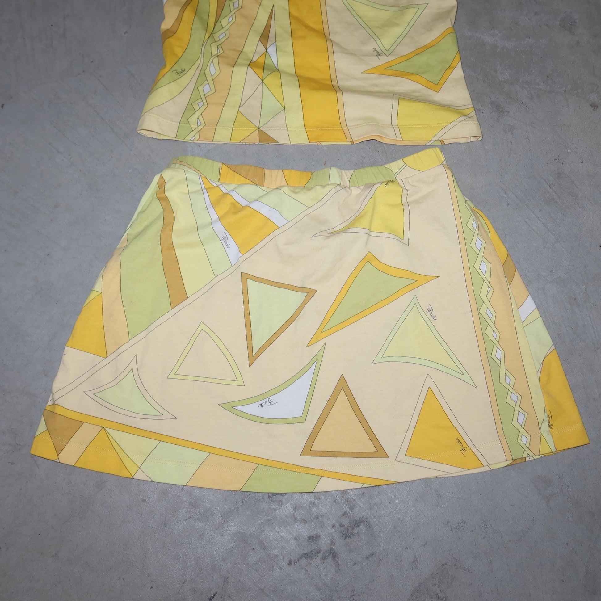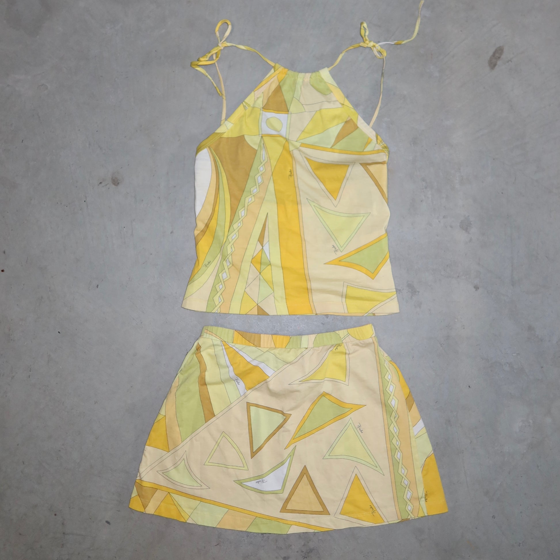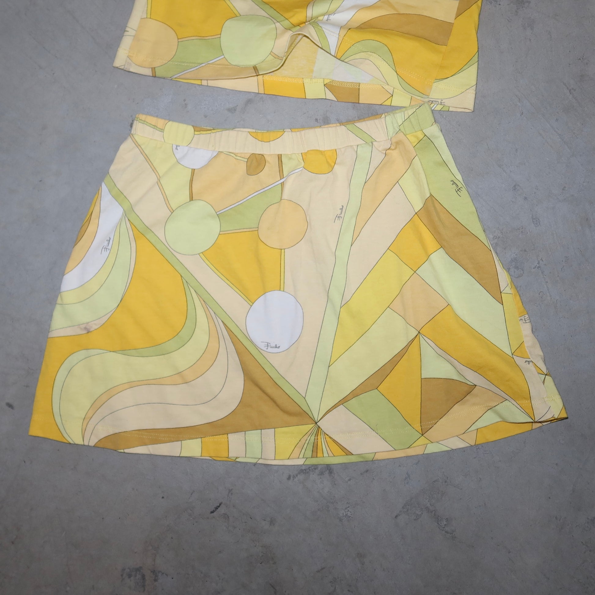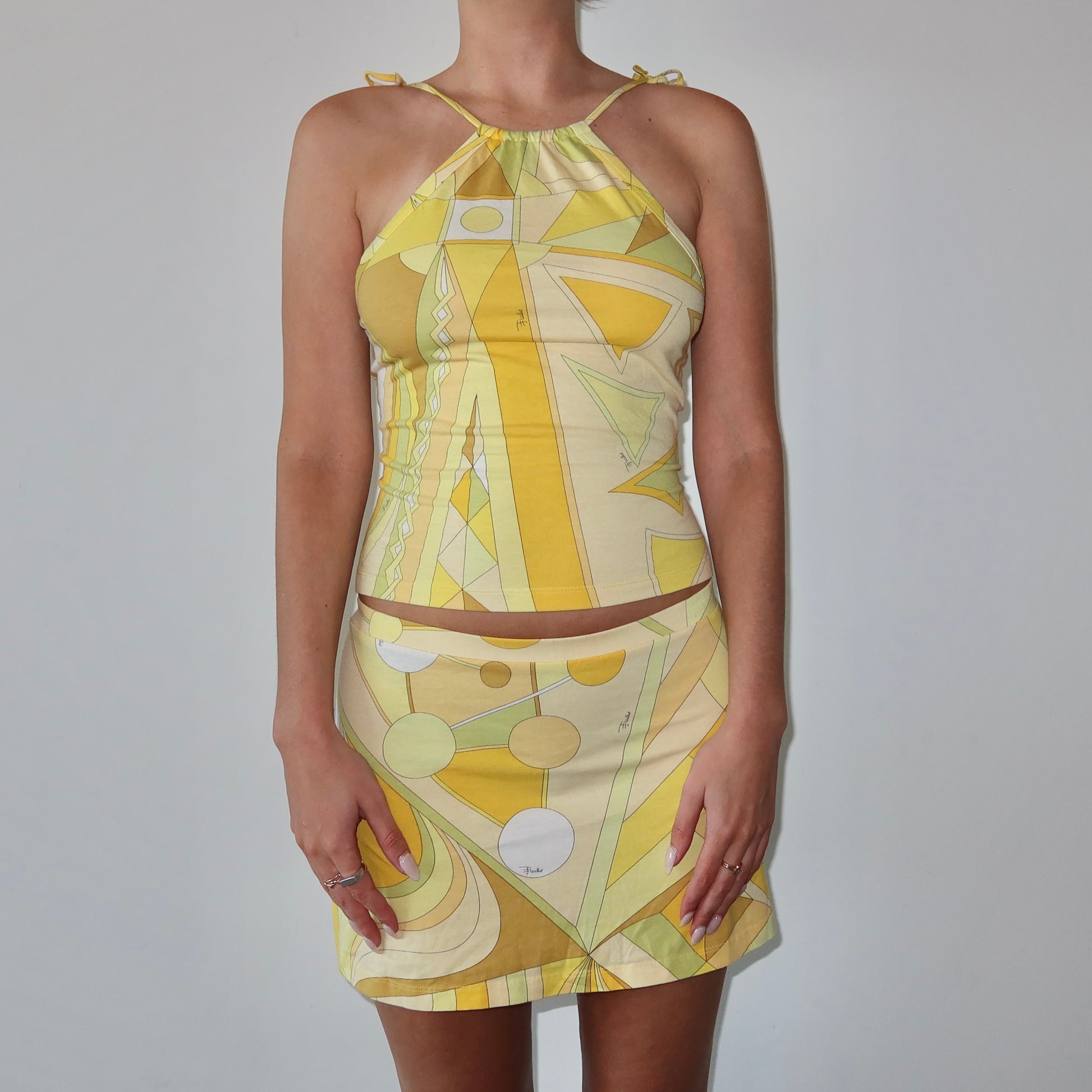The cutest Emilio Pucci yellow printed mini skirt set.