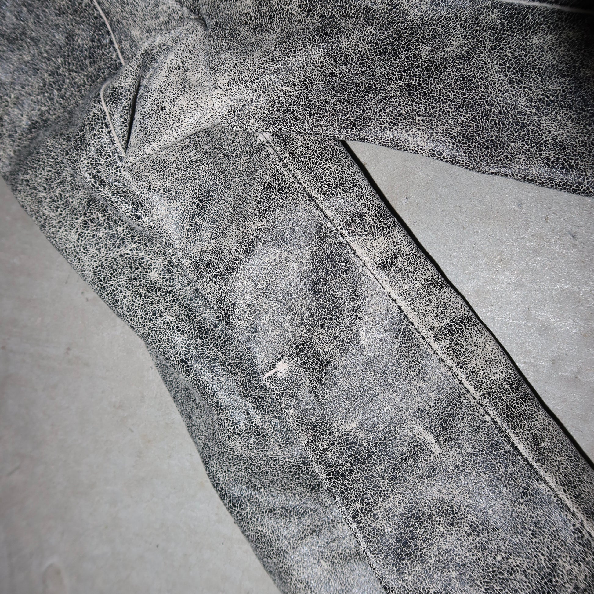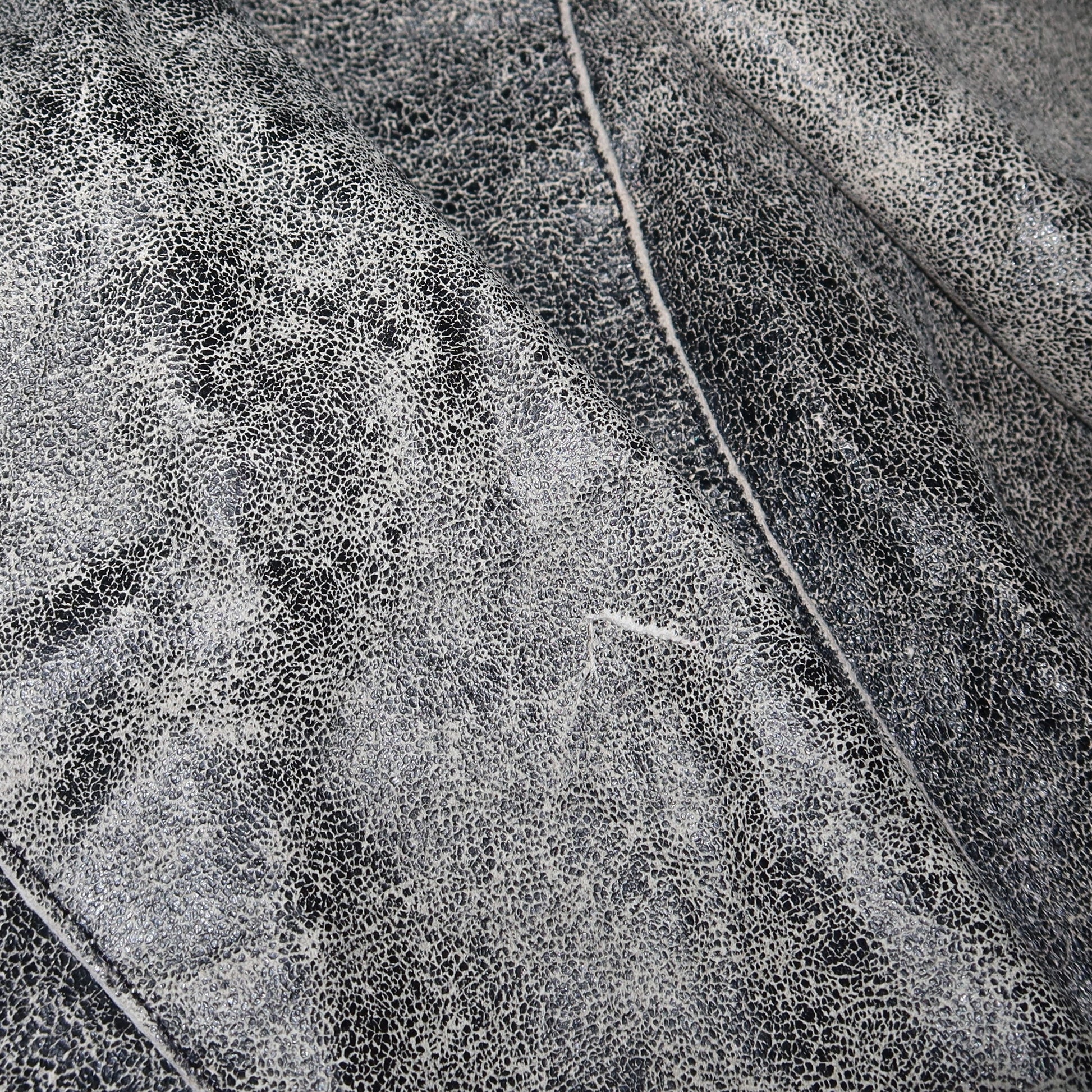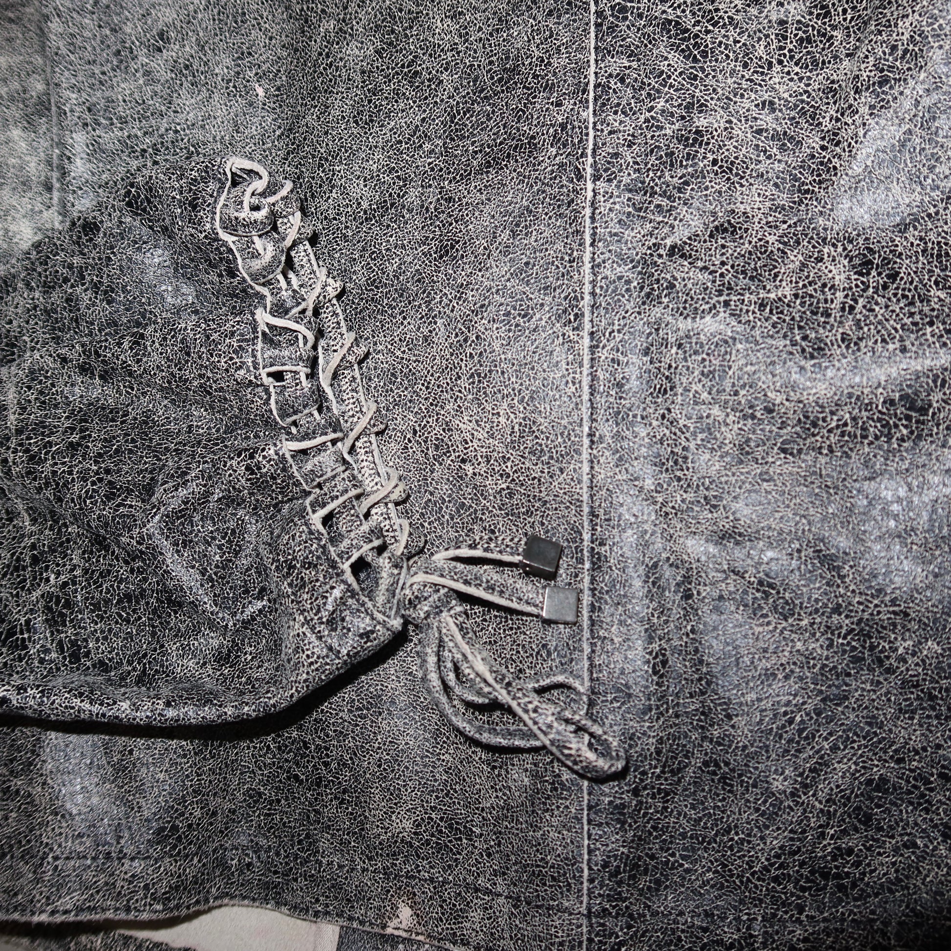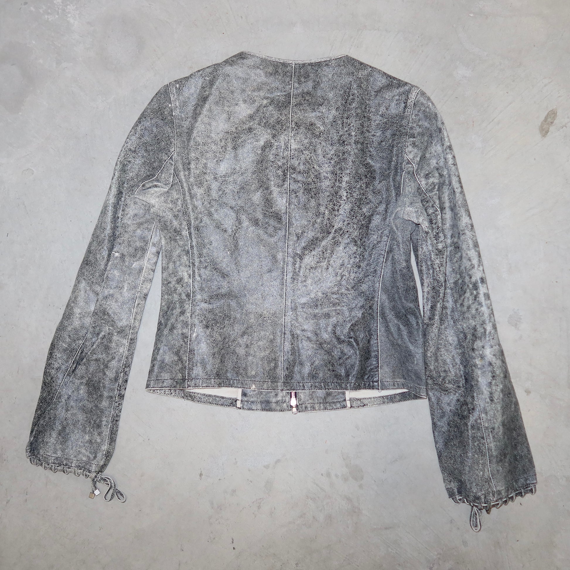 The most beautiful grey leather Emporio Armani leather jacket with the cutest sleeve details. The silhouette of this jacket is extremely flattering. The leather is very thin and lightweight with an aged look to it. Suede lining!