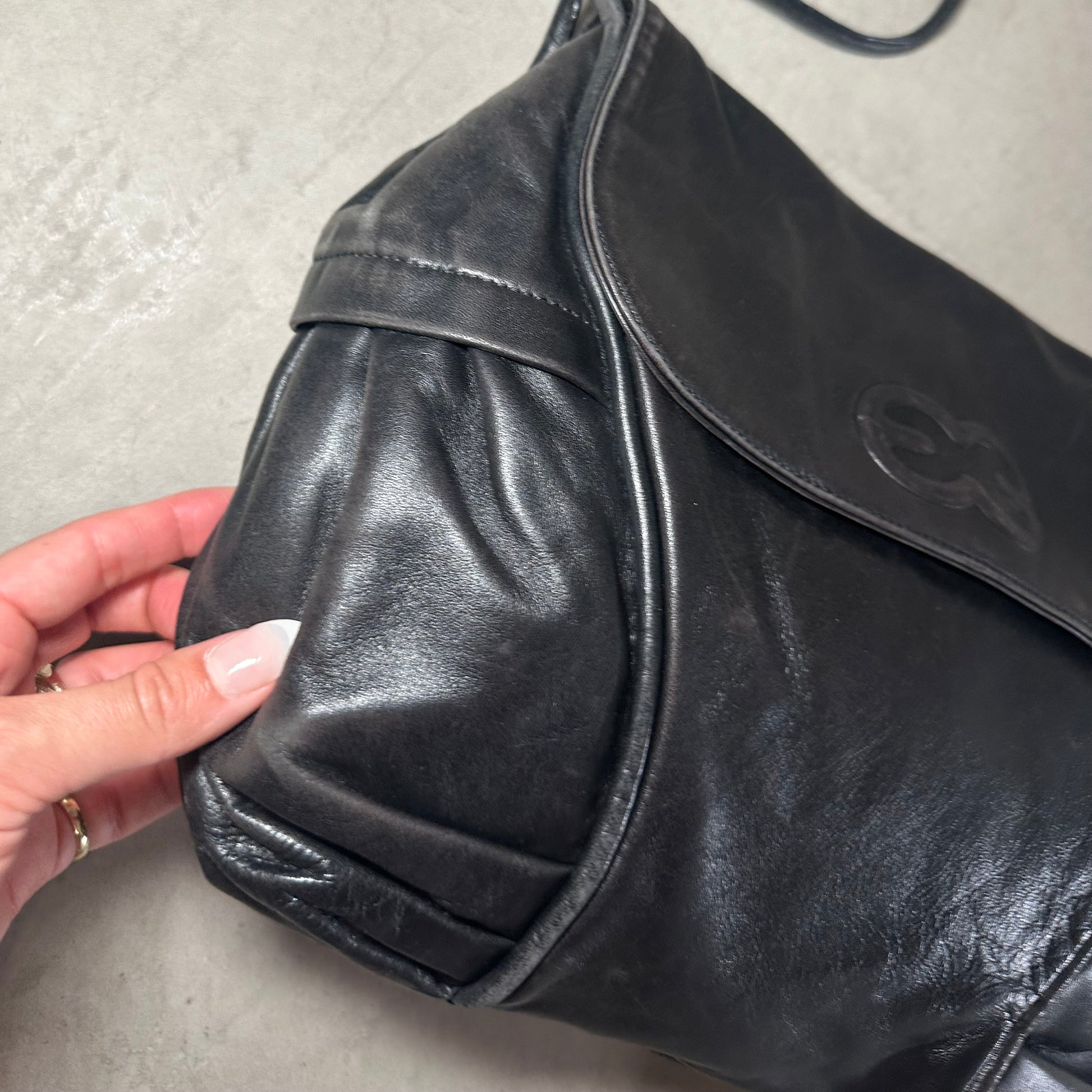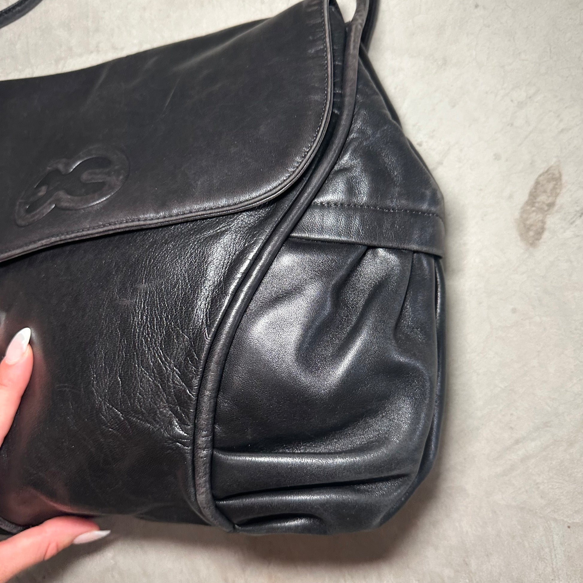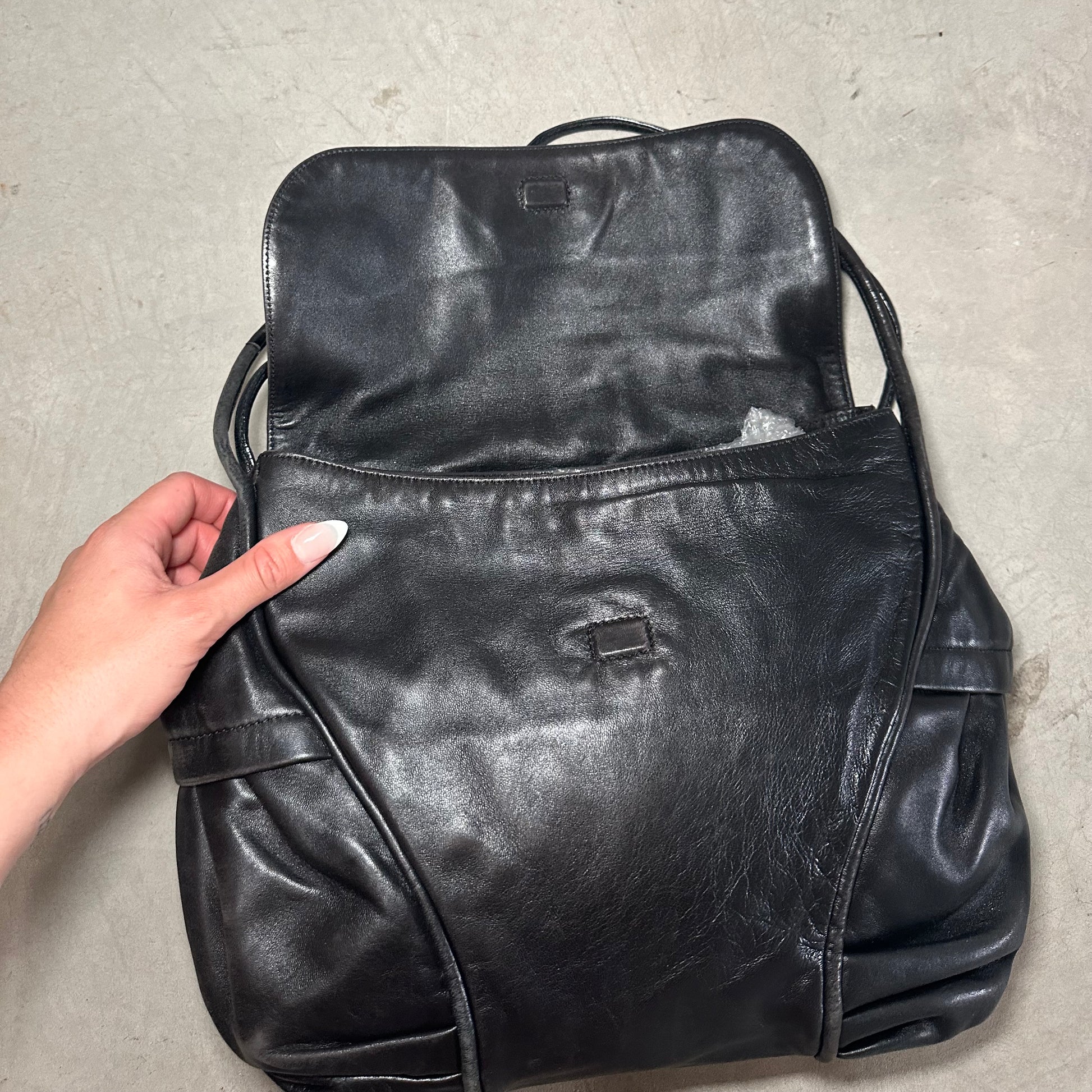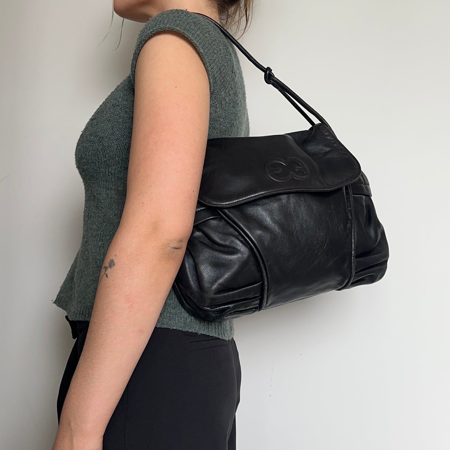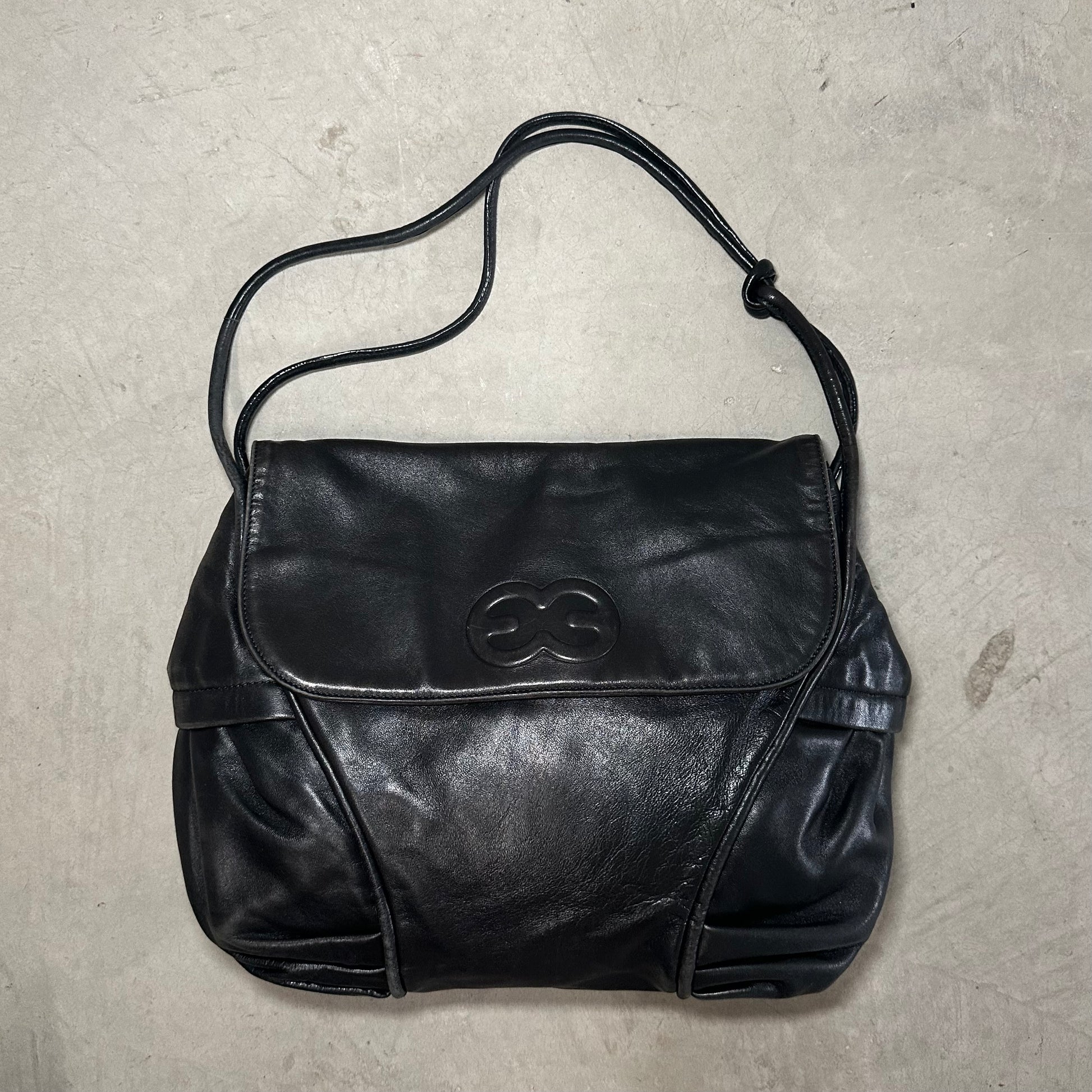 Gorgeously chic Escada leather bag with branded flap closure. Cute knotted handle detail.