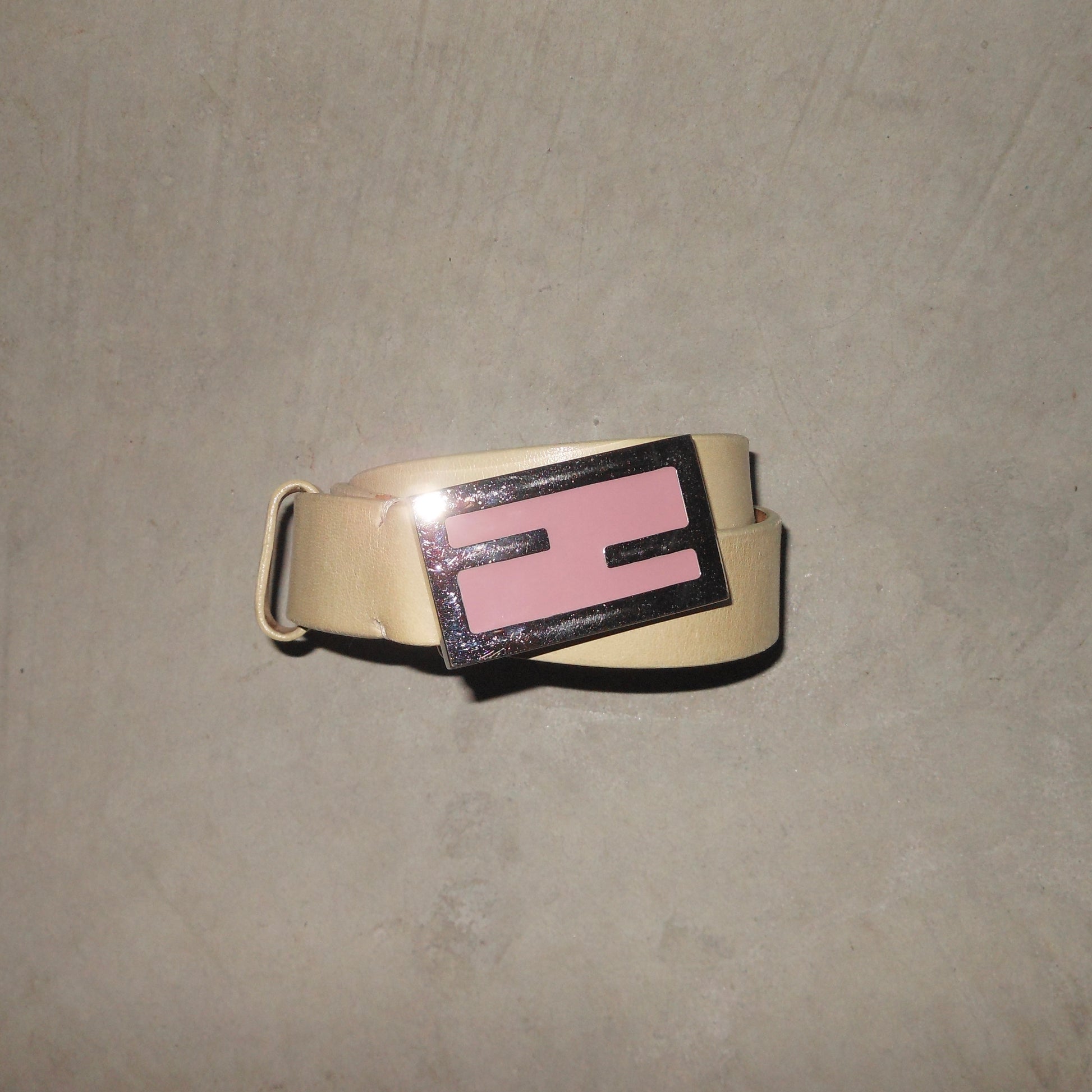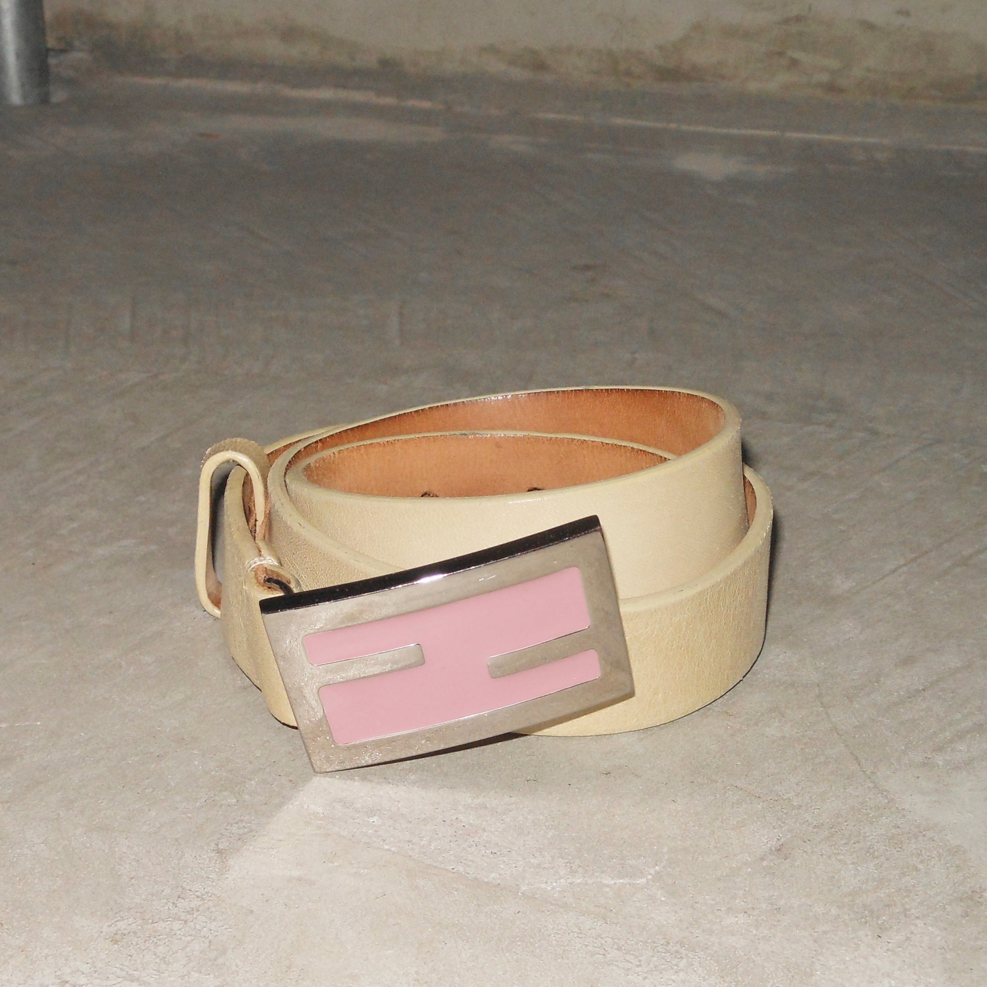 Amazing rare Fendi "baguette" style cream leather belt with candy pink hardware.