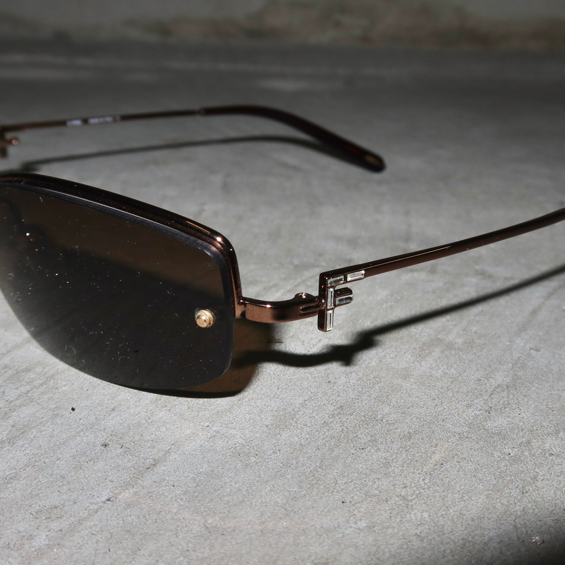 Gorgeous brown tinted Fendi sunglasses with gold hardware and crystal embellished 'F' details on the legs.