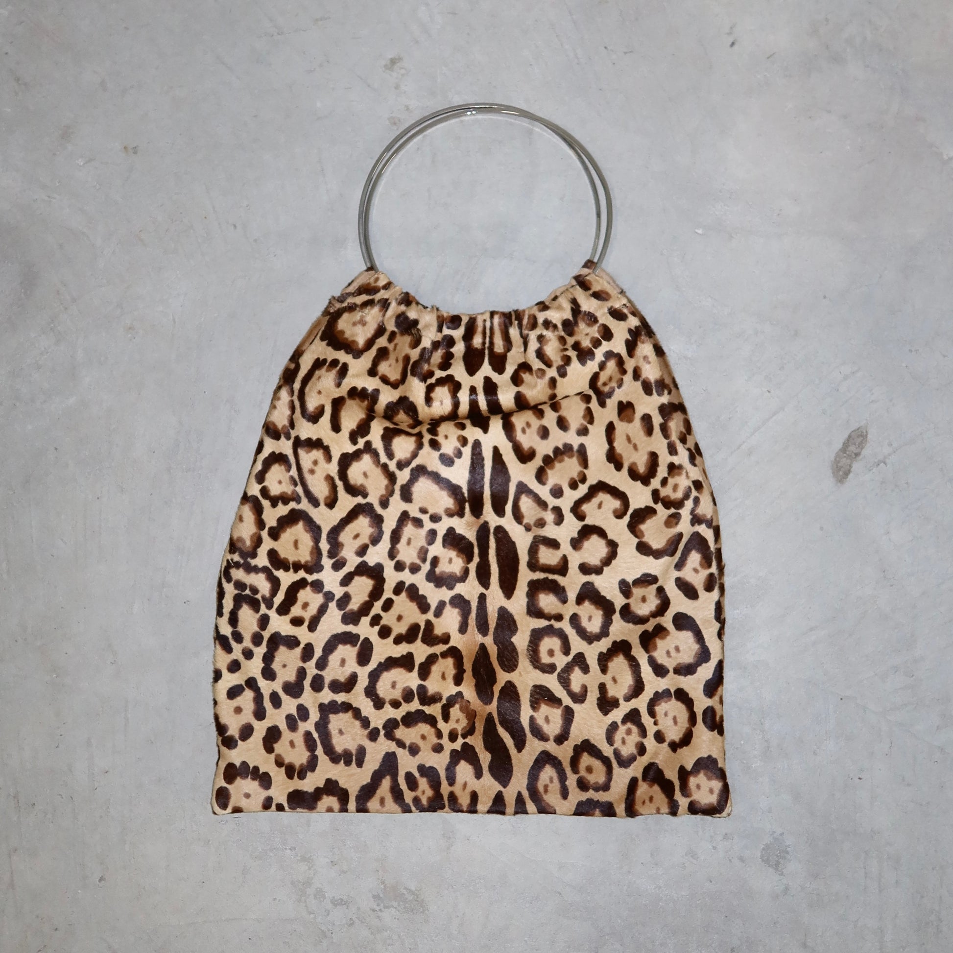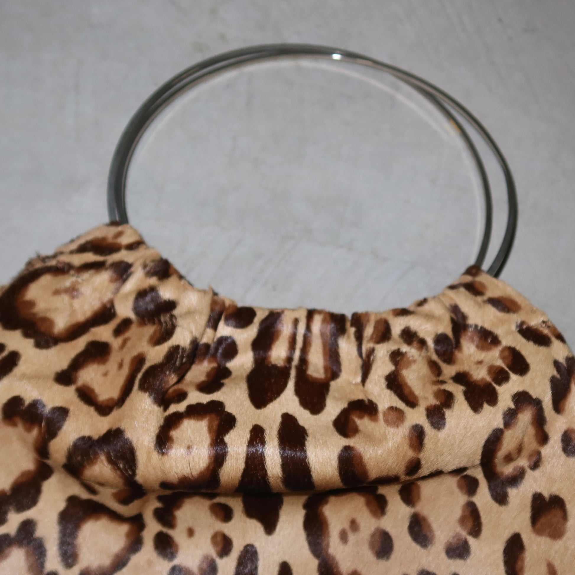 Unbelievable large cowhide tote by Fendi in their iconic Karl Lagerfeld era leopard print. Large metal ring handles.