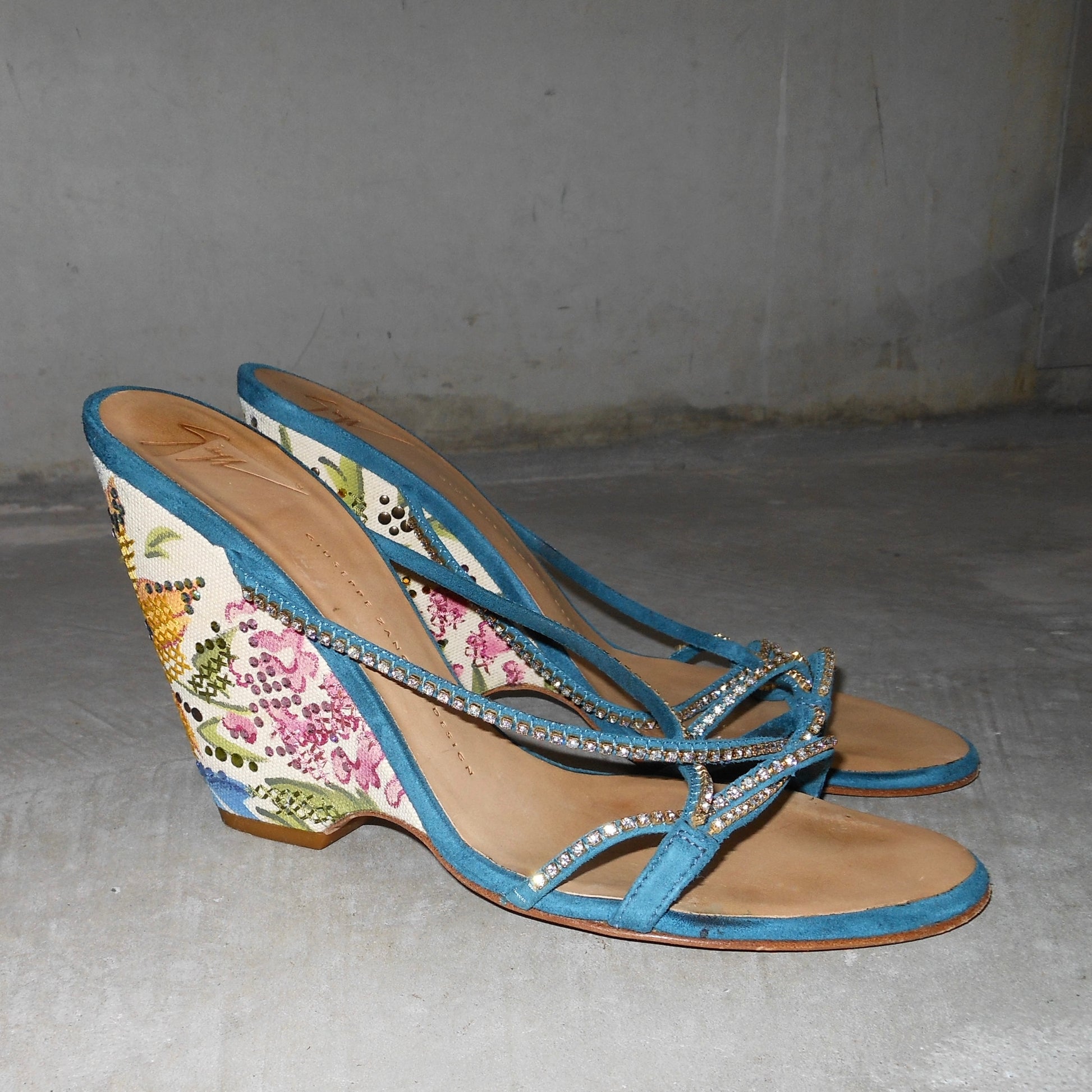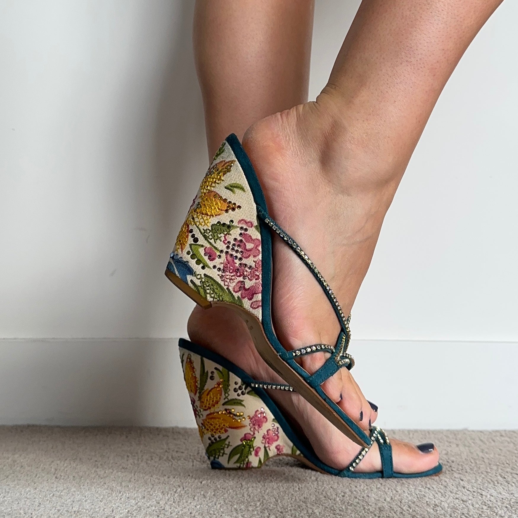 Screaming over these Giuseppe Zanotti tapestry-esque wedges. The most gorgeous strappy shoes with diamante trims and embellished floral wedge detail.
