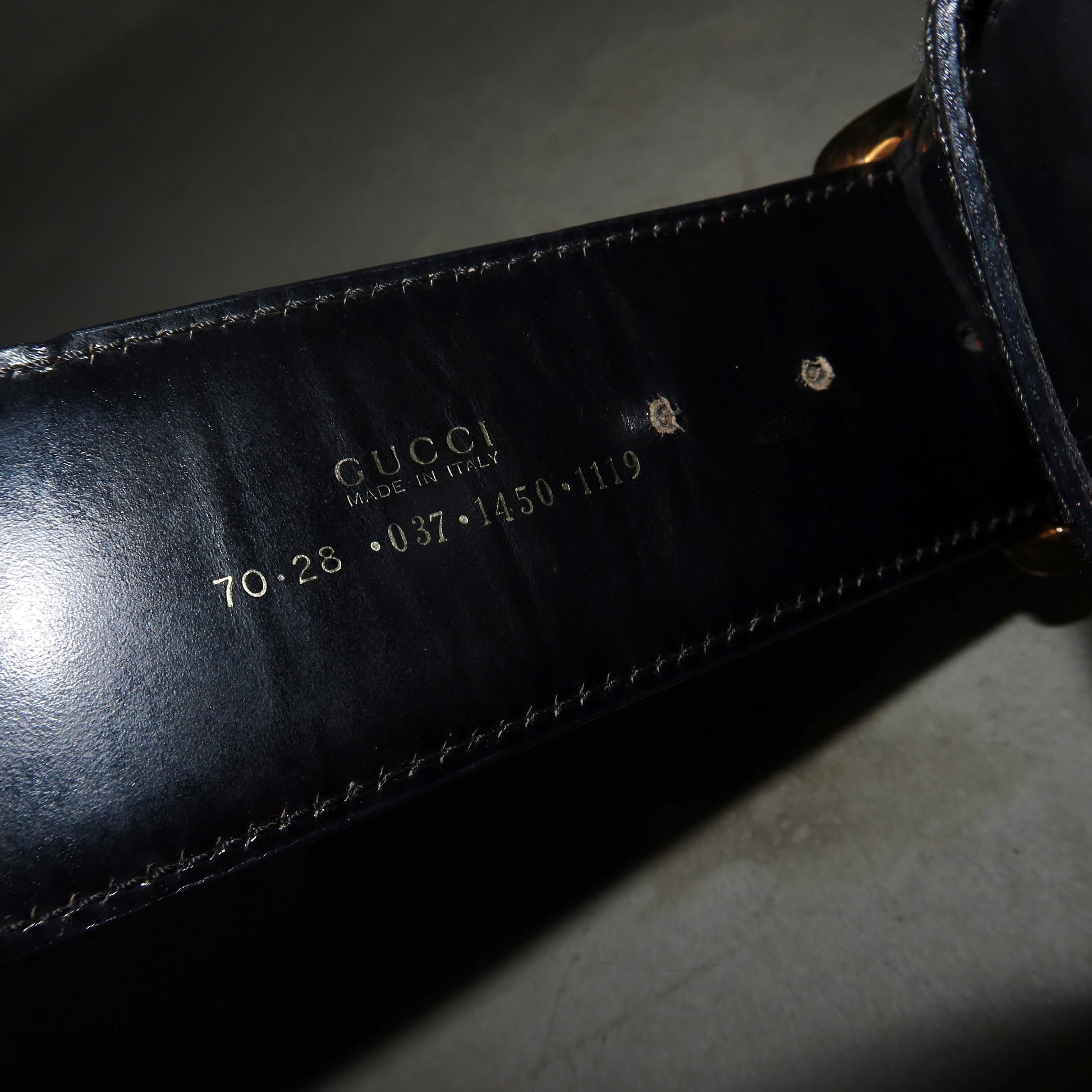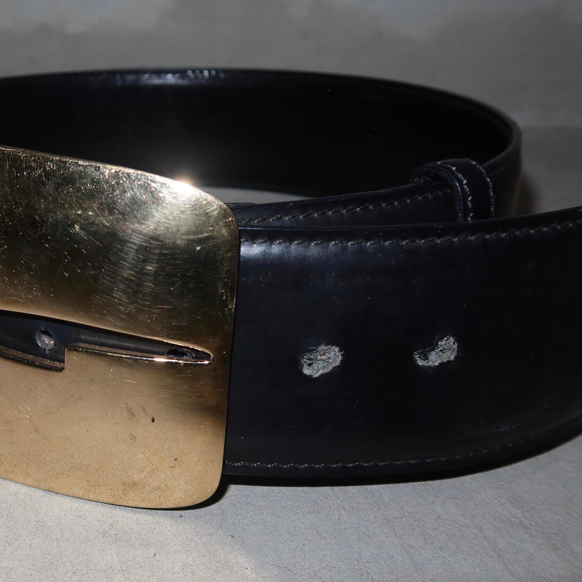 Great vintage condition. Some scratches to the surface of the buckle. Two new holes have been punched unprofessionally, as pictured. Reflected in price.
