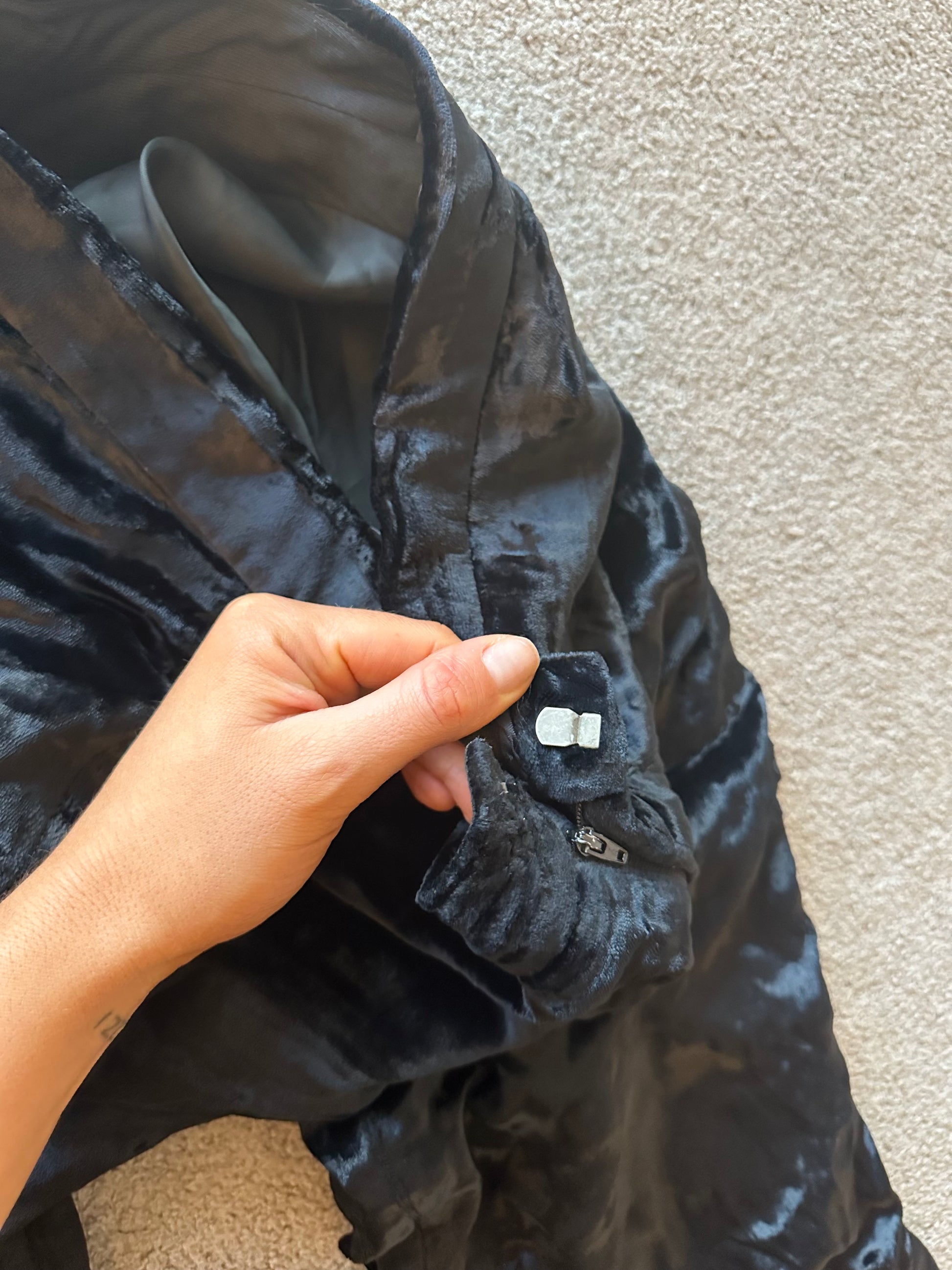Good vintage condition. The hook fastening is a bit loose due to it coming off (before I got a hold of them) and me replacing it professionally. There was a hole just below the zipper that I have had repaired but please bare in mind these are a silk blend so will need to be treated with care lest it tear again. These typically resell for $900-1200 AUD so I have marked the price accordingly.