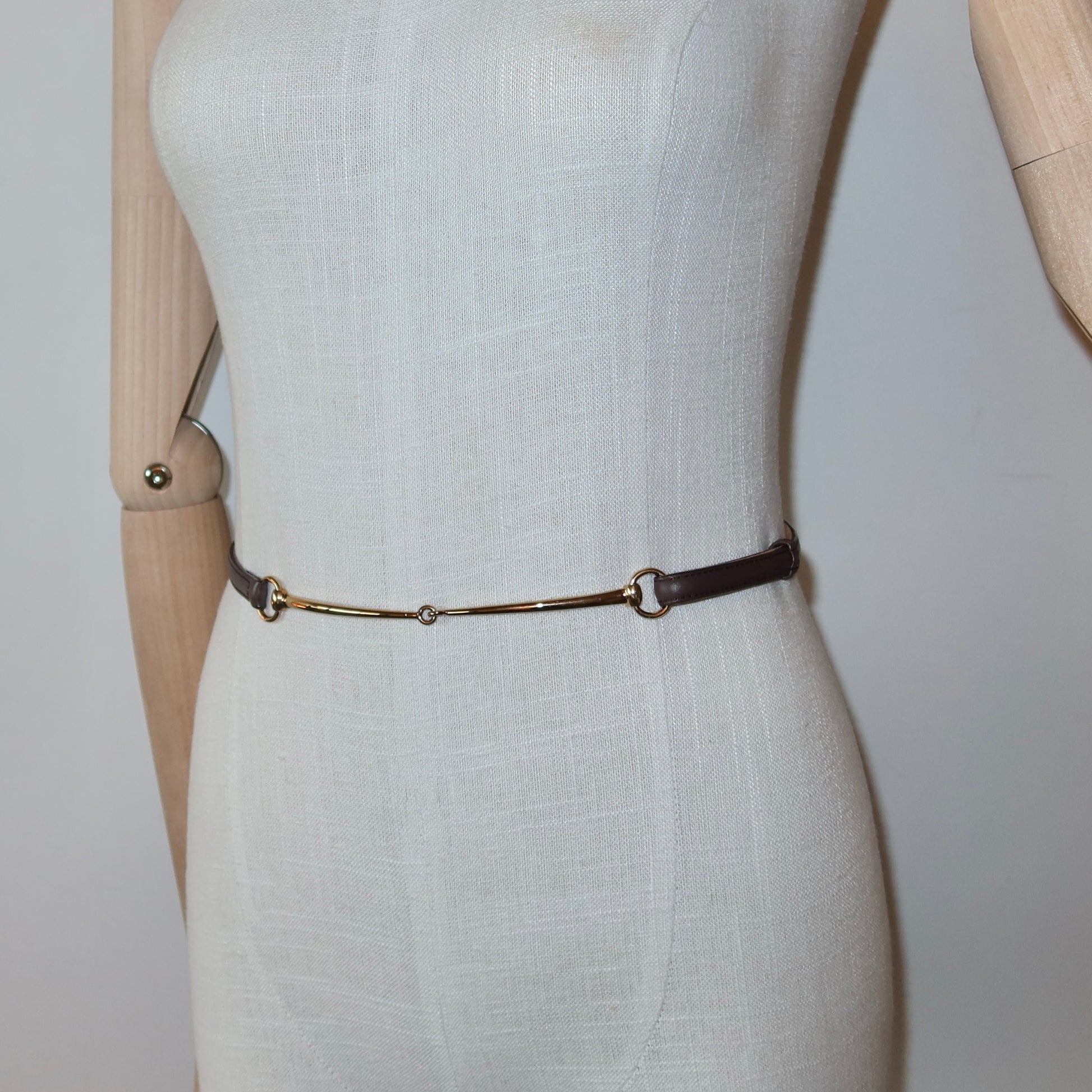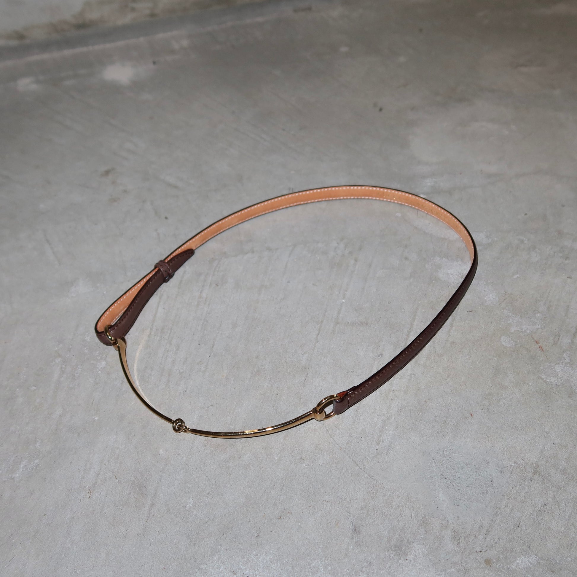Stunning greyish brown leather Gucci skinny horsebit belt with gold hardware. Tom Ford era.