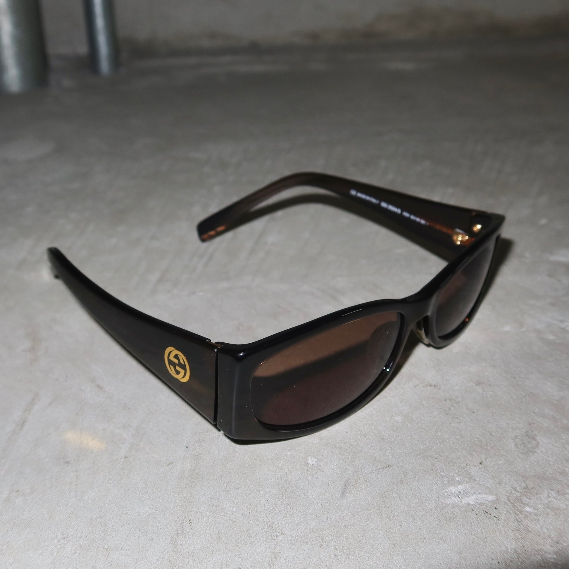 Gorgeous brown Gucci sunglasses with gold interlocking G logo.