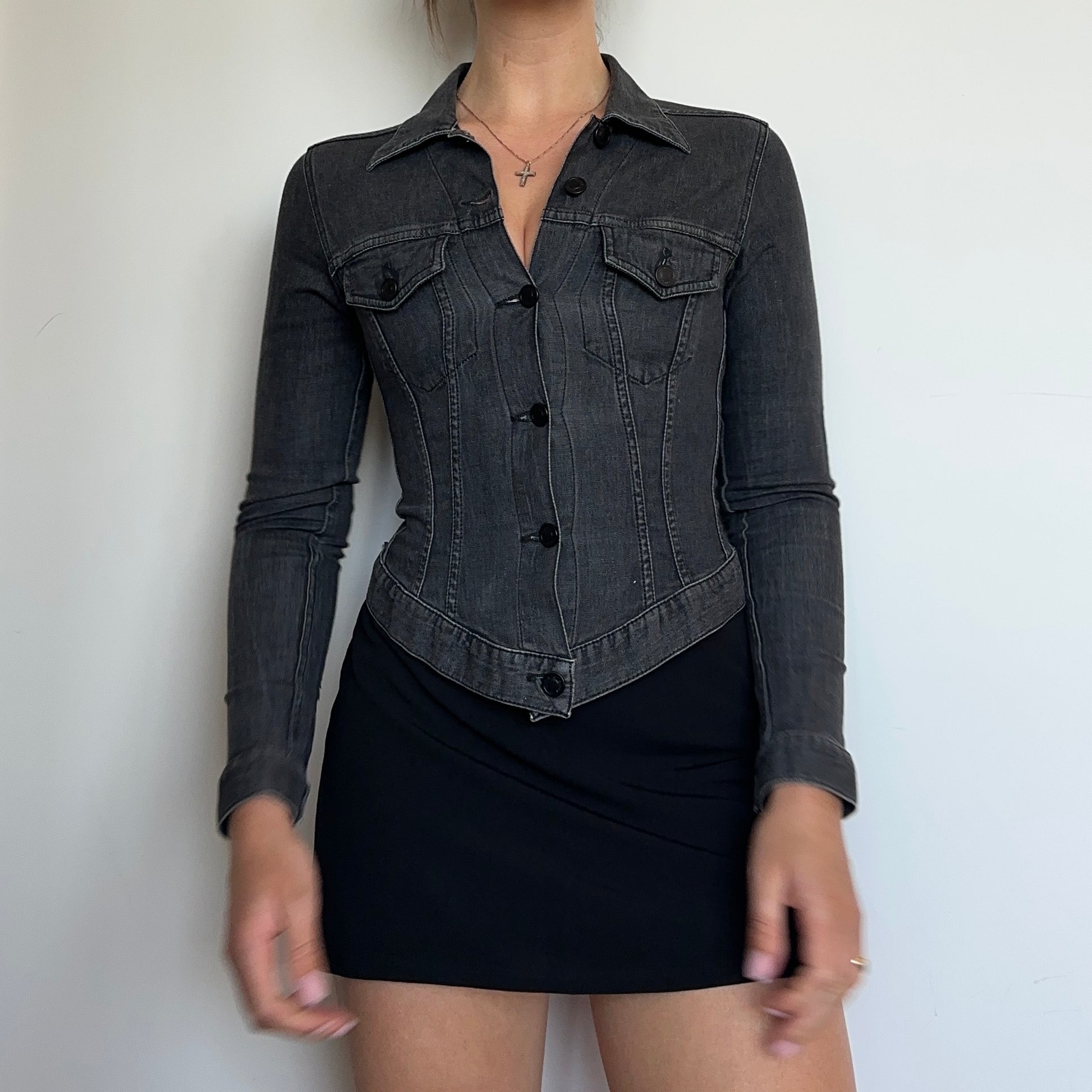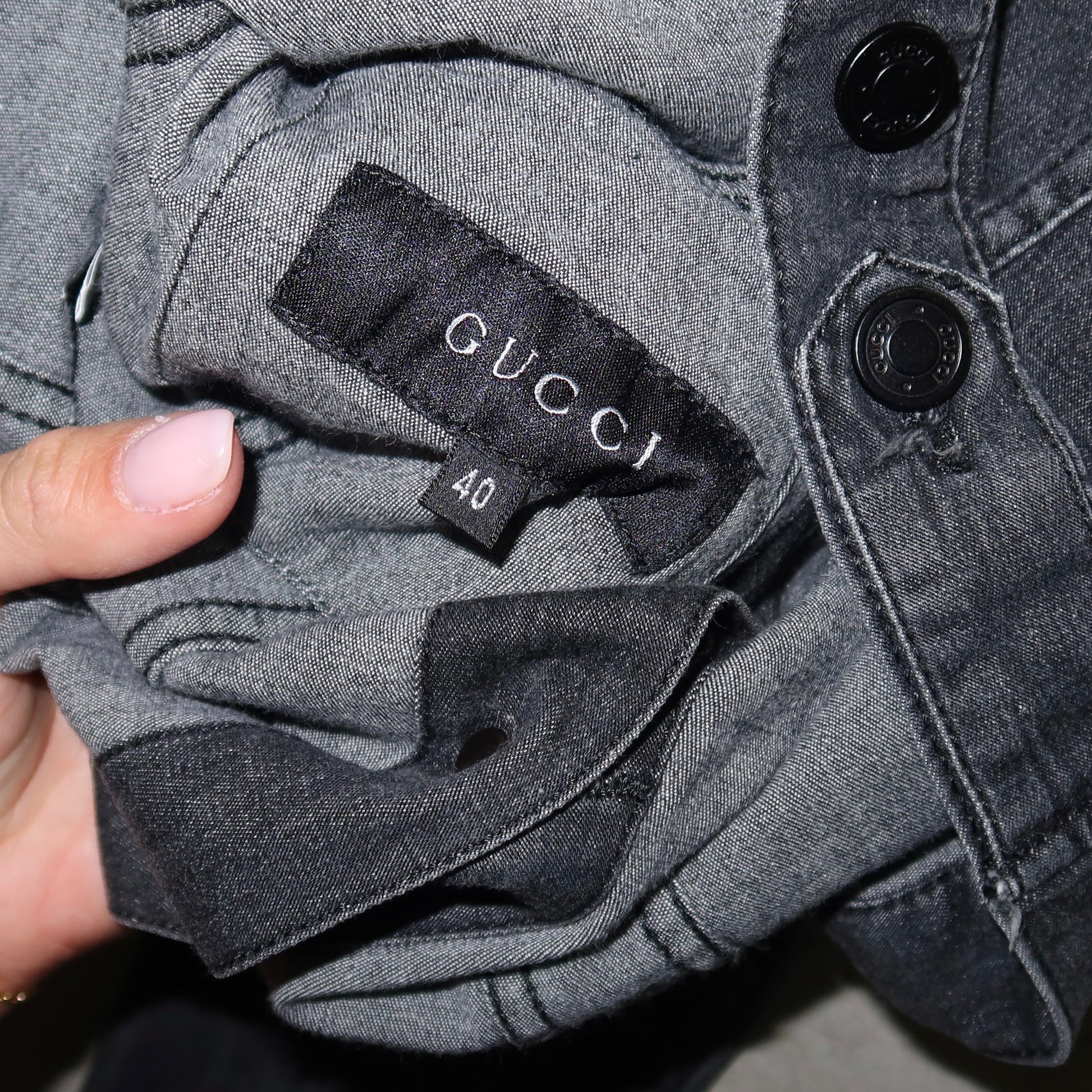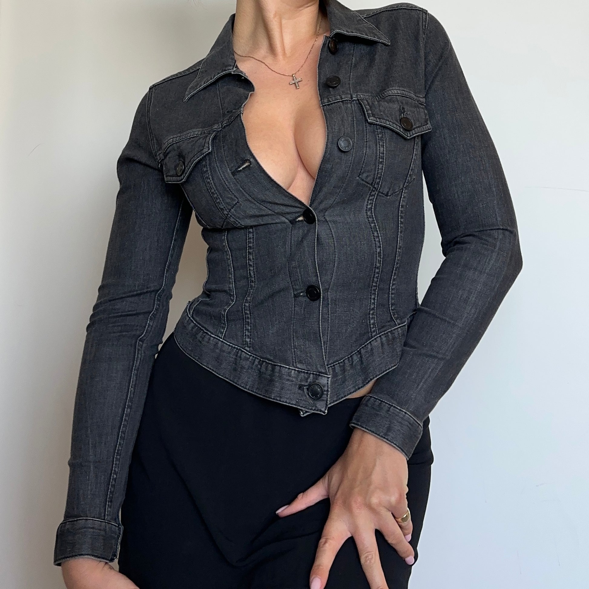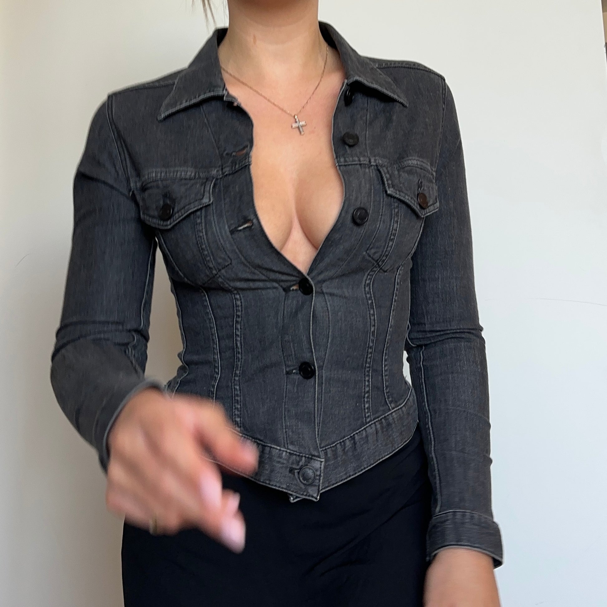 Incredible Tom Ford era Gucci denim shirt/jacket. Super flattering with stretch to hug the body.