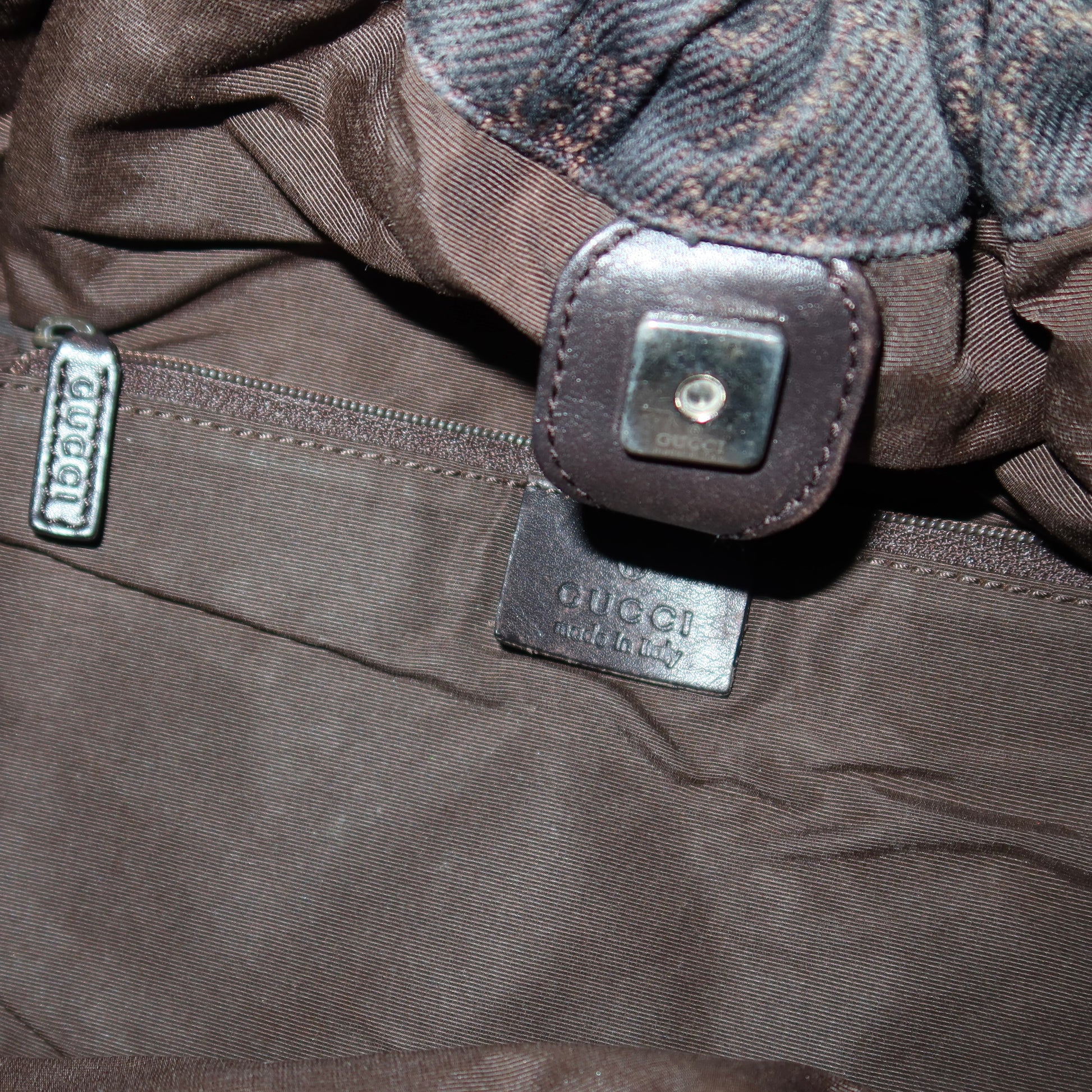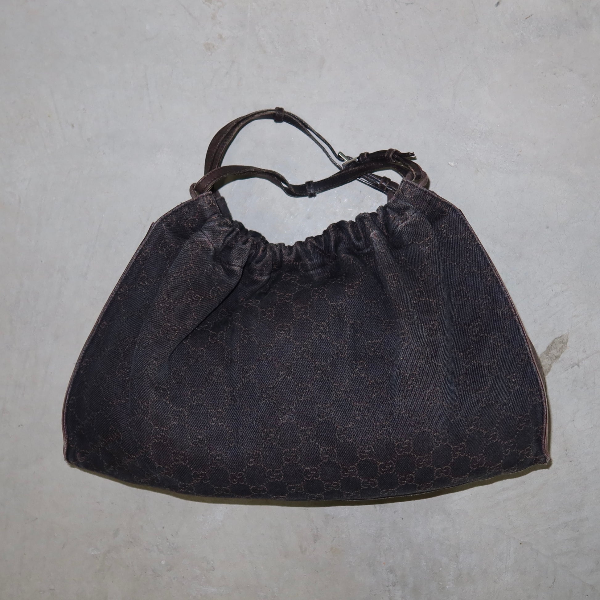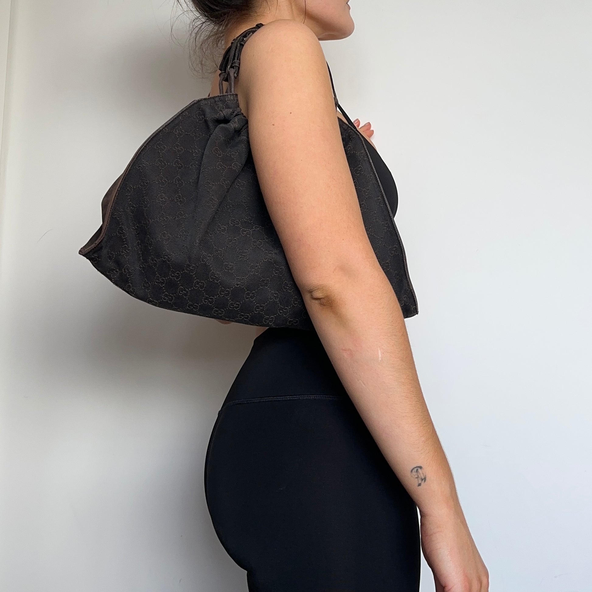 Iconic brown monogram fabric Gucci bag from Tom Ford’s era.