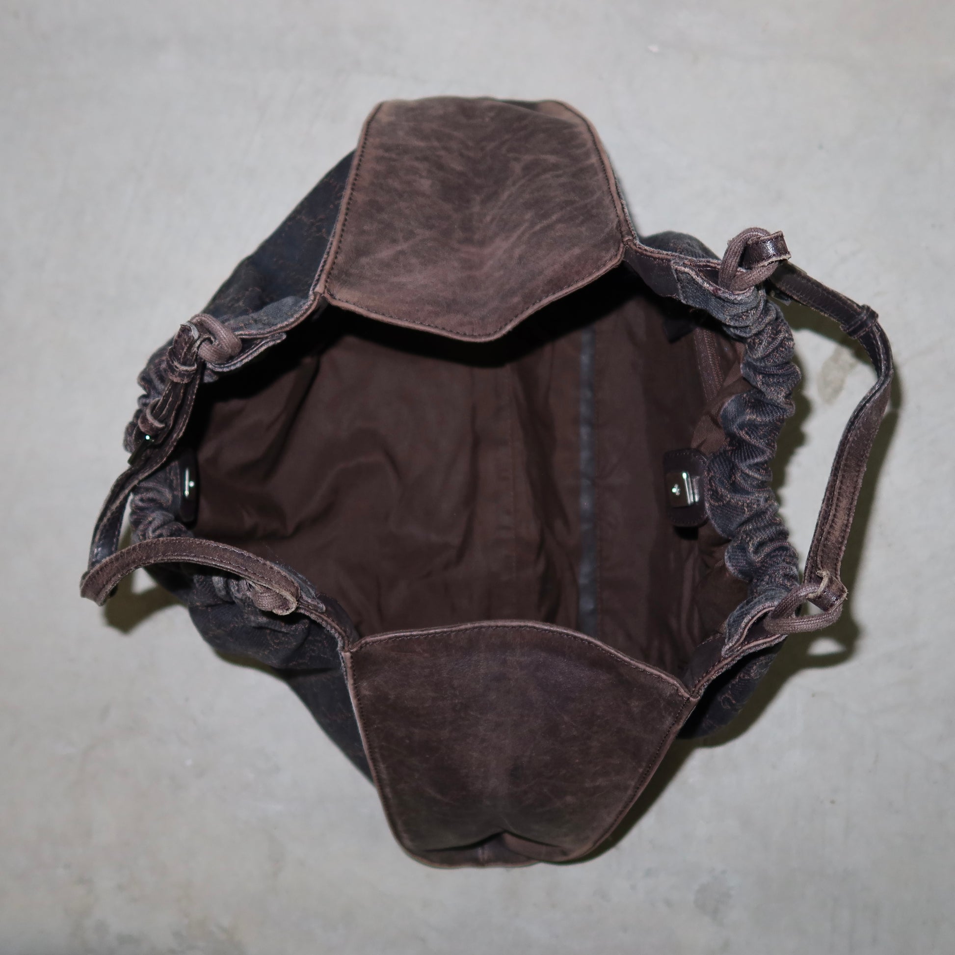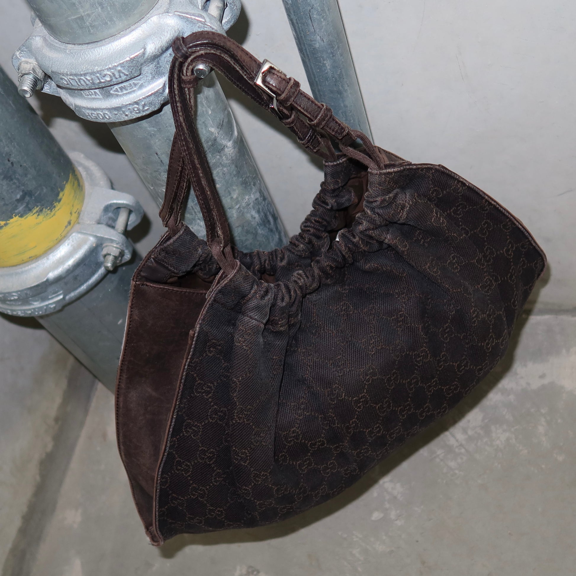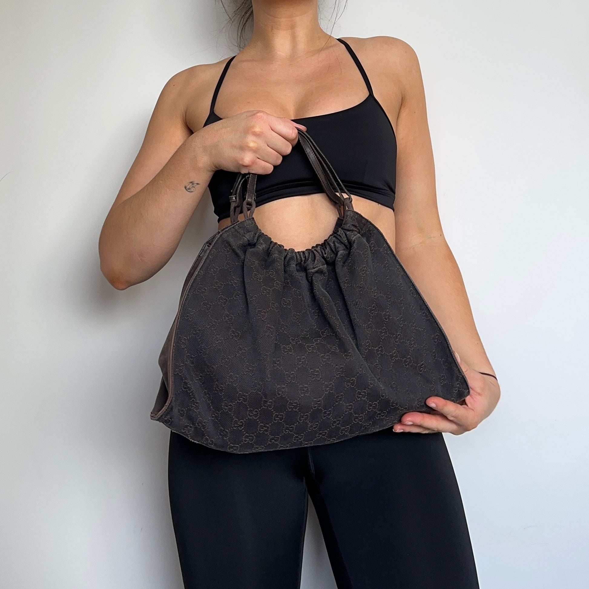 Iconic brown monogram fabric Gucci bag from Tom Ford’s era.