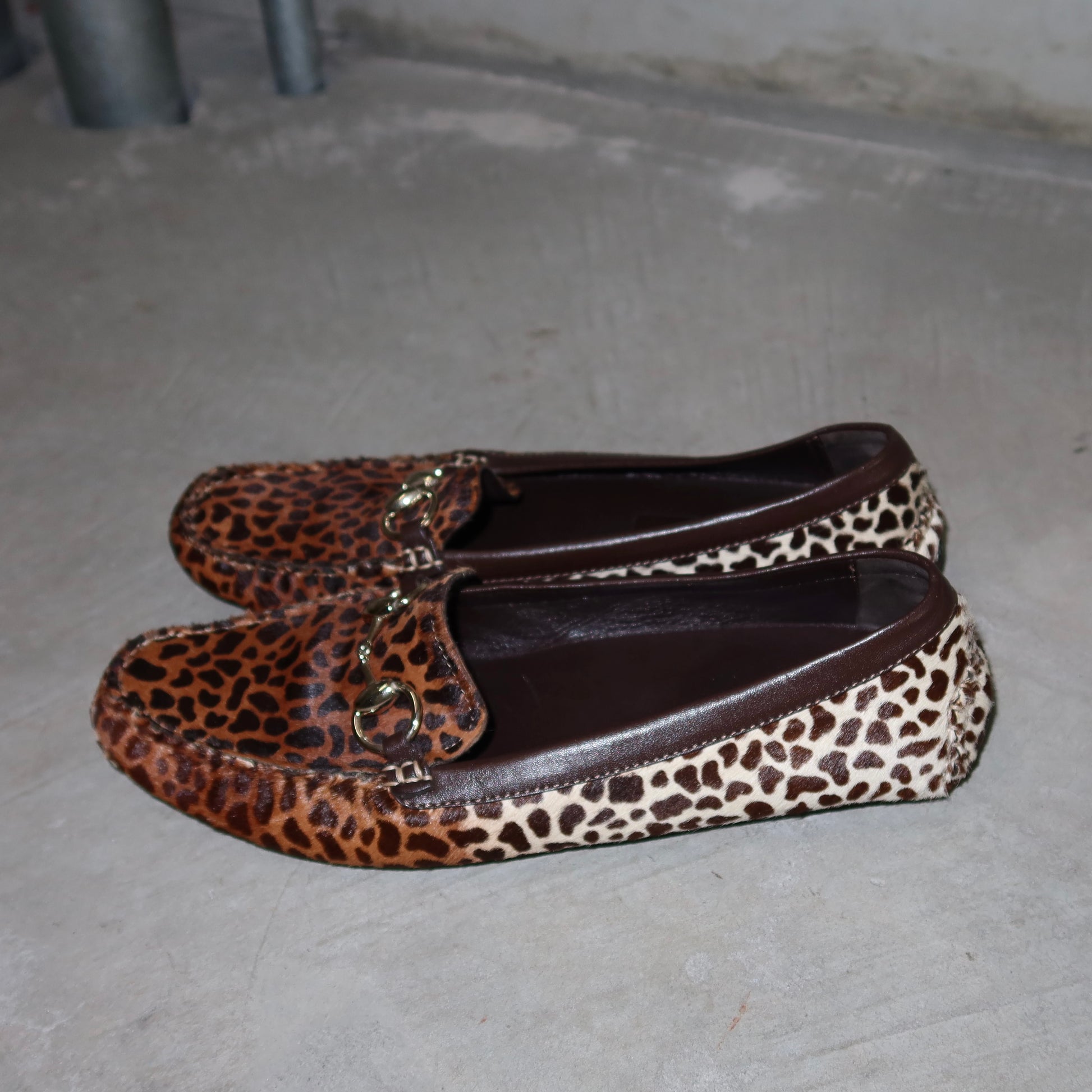 Gucci Leopard Print Cowhide Loafers (38-39)