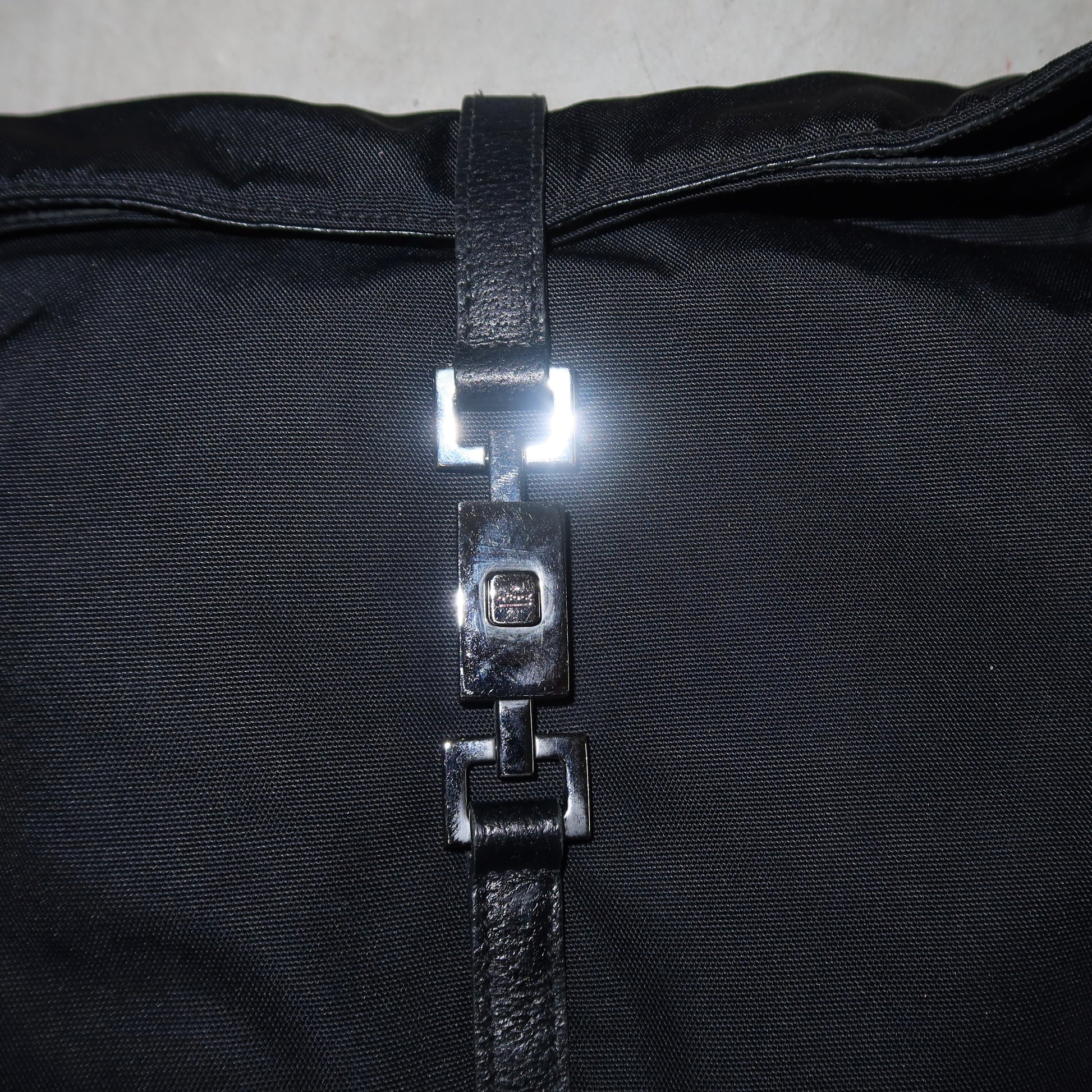 Iconic Gucci Jackie bag in a black nylon square variation.