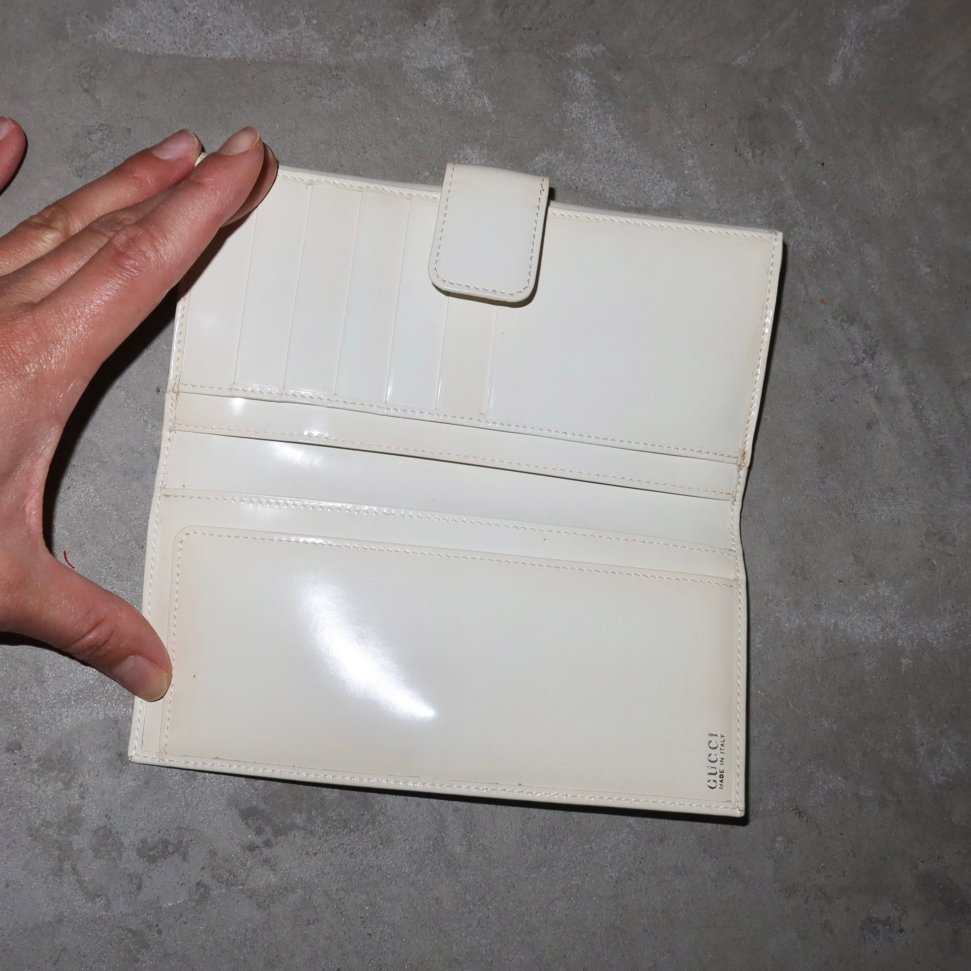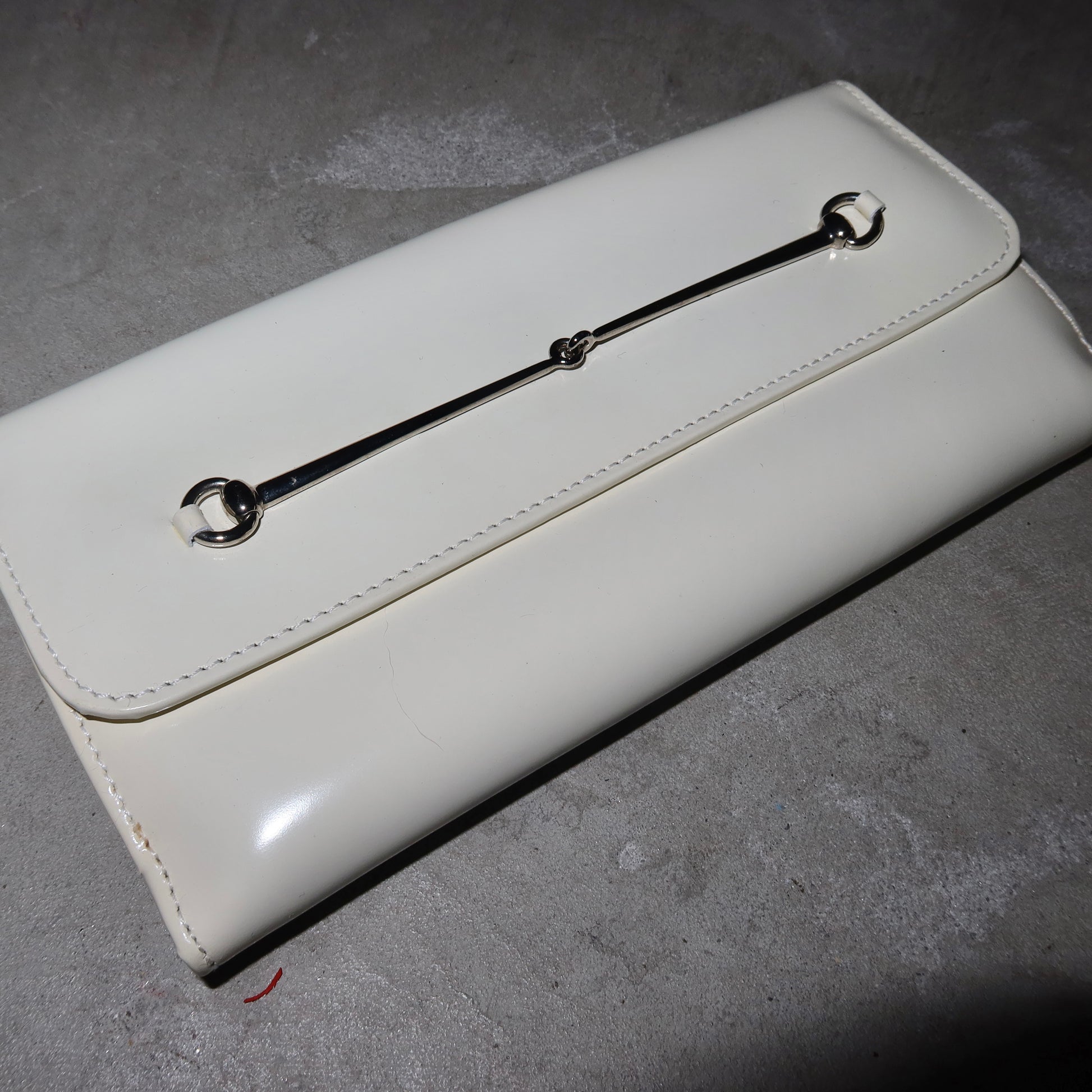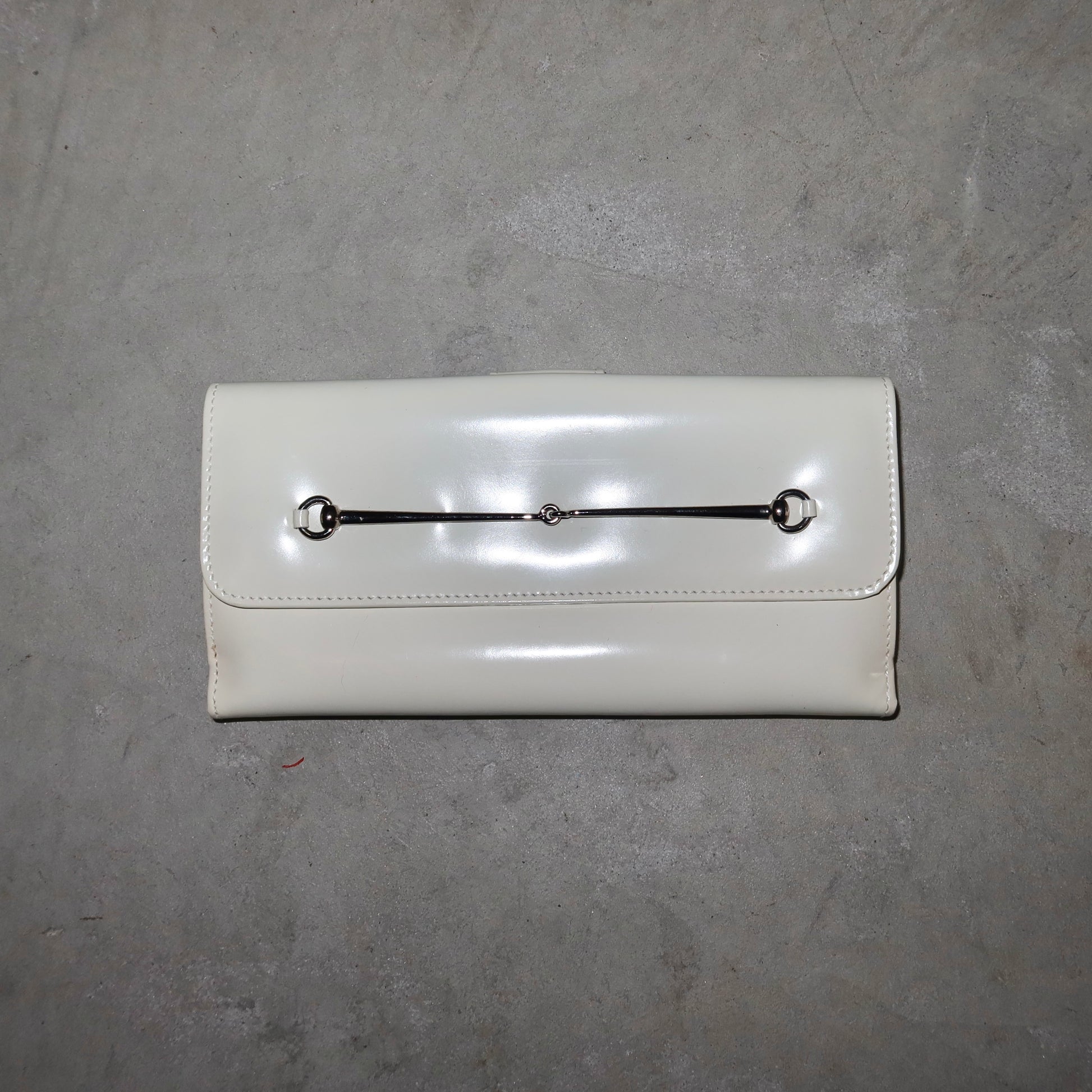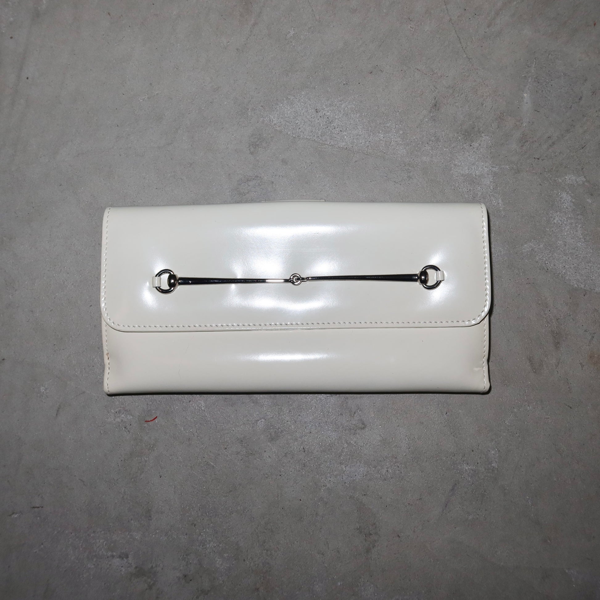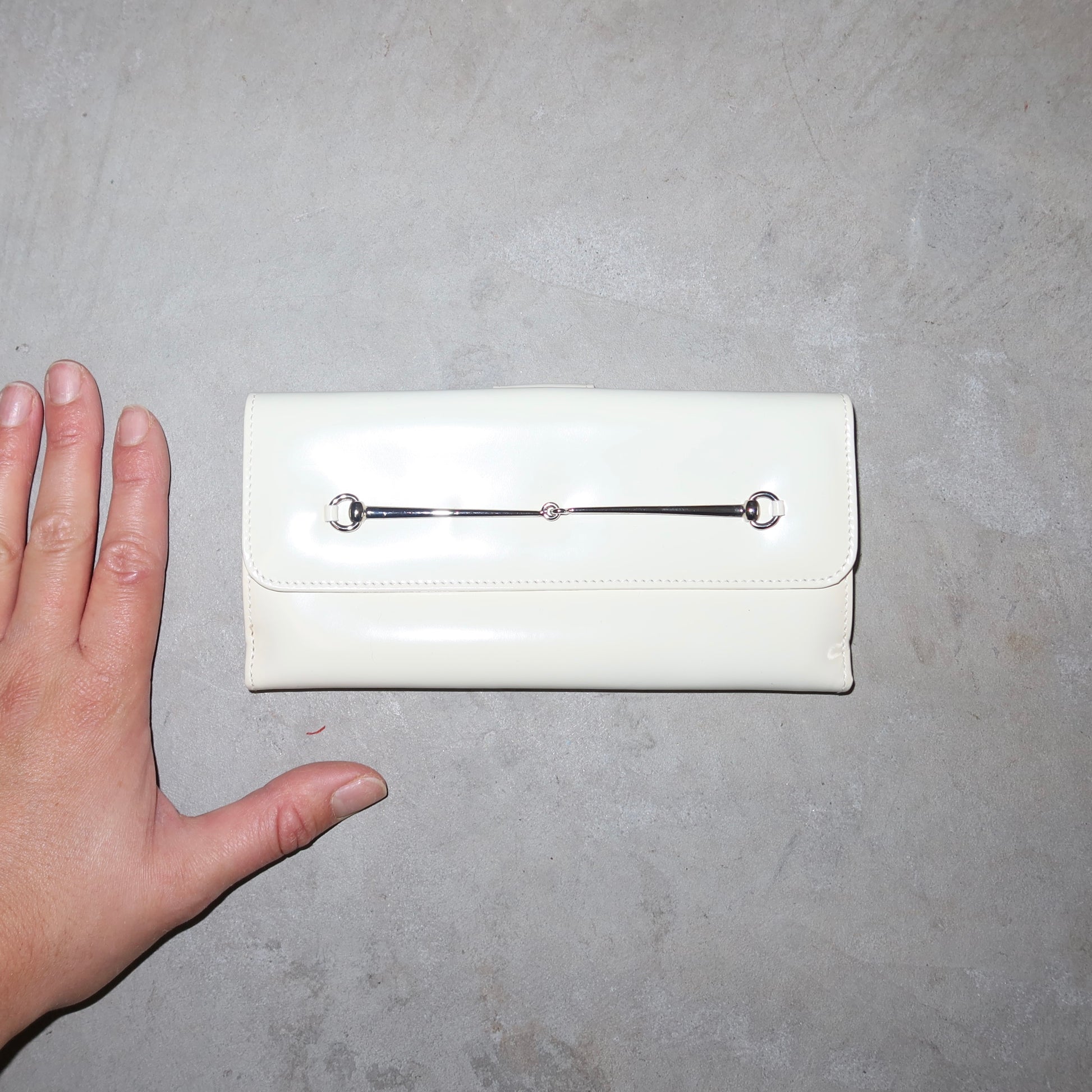 Beautiful patent white Tom Ford era Gucci wallet with his iconic skinny horse-bit detail. This is not a clutch!