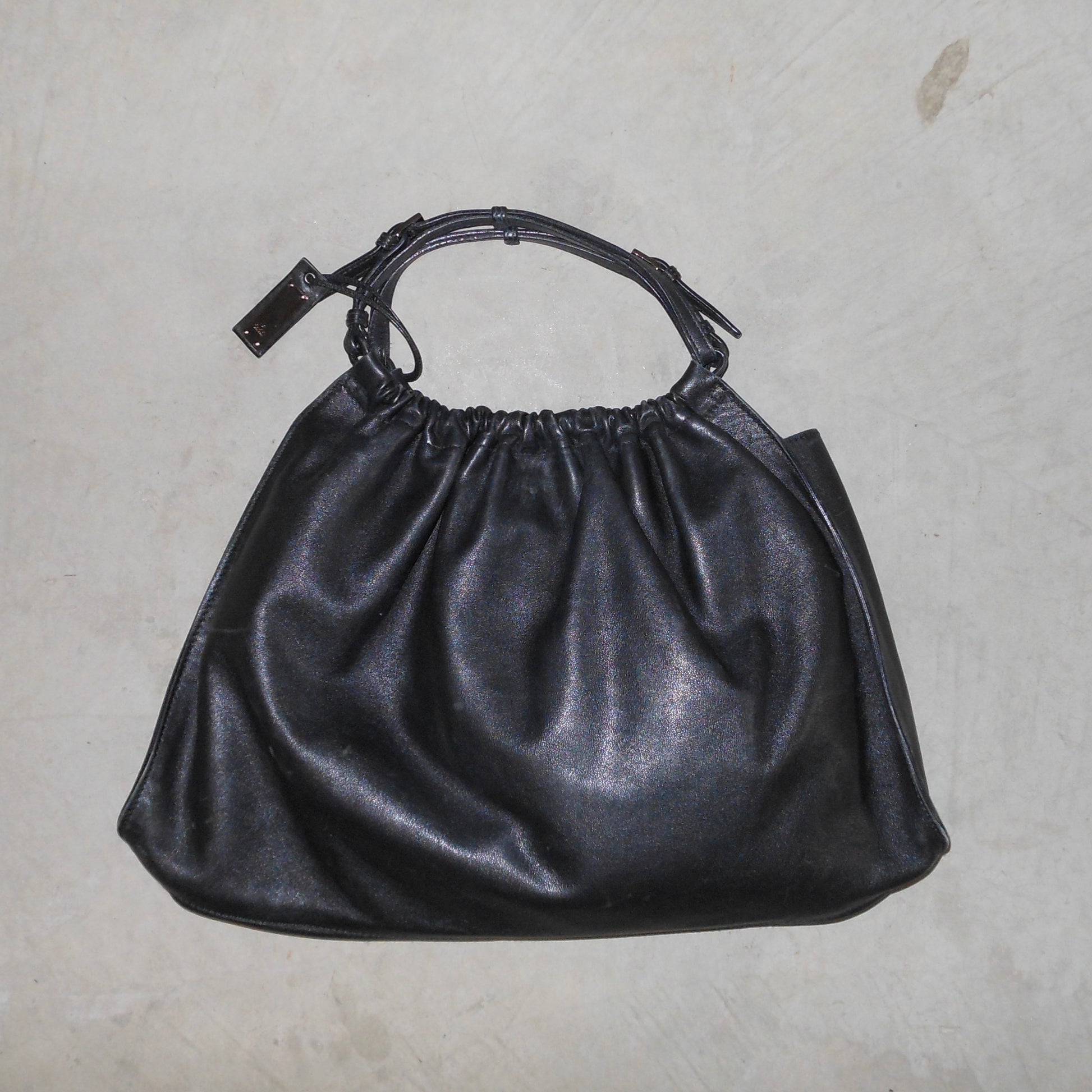 Gorgeous black leather tote by Gucci, from Tom Ford's era. Tiny little square buckles handles.