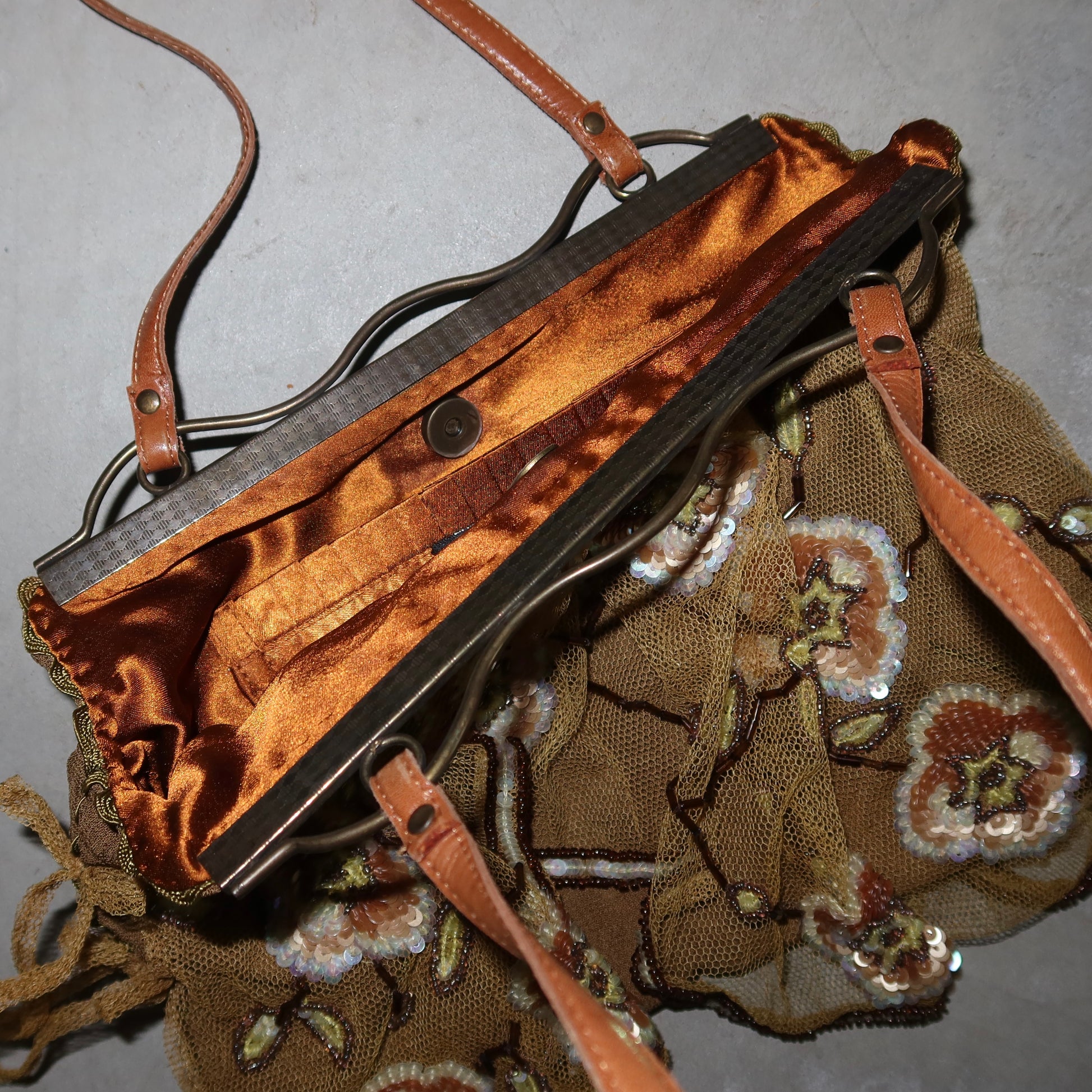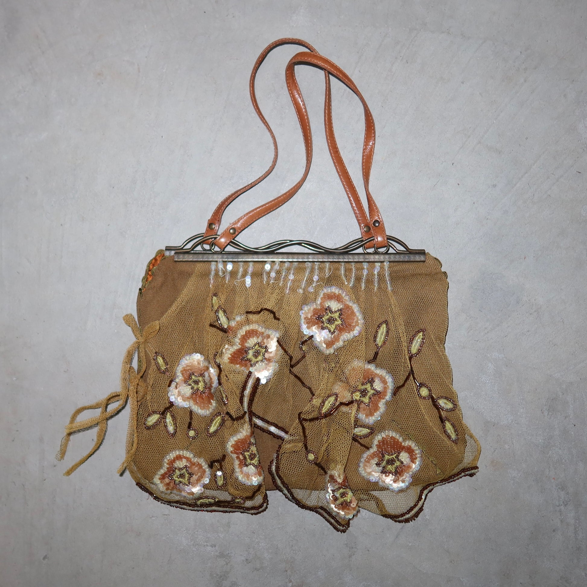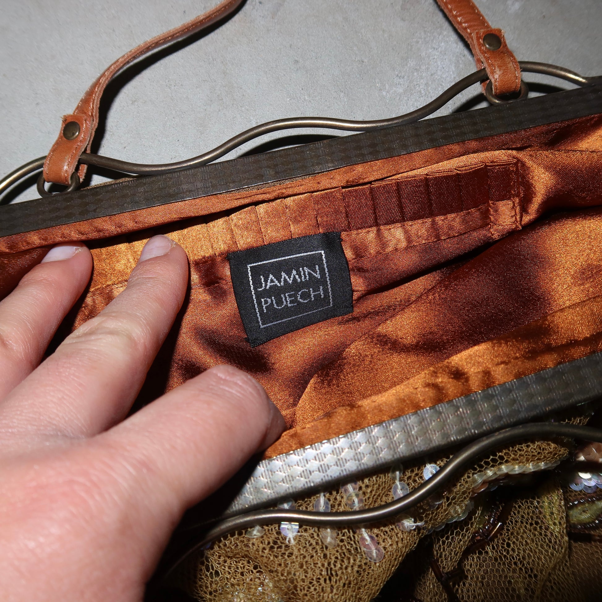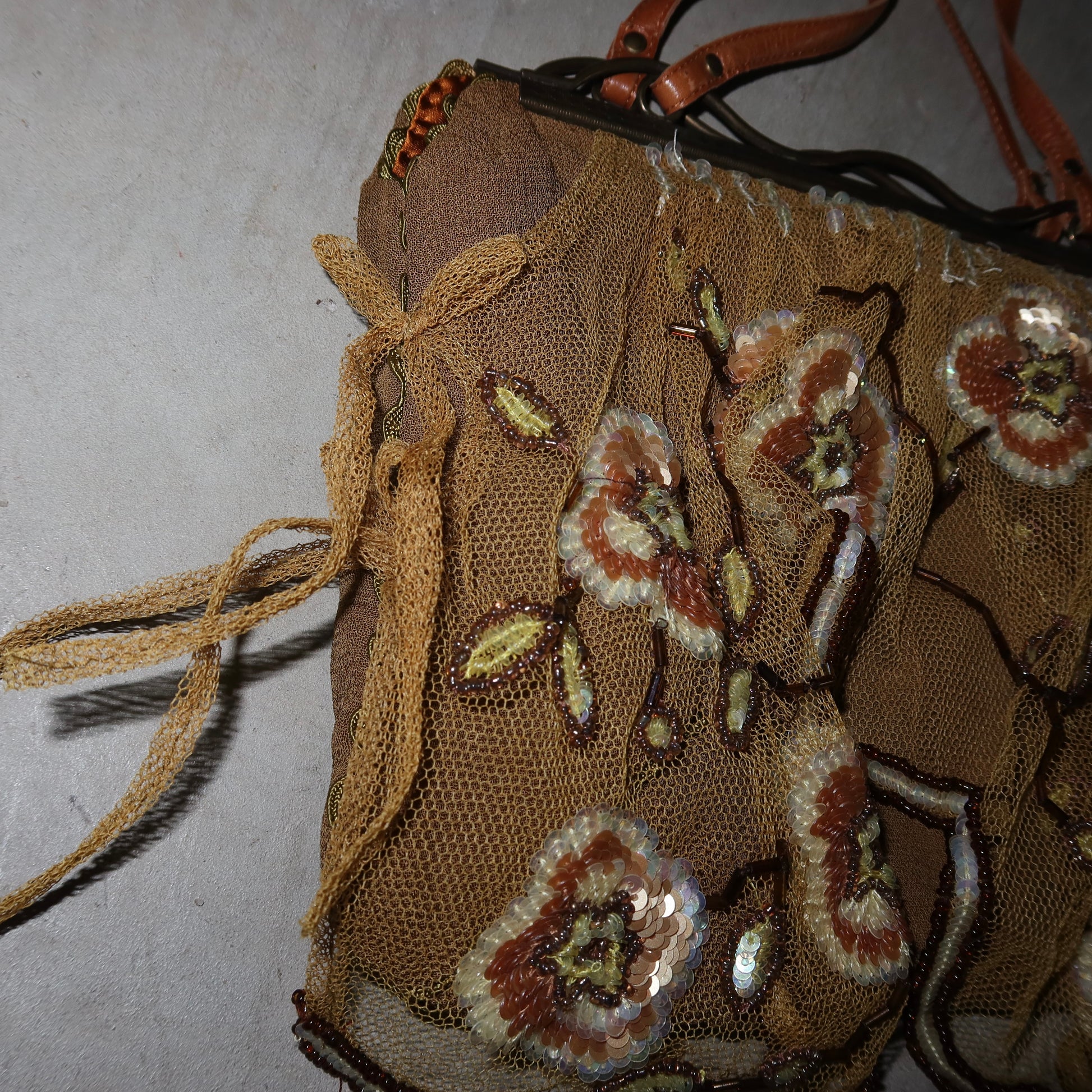 Beautiful little Jamin Puech mesh curtain bag with sequin floral embroidery. Cute little bow tie on the side and a gorgeous silky lining.