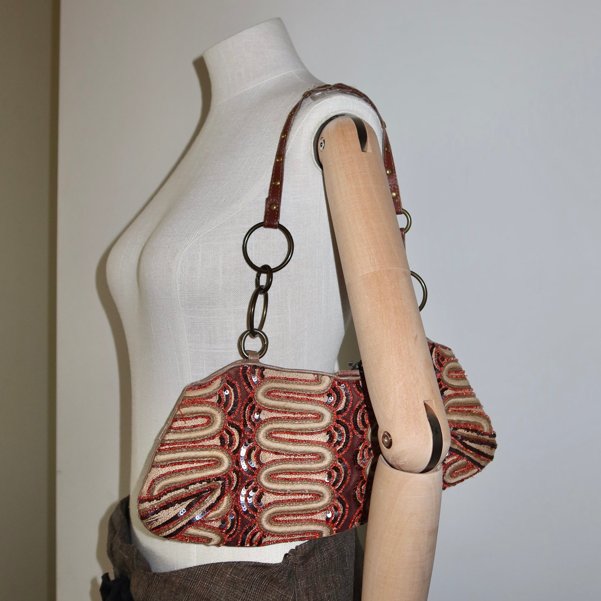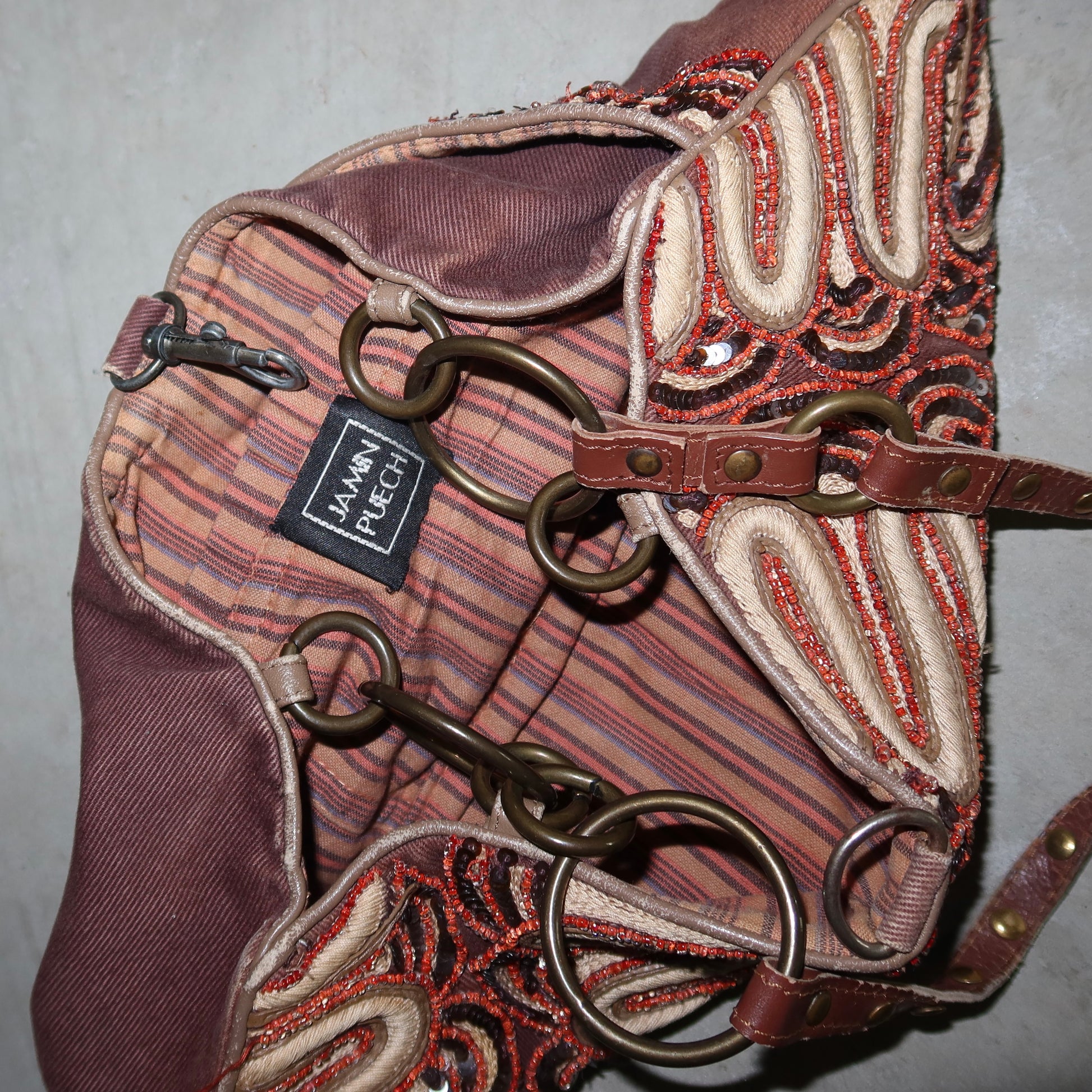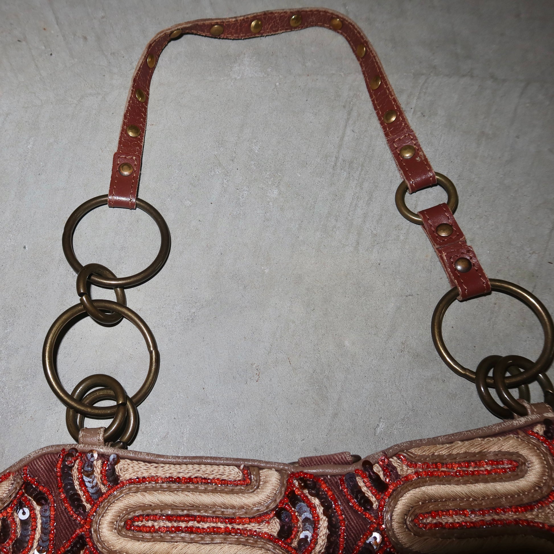 Beautiful Jamin Puech sequin embellished bag with incredible ring hardware details on the strap. Jamin Puech is an iconic French handbag designer who no longer is in production. Pieces were made in France with incredible craft and skill and retailed for hundreds of euros.