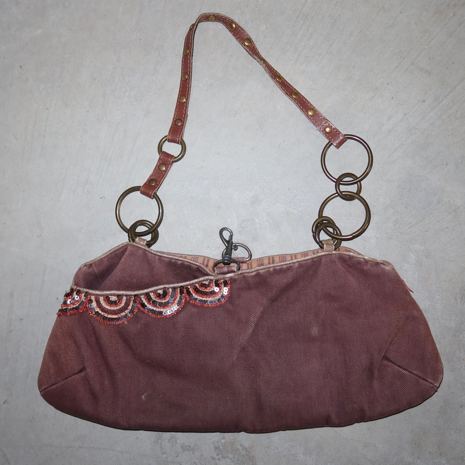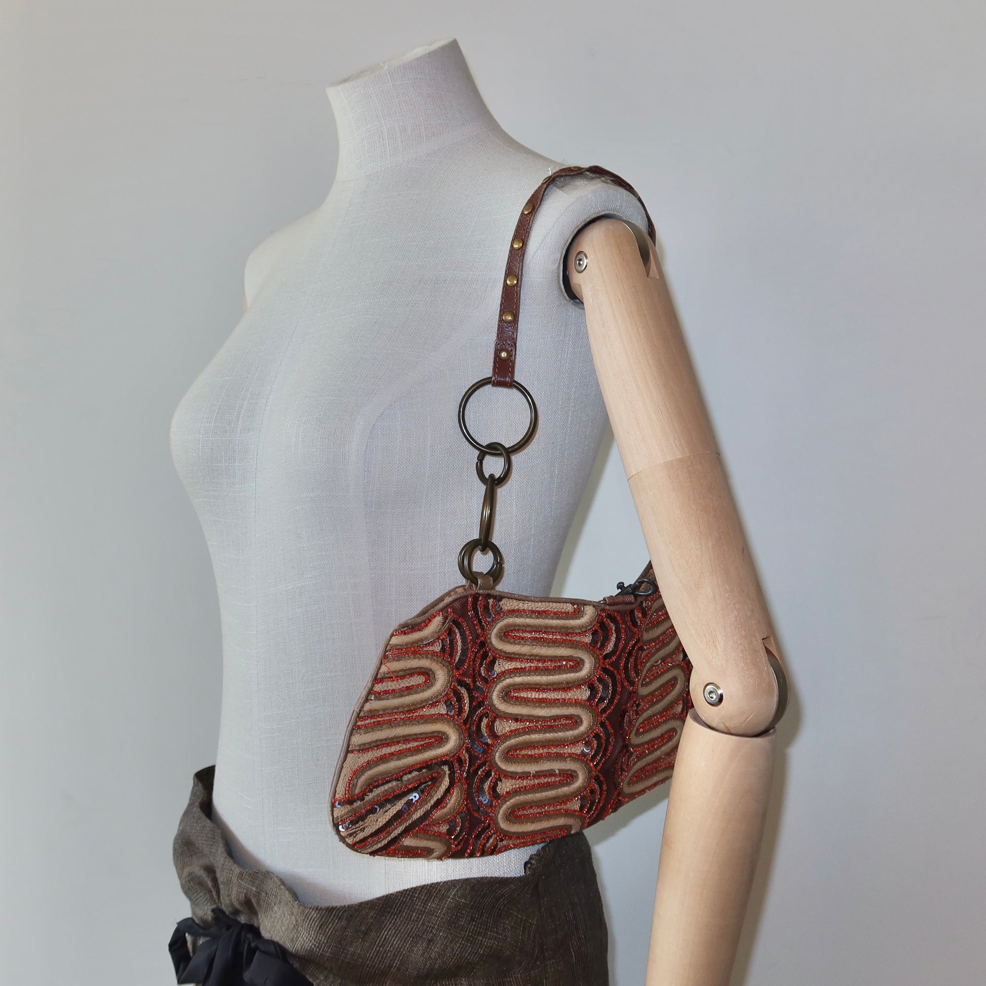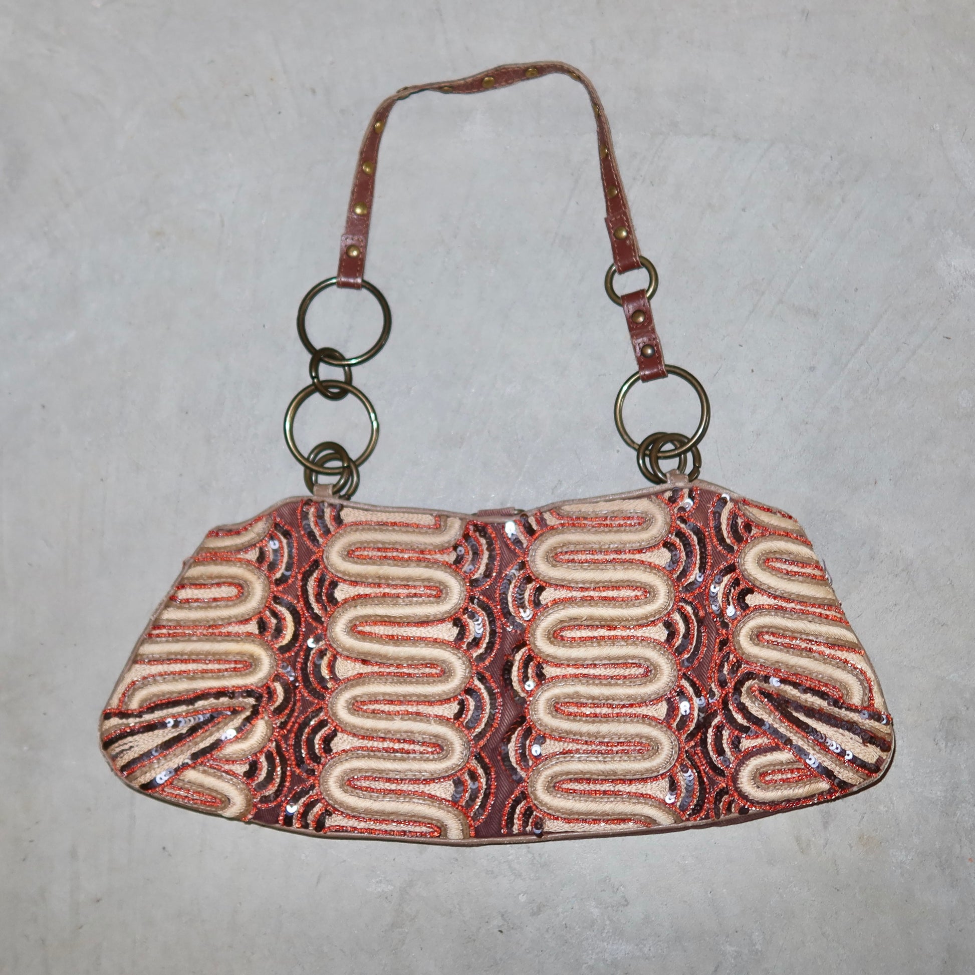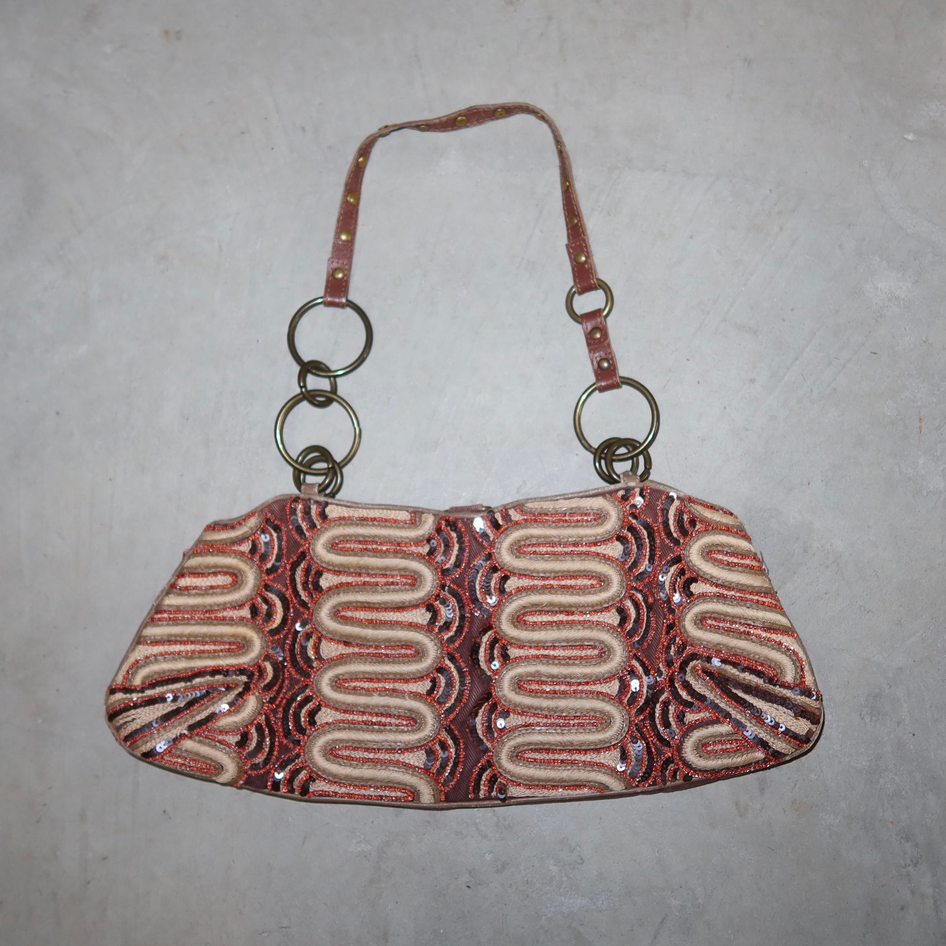 Beautiful Jamin Puech sequin embellished bag with incredible ring hardware details on the strap. Jamin Puech is an iconic French handbag designer who no longer is in production. Pieces were made in France with incredible craft and skill and retailed for hundreds of euros.