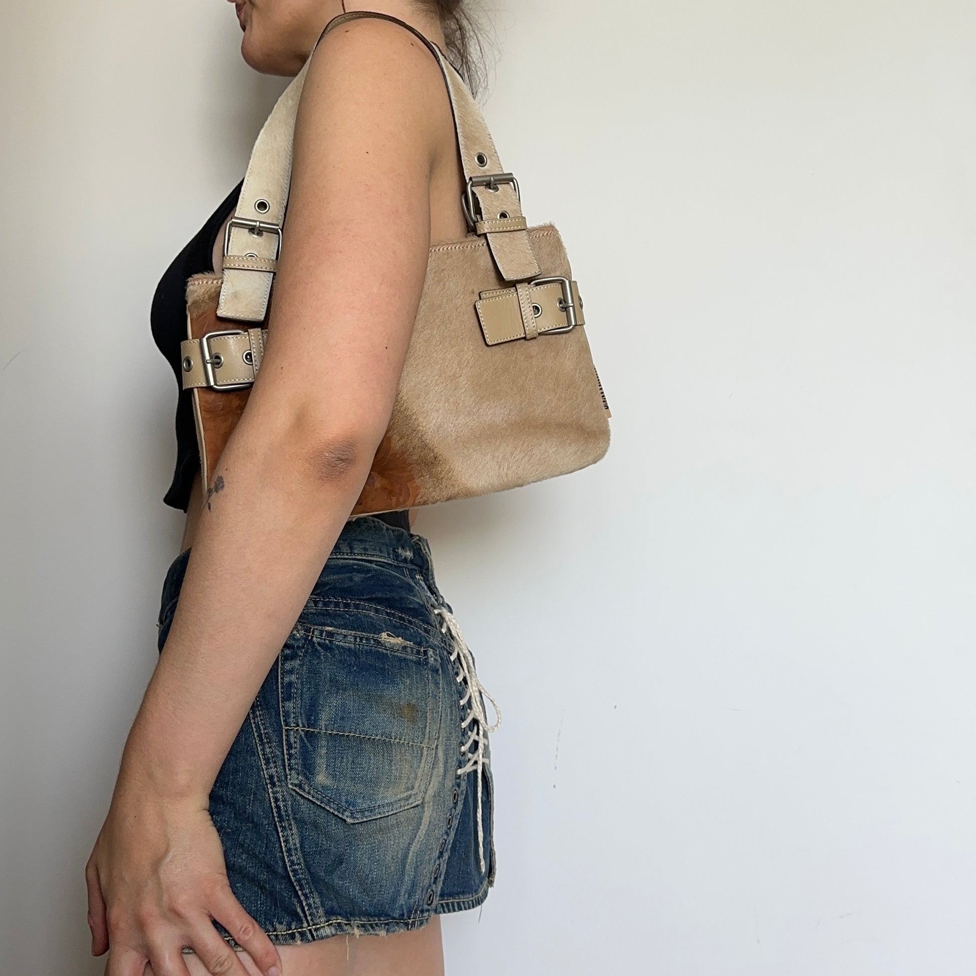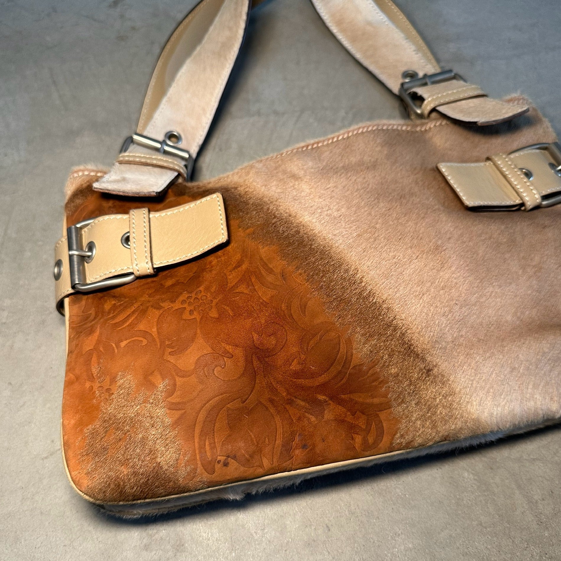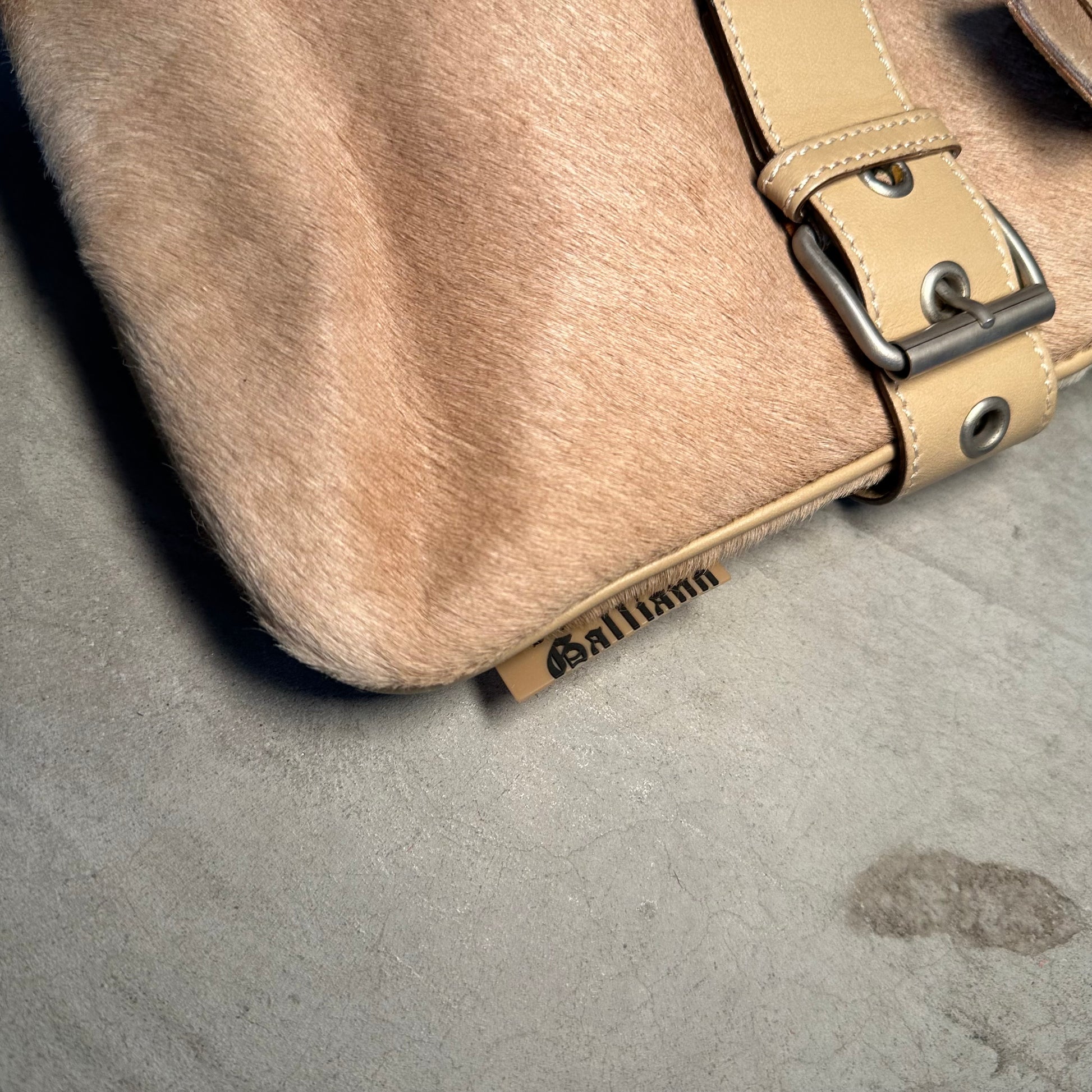 Gorgeous cowhide John Galliano bag with cute buckle detailing.