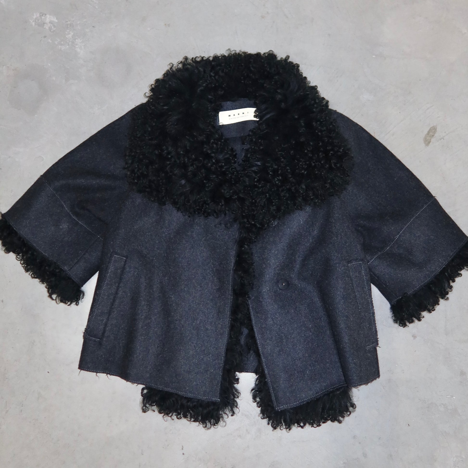 Gorgeous Marni wool coat with shearling collar. Half sleeves.