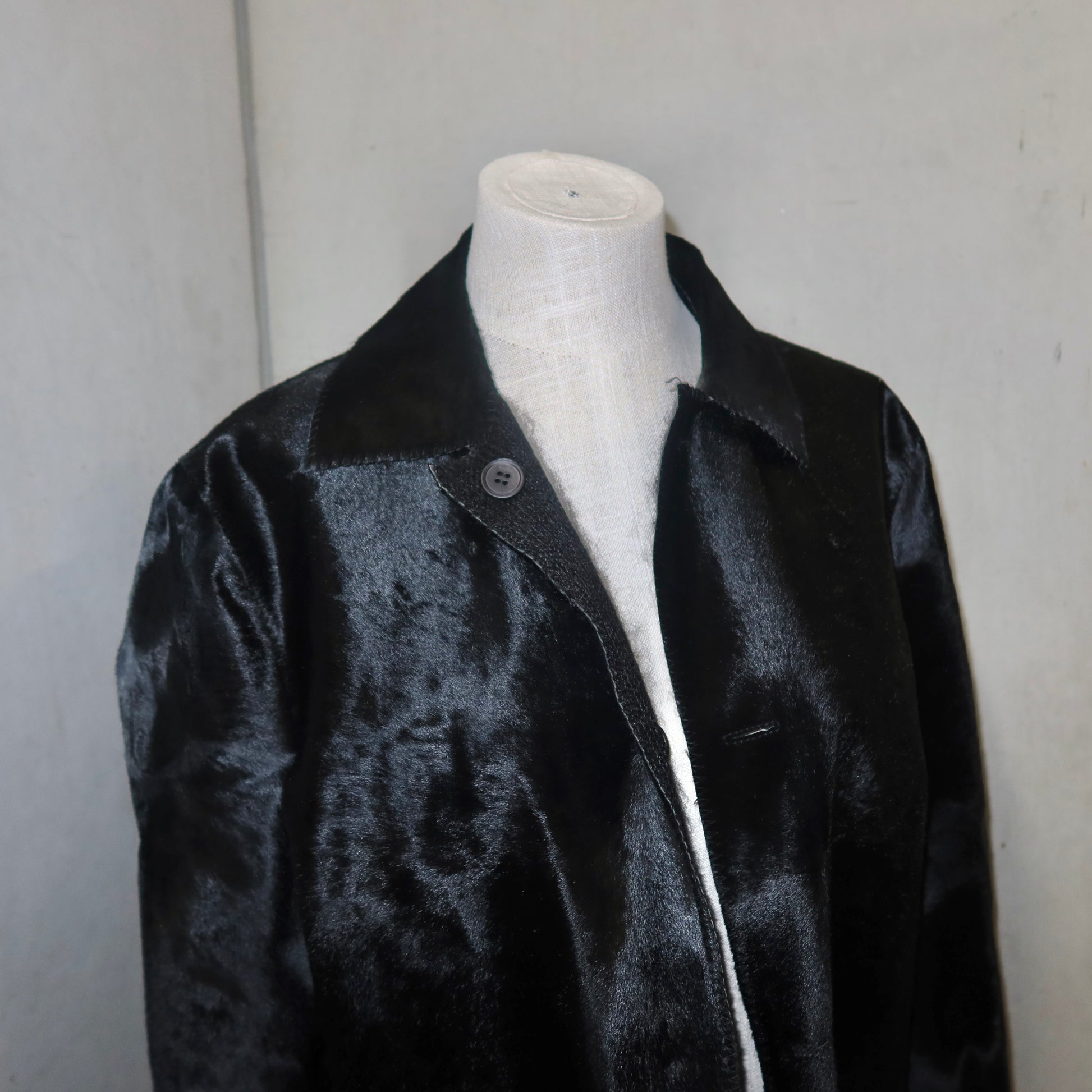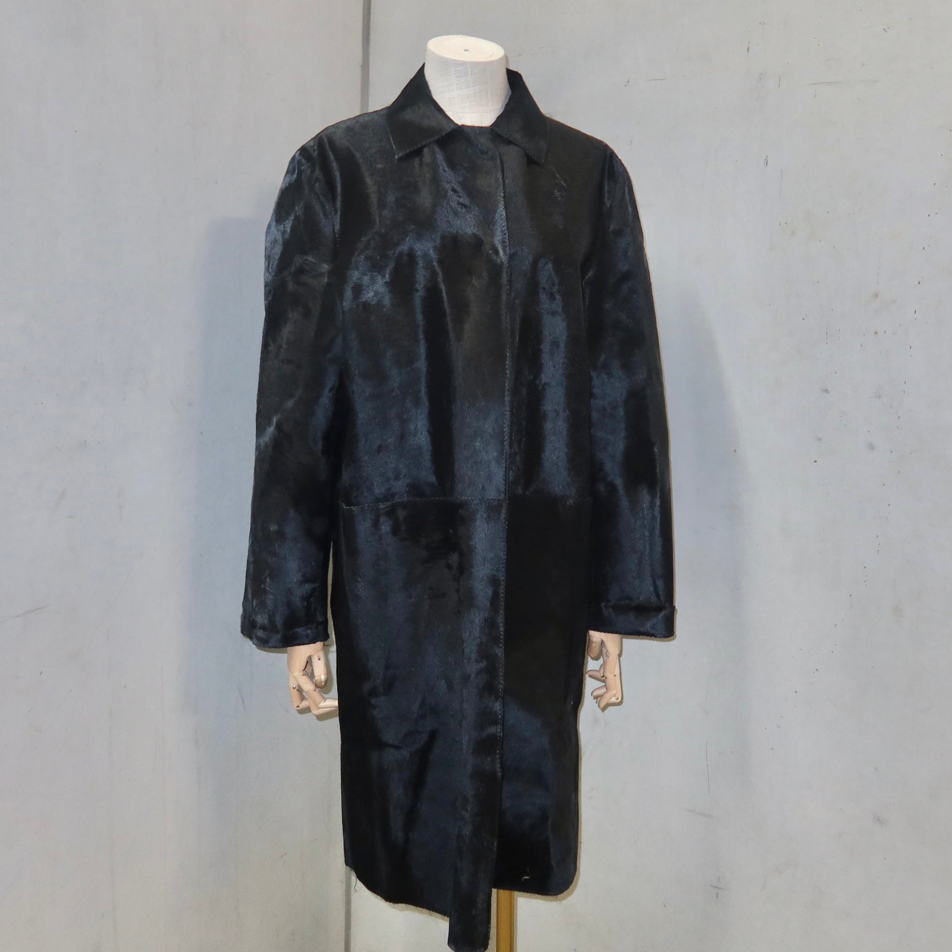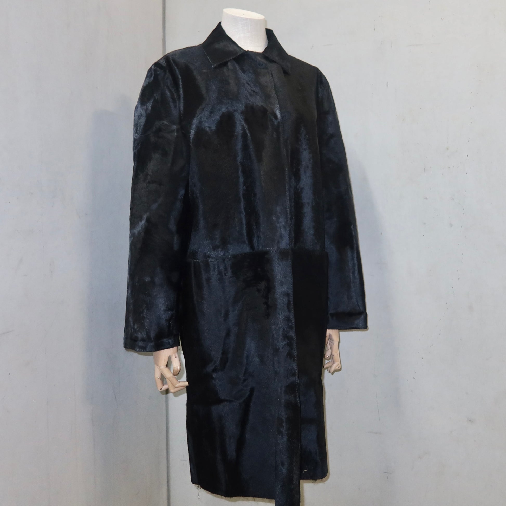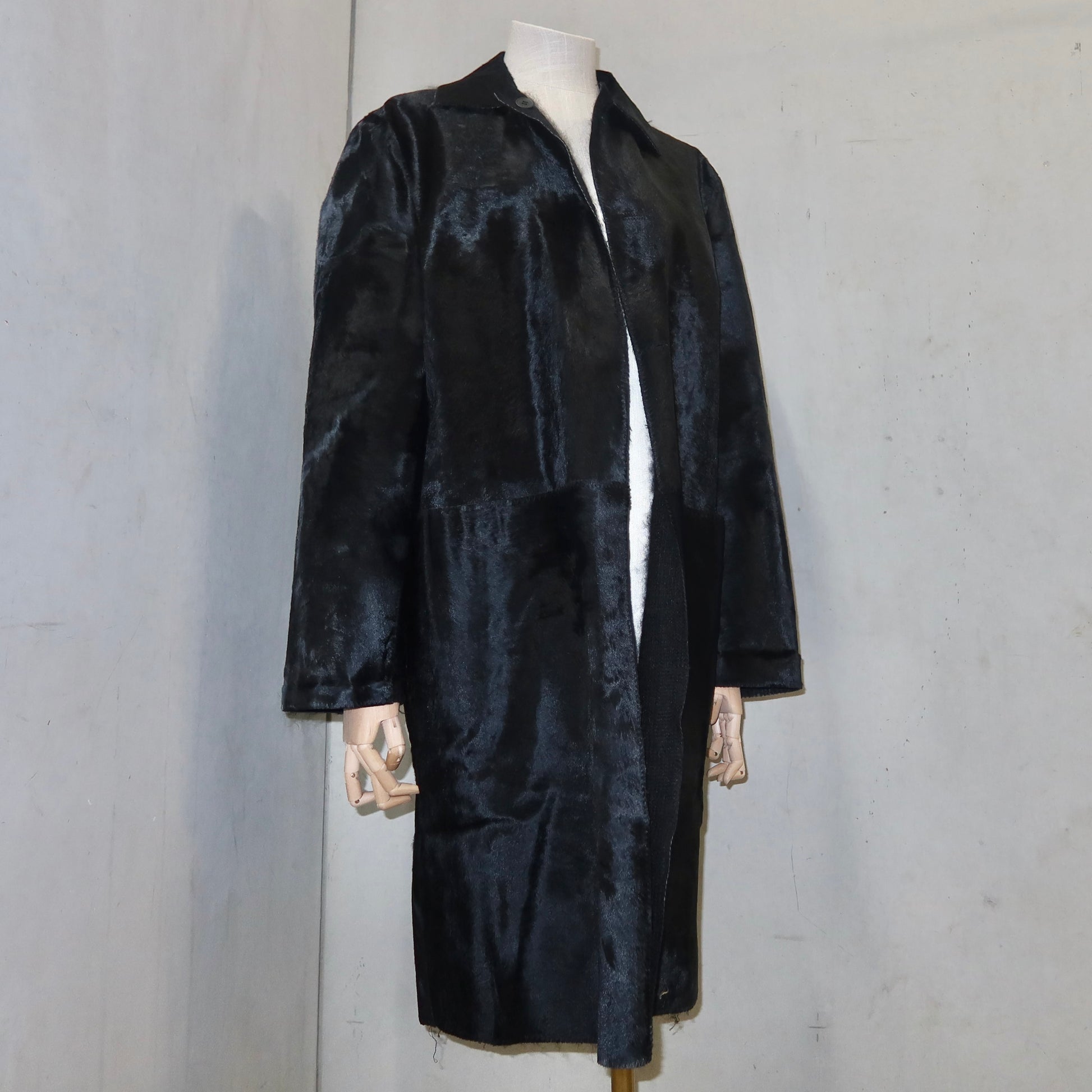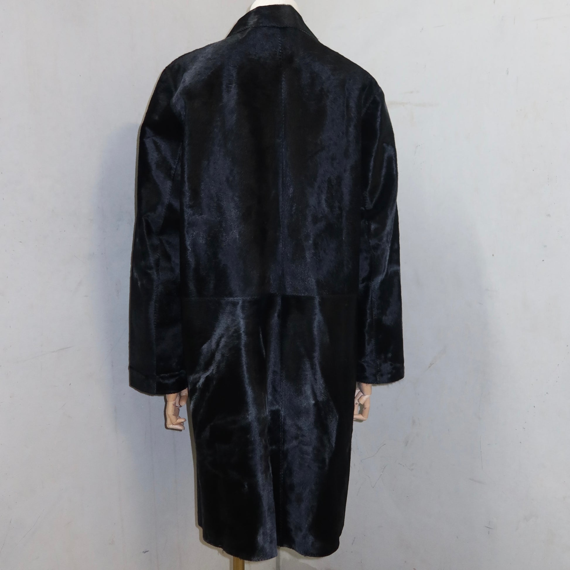 Gorgeous Marni longline overcoat in black cowhide with a ribbed merino wool lining.
