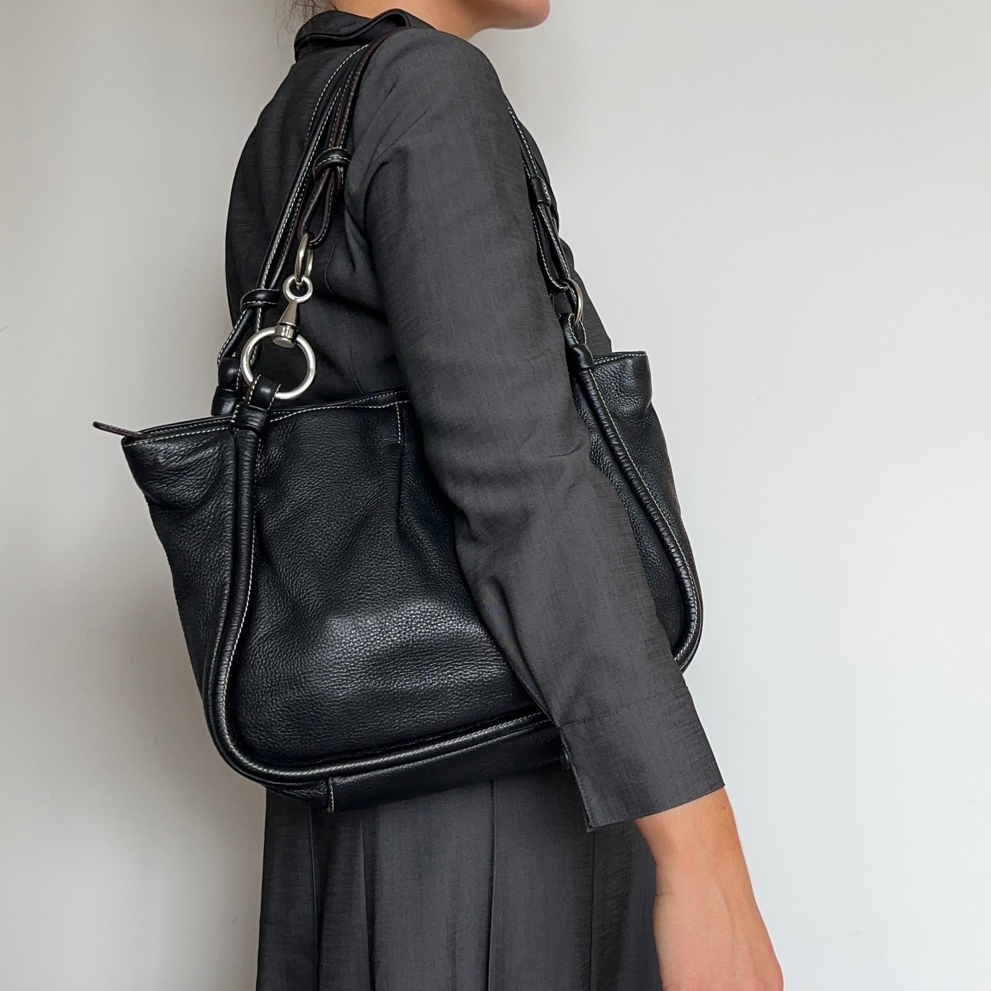 Gorgeous black leather tote bag by marni with silver hardware and clasp hook detail. Zip closure. Comes with original dust bag.